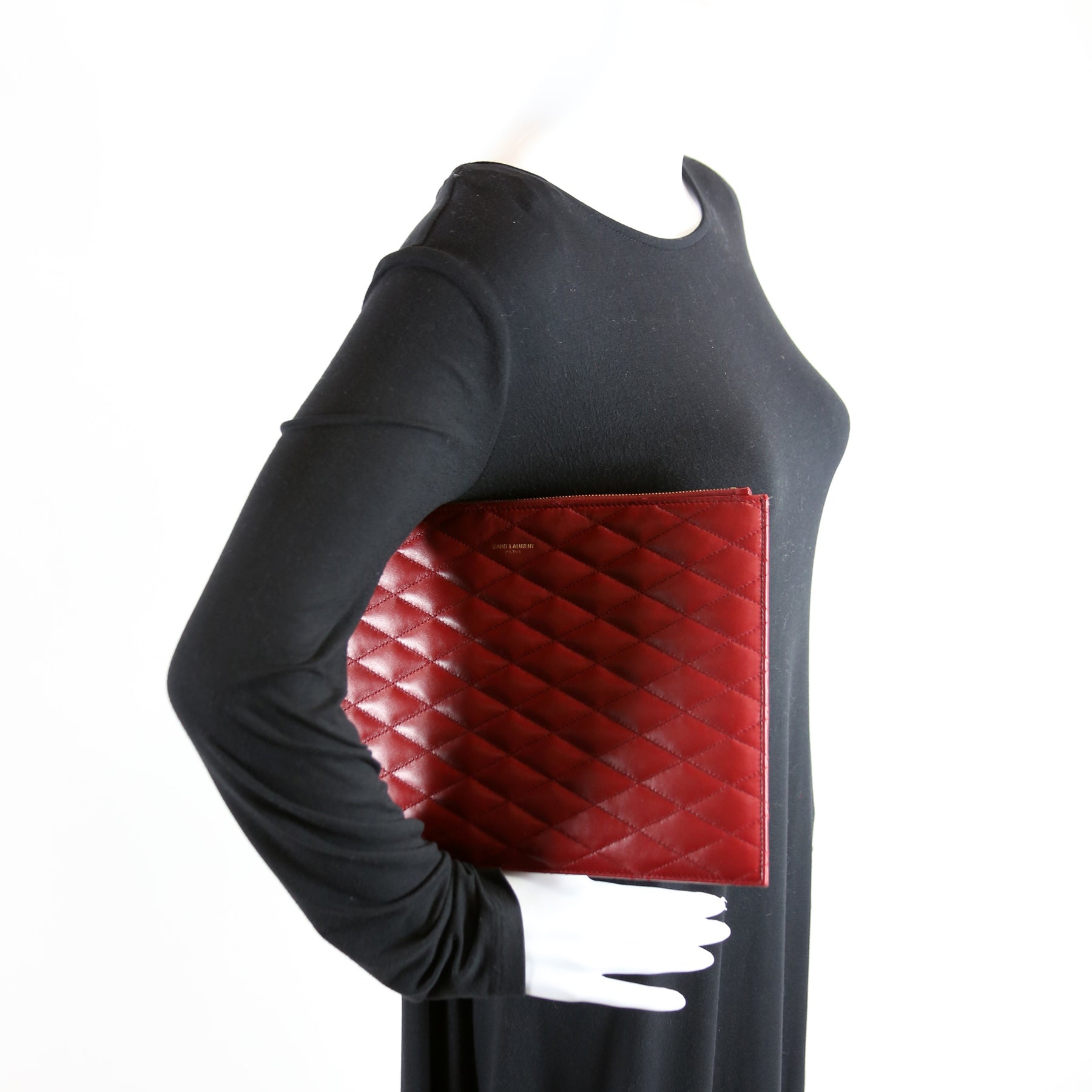 This pre-owned Saint Laurent Sade Zip Pouch is guaranteed 100% authentic. The exterior is in the classic Saint Laurent Lambskin leather.