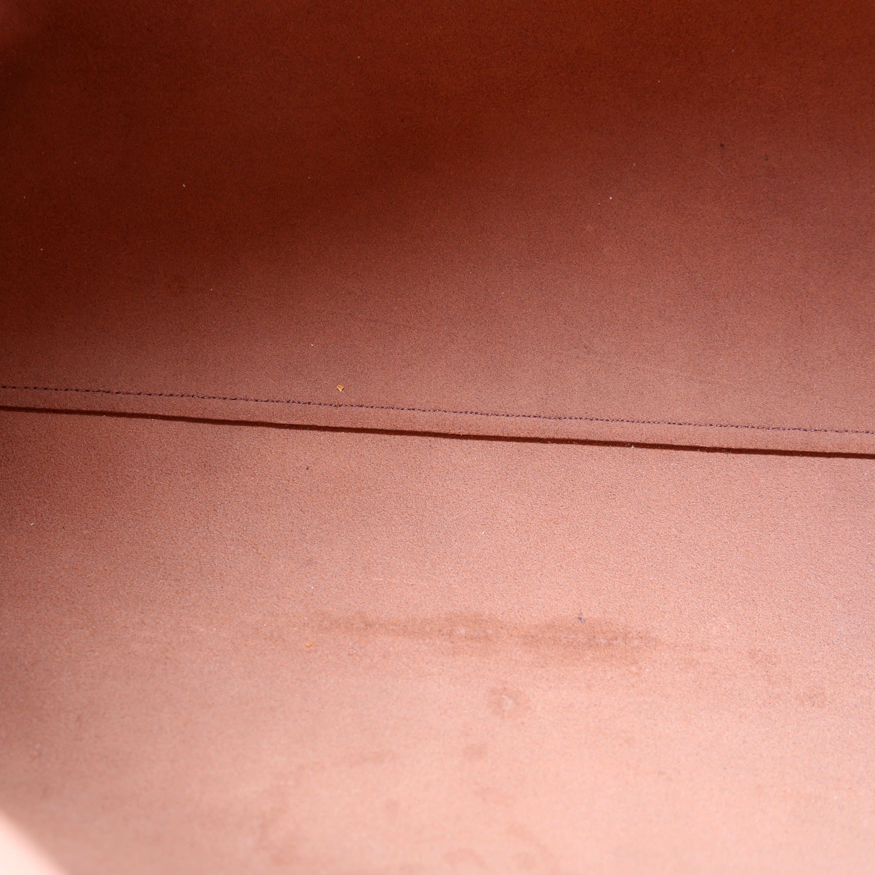 Interior: The interior shows light wear and a minor stain at the base. The interior features one detachable zip closure pouch. The pouch shows minimal scuffs.