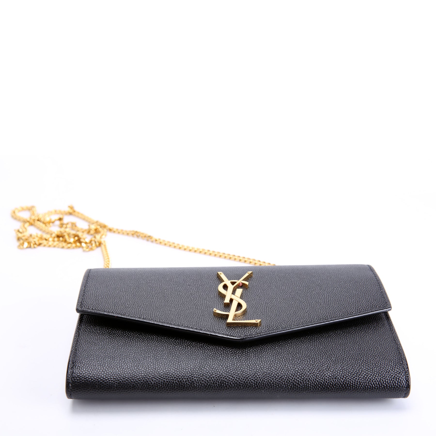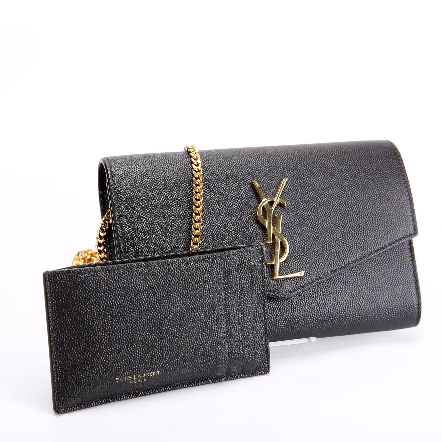 This pre-owned Saint Laurent Uptown Chain Wallet Grain is guaranteed 100% authentic.