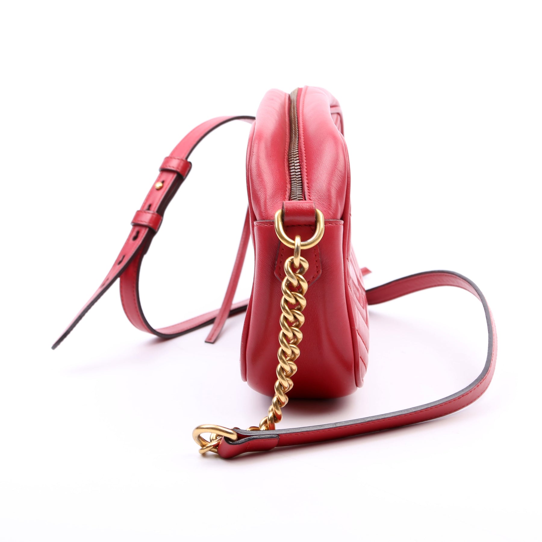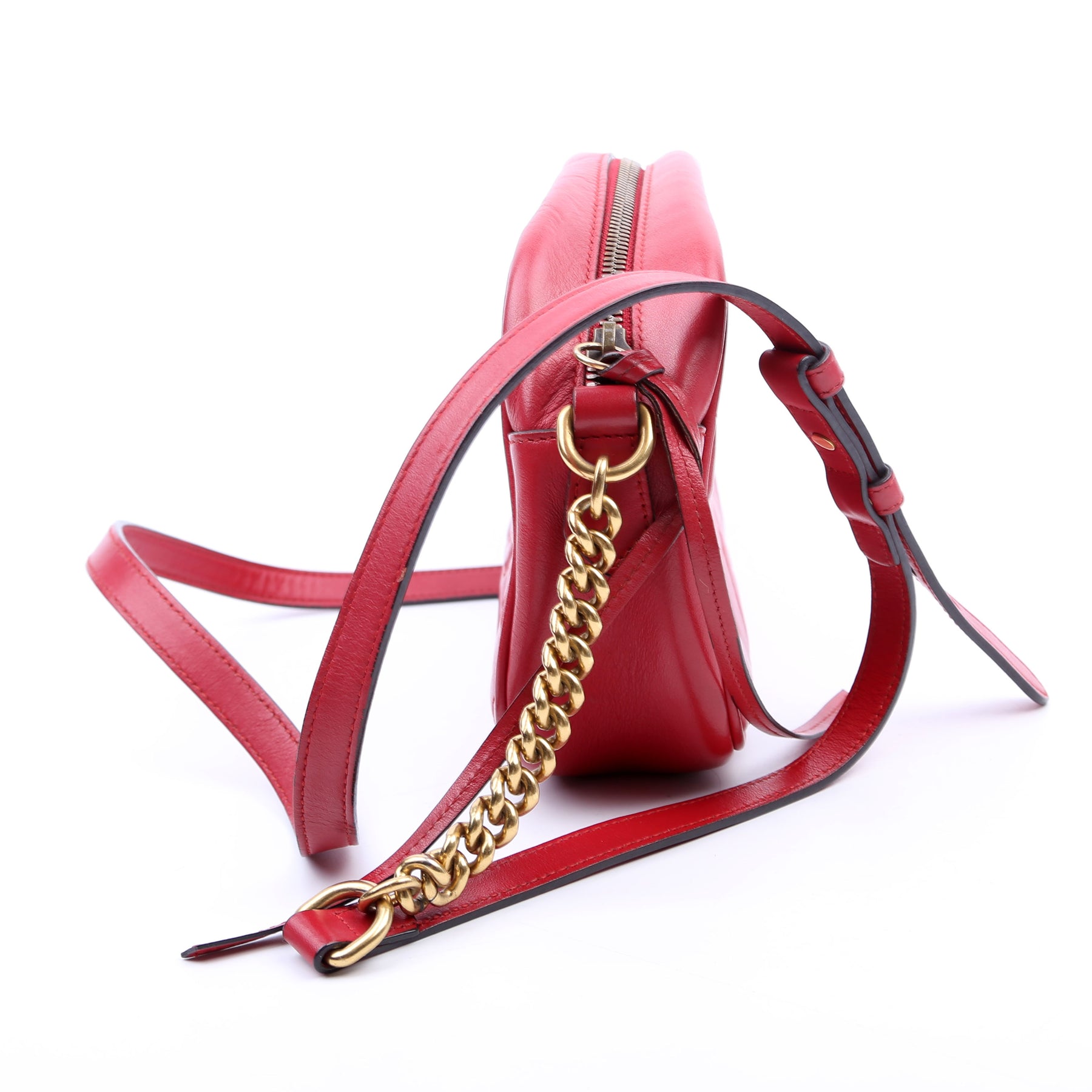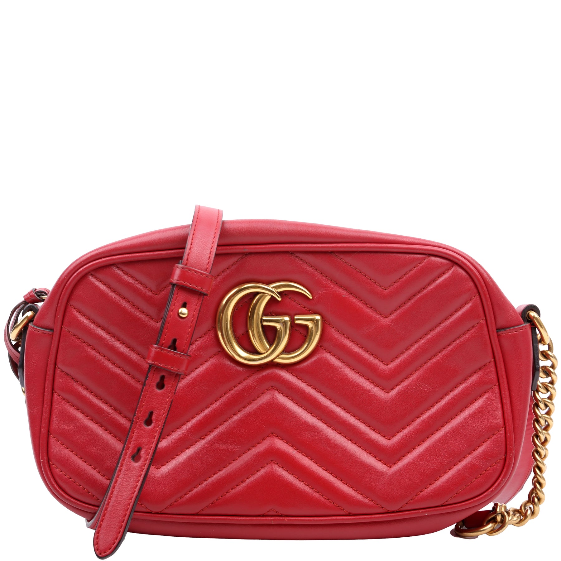 This pre-owned Gucci Marmont Small Leather Camera is guaranteed 100% authentic.
