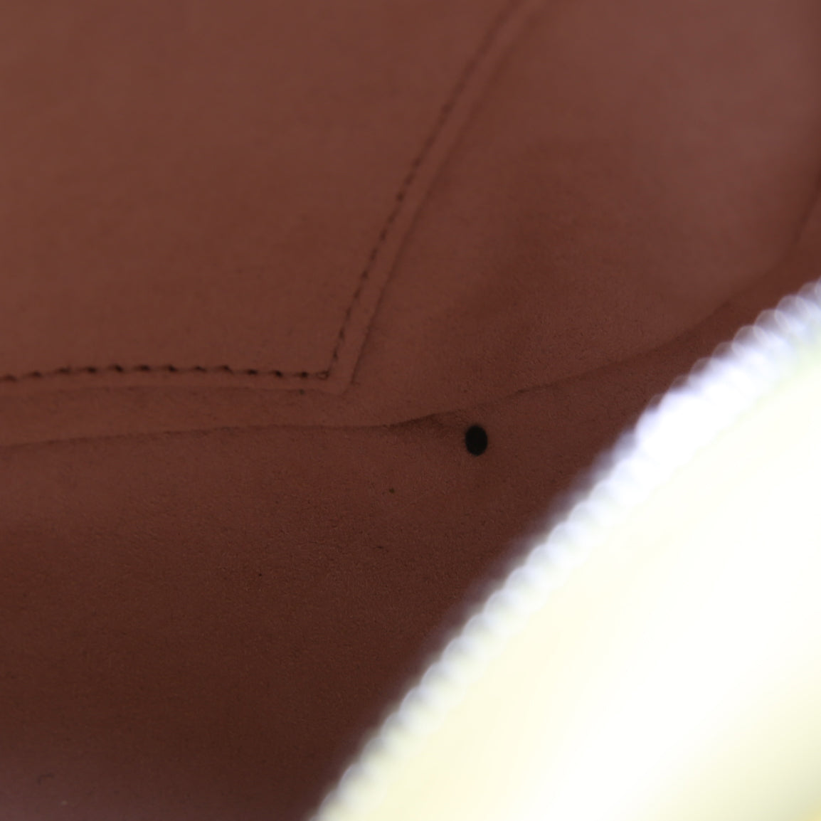 Hardware: The zipper operates properly and runs smoothly. The hardware shows minor wear. The leather zipper pull shows minor wear.