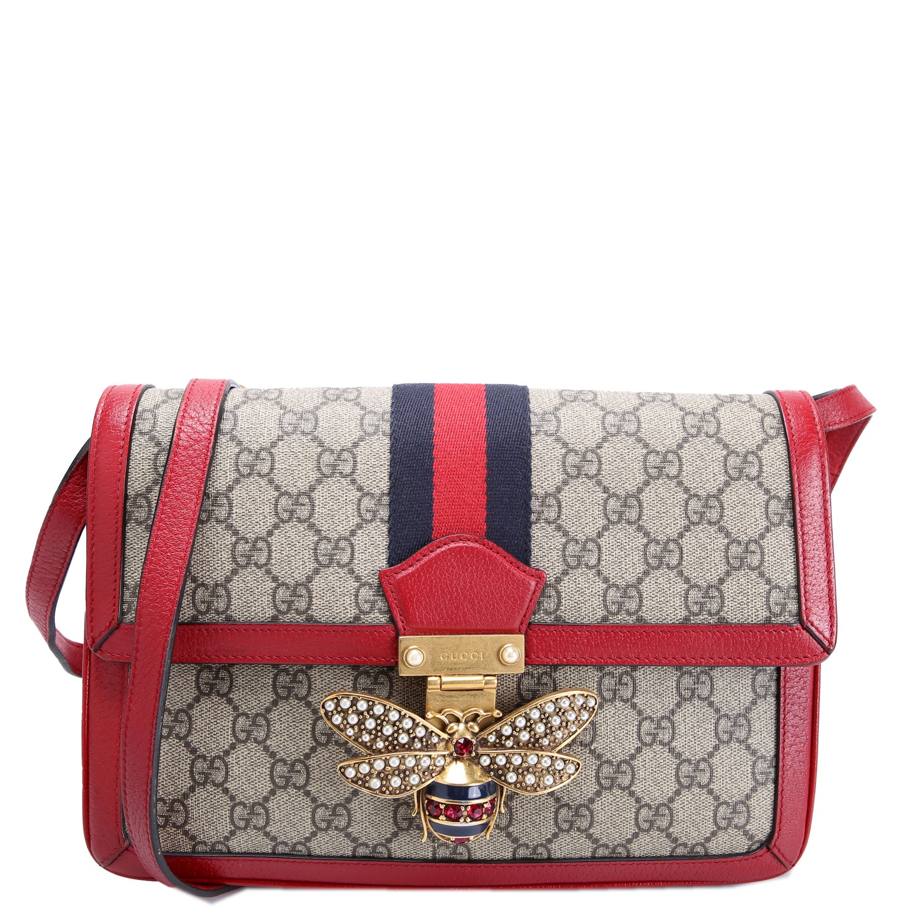 This pre-owned Gucci Queen Margaret Medium Shoulder Bag is guaranteed 100% authentic. The exterior is in the classic Gucci Supreme Coated Canvas.