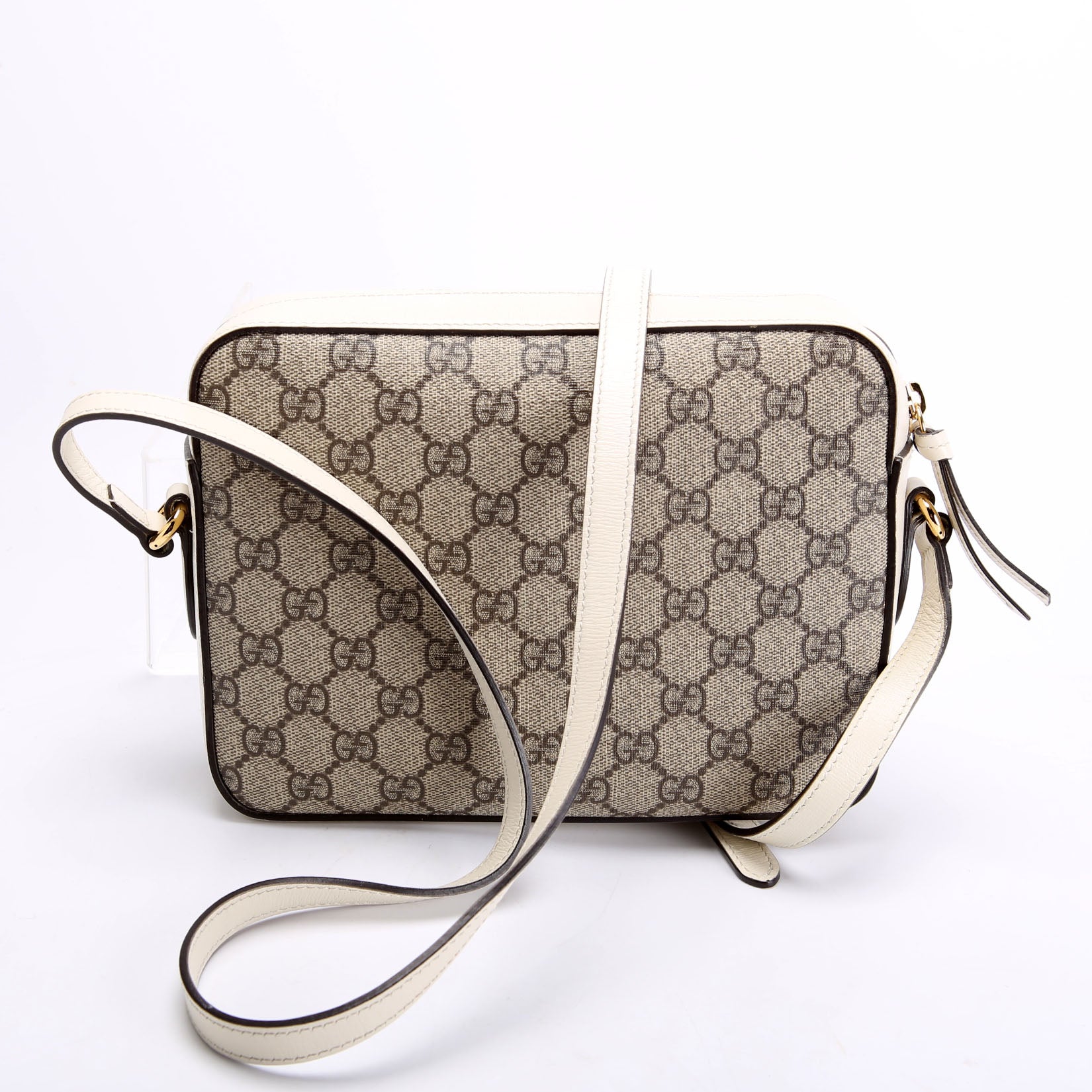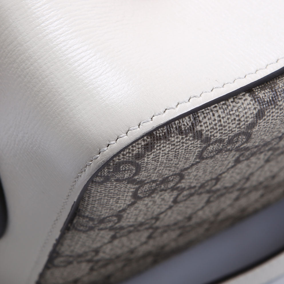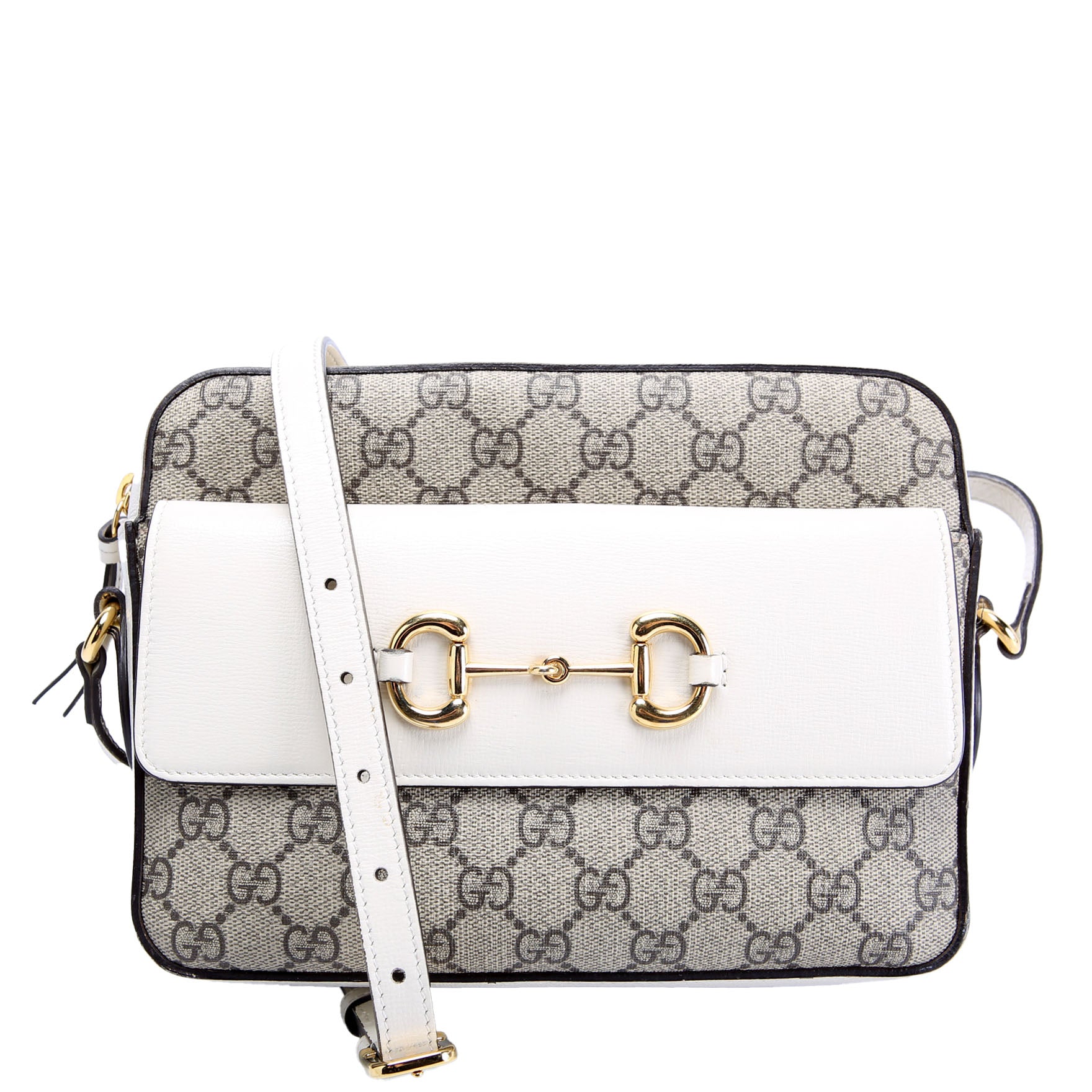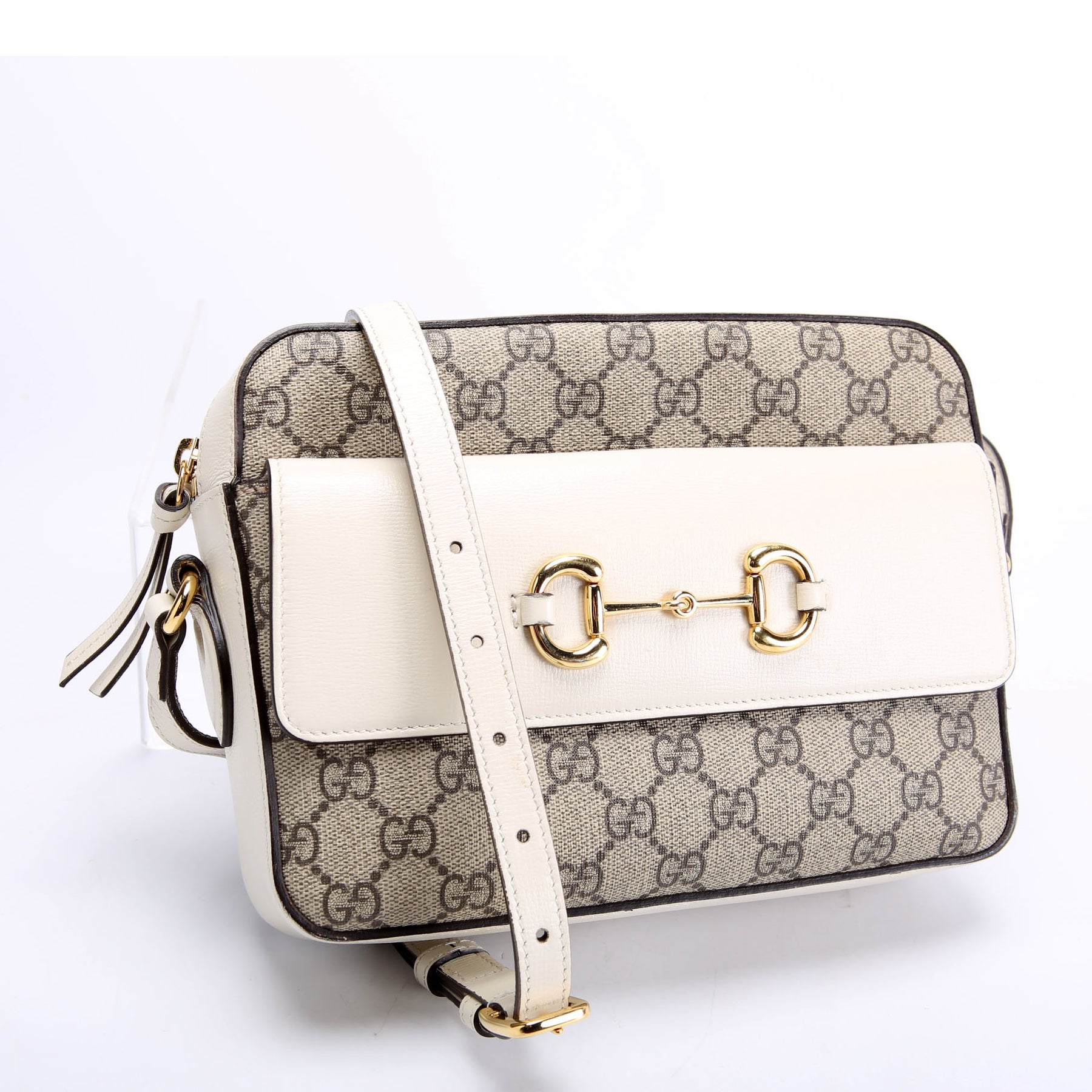 This pre-owned Gucci Horsebit 1955 Small is guaranteed 100% authentic. The exterior is in the classic Gucci Coated Canvas and Leather.