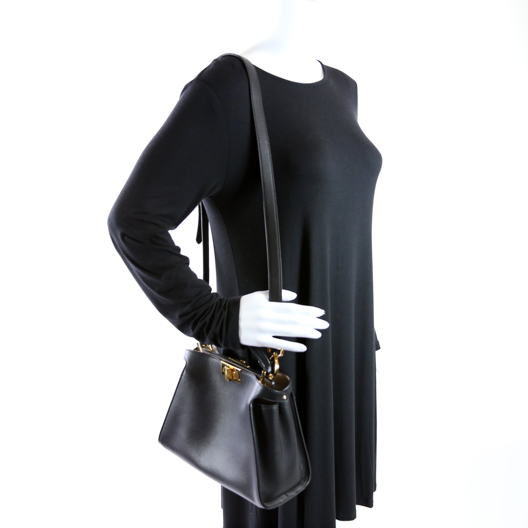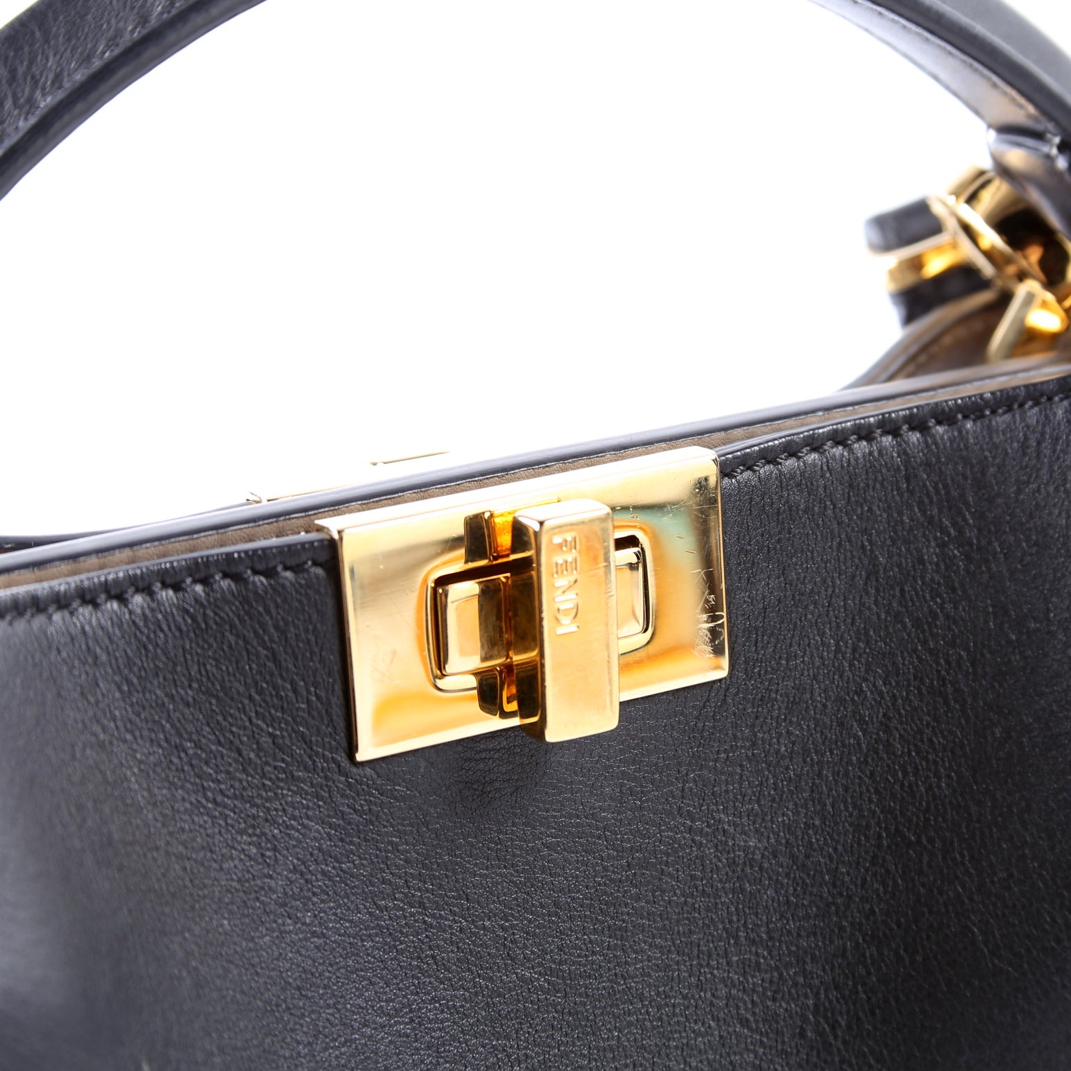 This pre-owned Fendi Peekaboo Essentially Medium is guaranteed 100% authentic. The exterior is in the classic Fendi Calfskin leather.