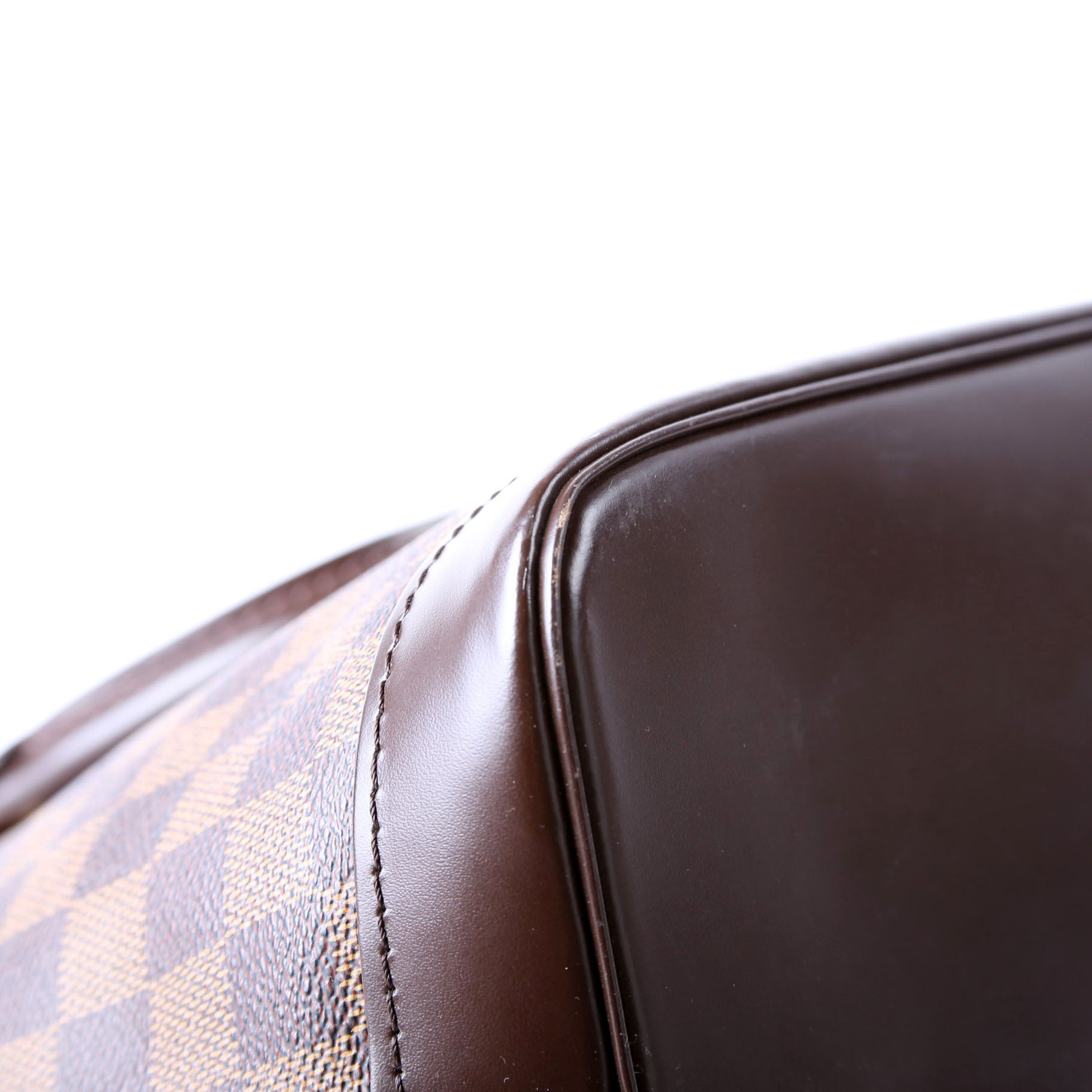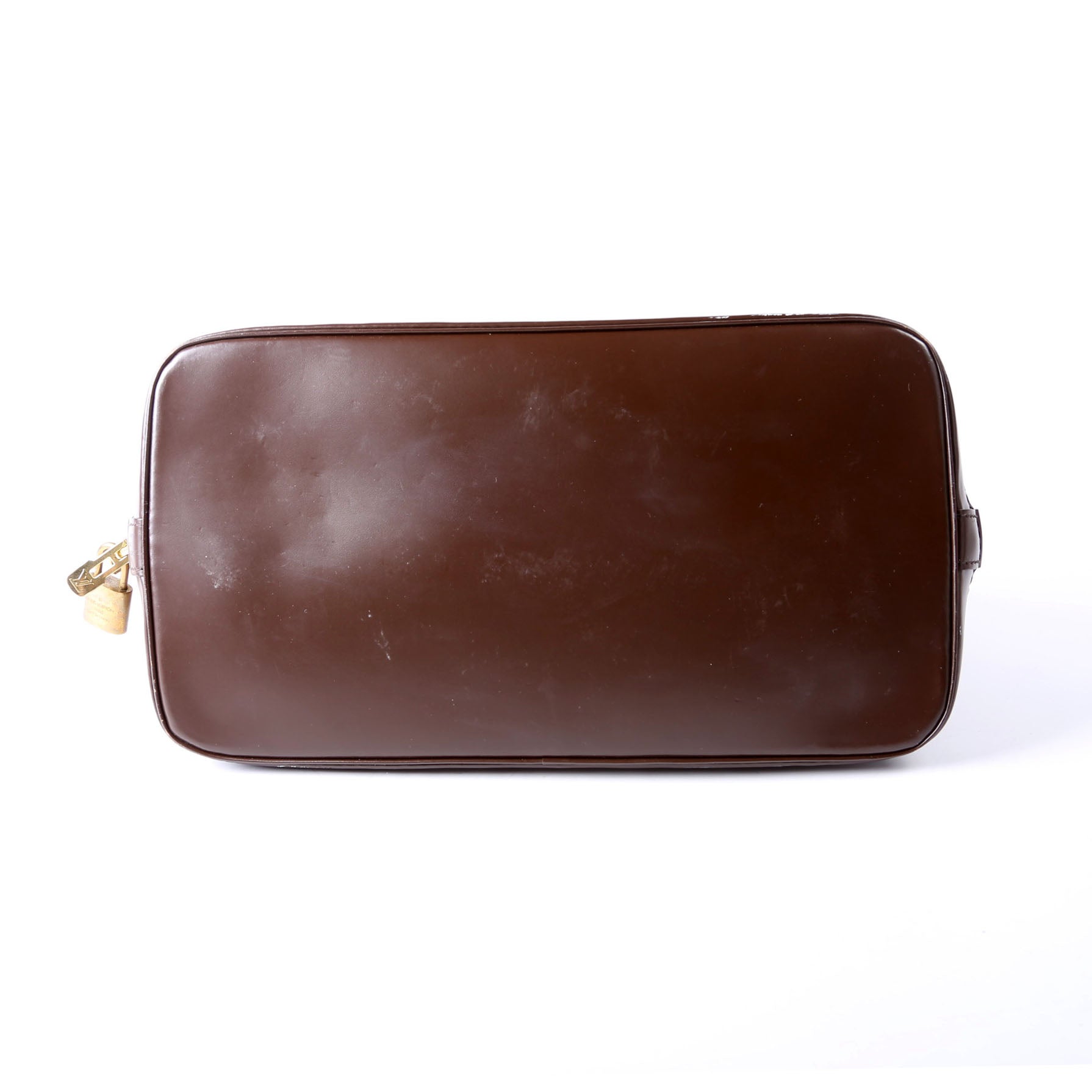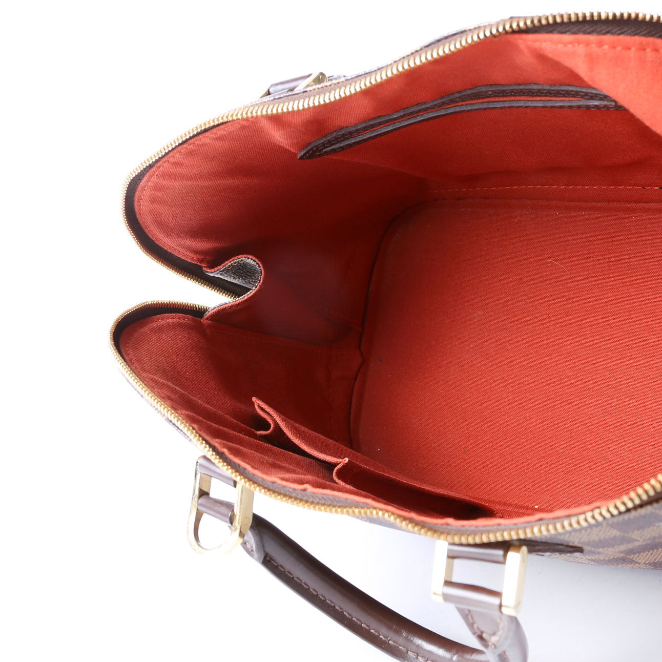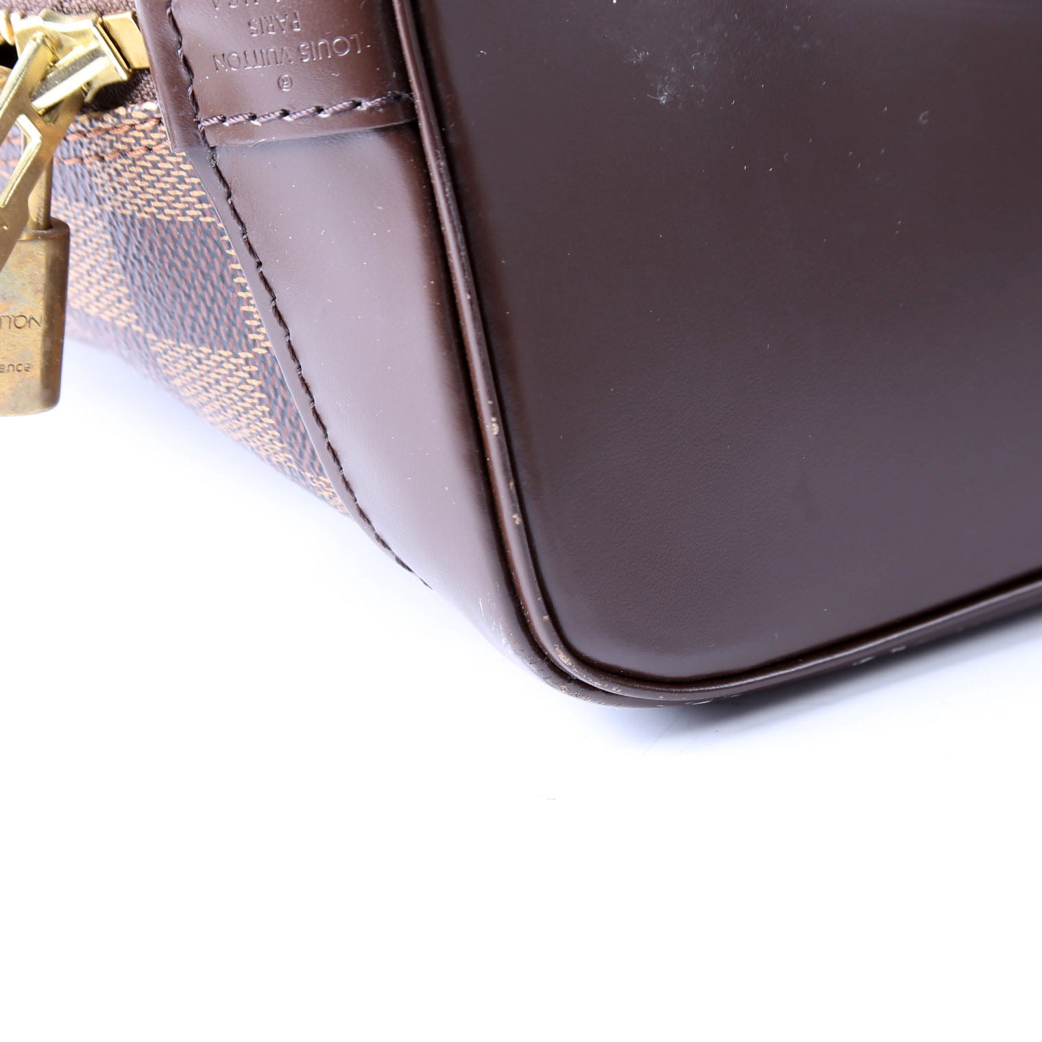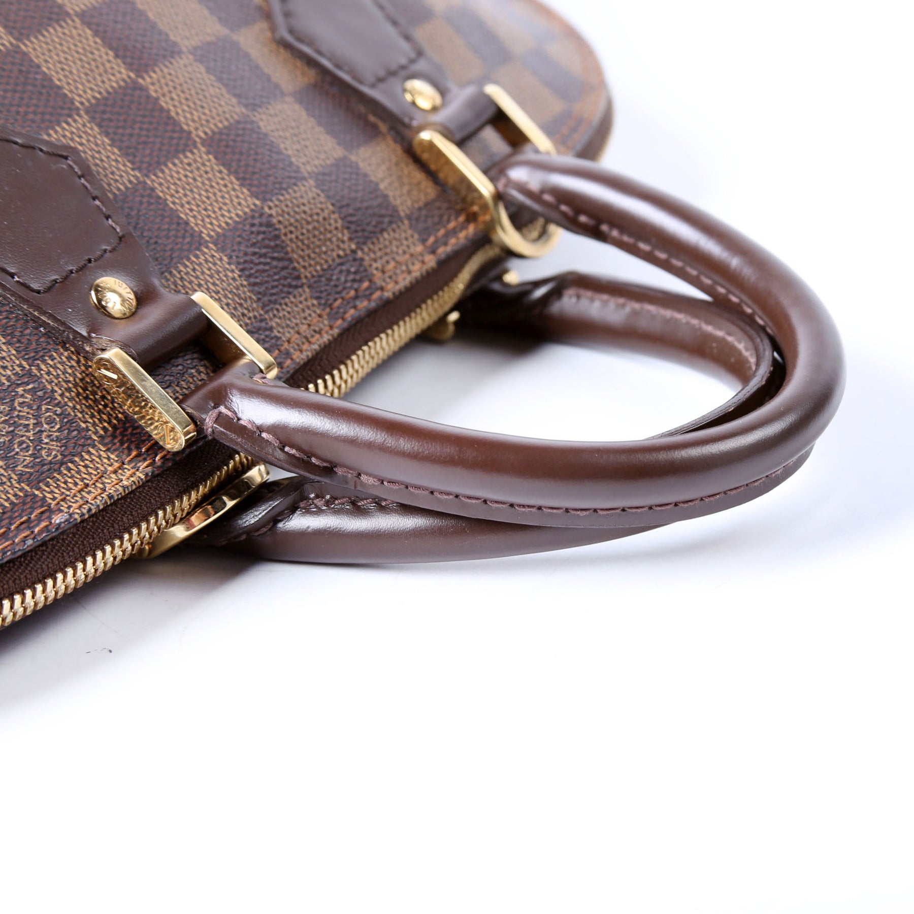 This pre-owned Louis Vuitton Alma PM is guaranteed 100% authentic. The exterior is in the classic Louis Vuitton Damier Ebene coated canvas.