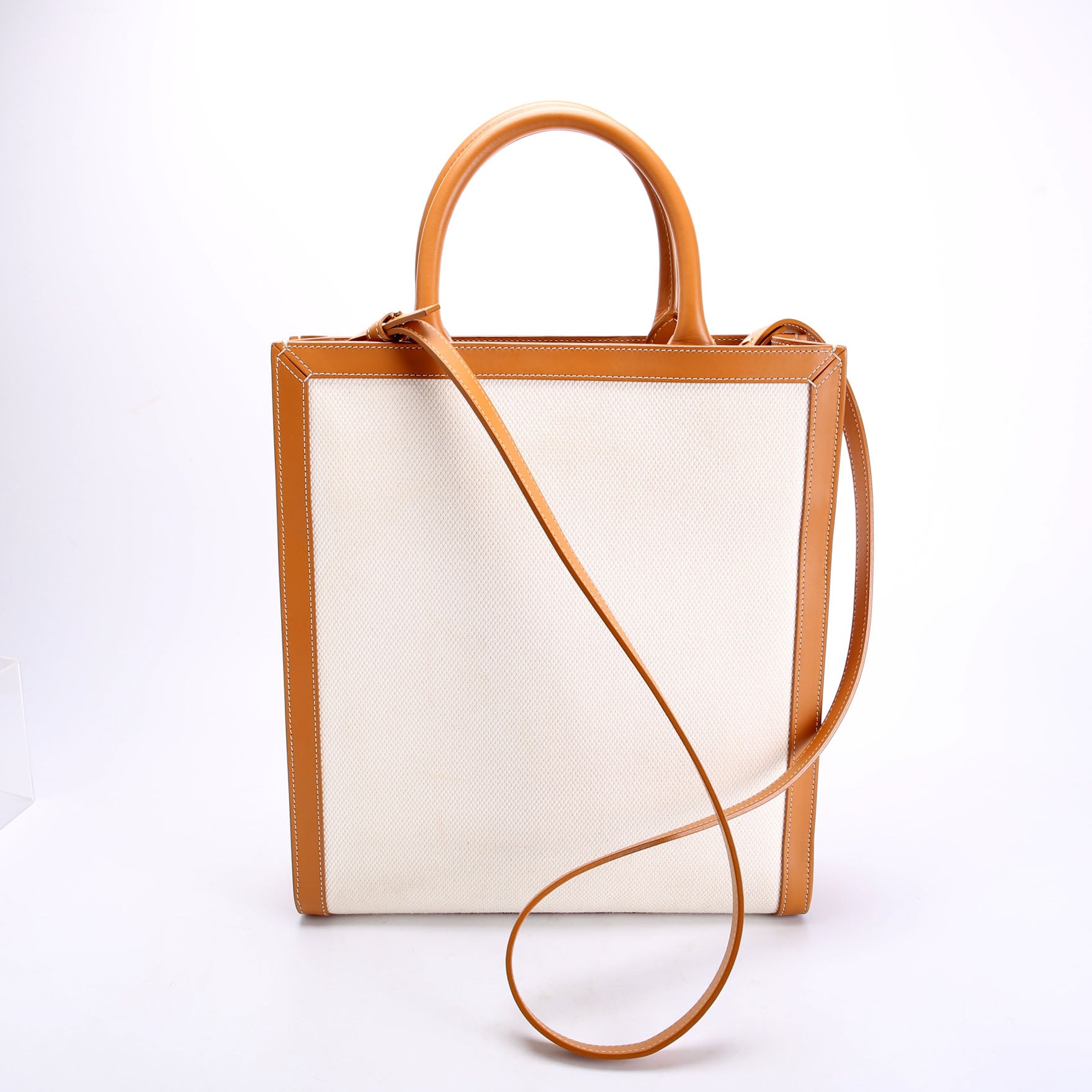 This pre-owned Celine Cabas Vertical Small is guaranteed 100% authentic. The exterior is in the classic Celine Canvas.
