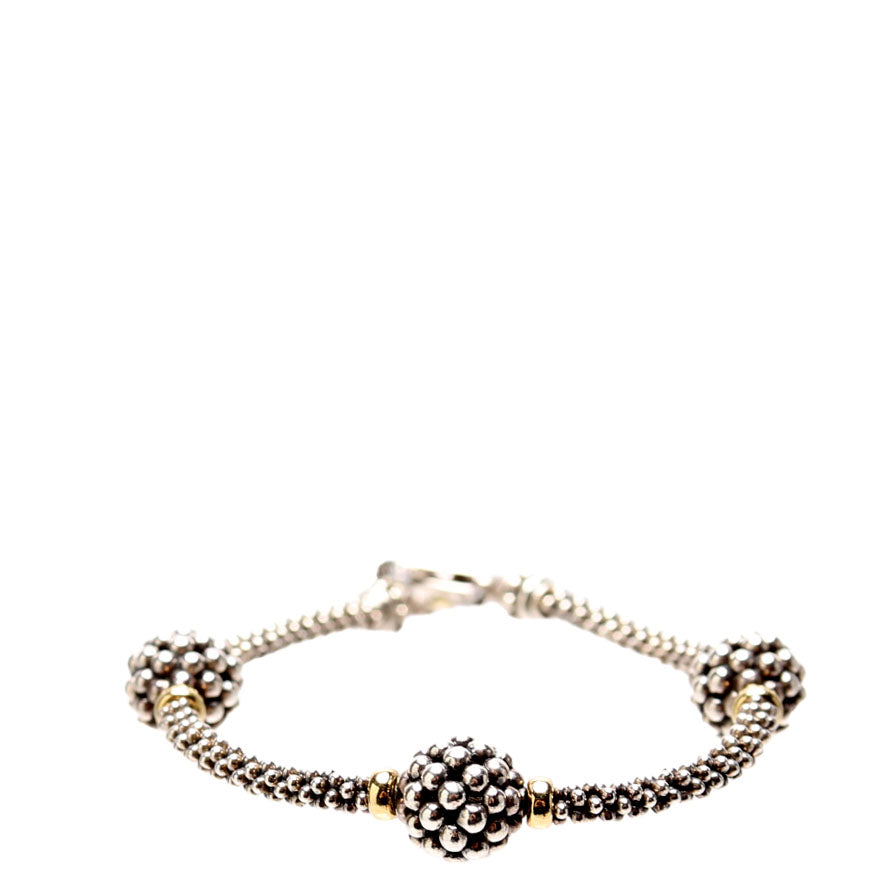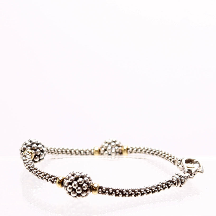 This pre-owned Lagos Three Station Caviar 6MM 925/750 Bracelet is guaranteed 100% authentic.