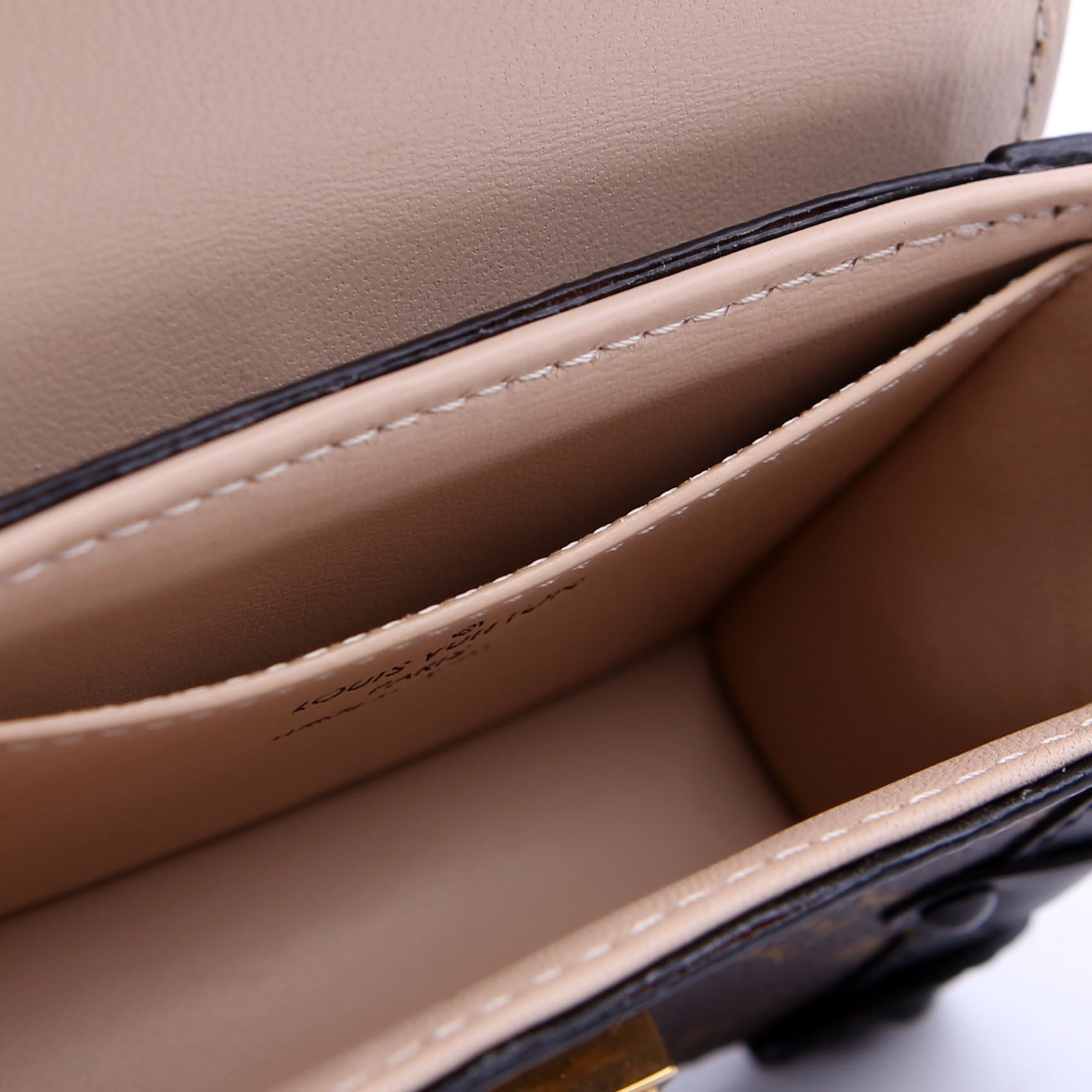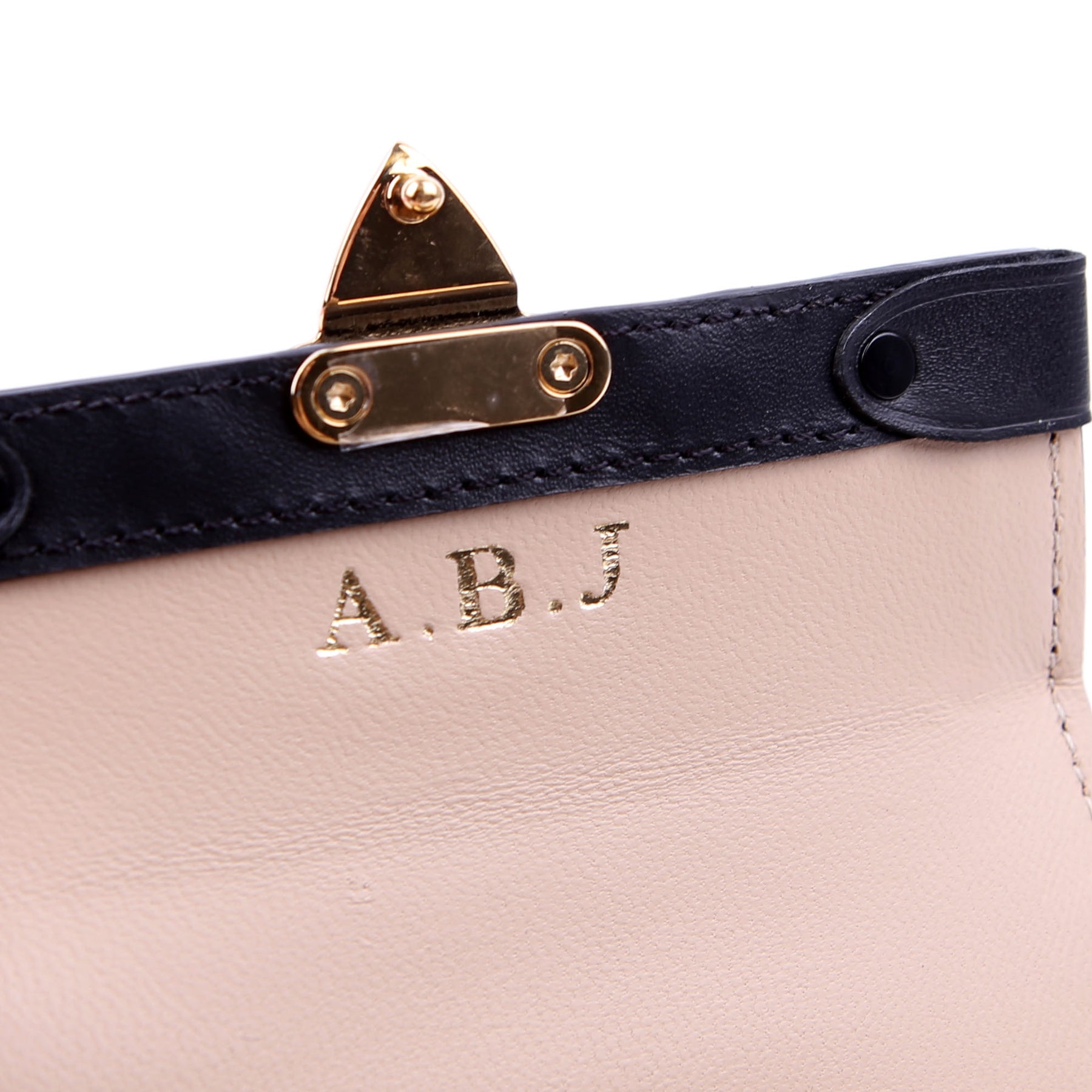 Interior: The interior is clean, and features one open pocket. There is a heat stamp with the initials "ABJ" under the flap.