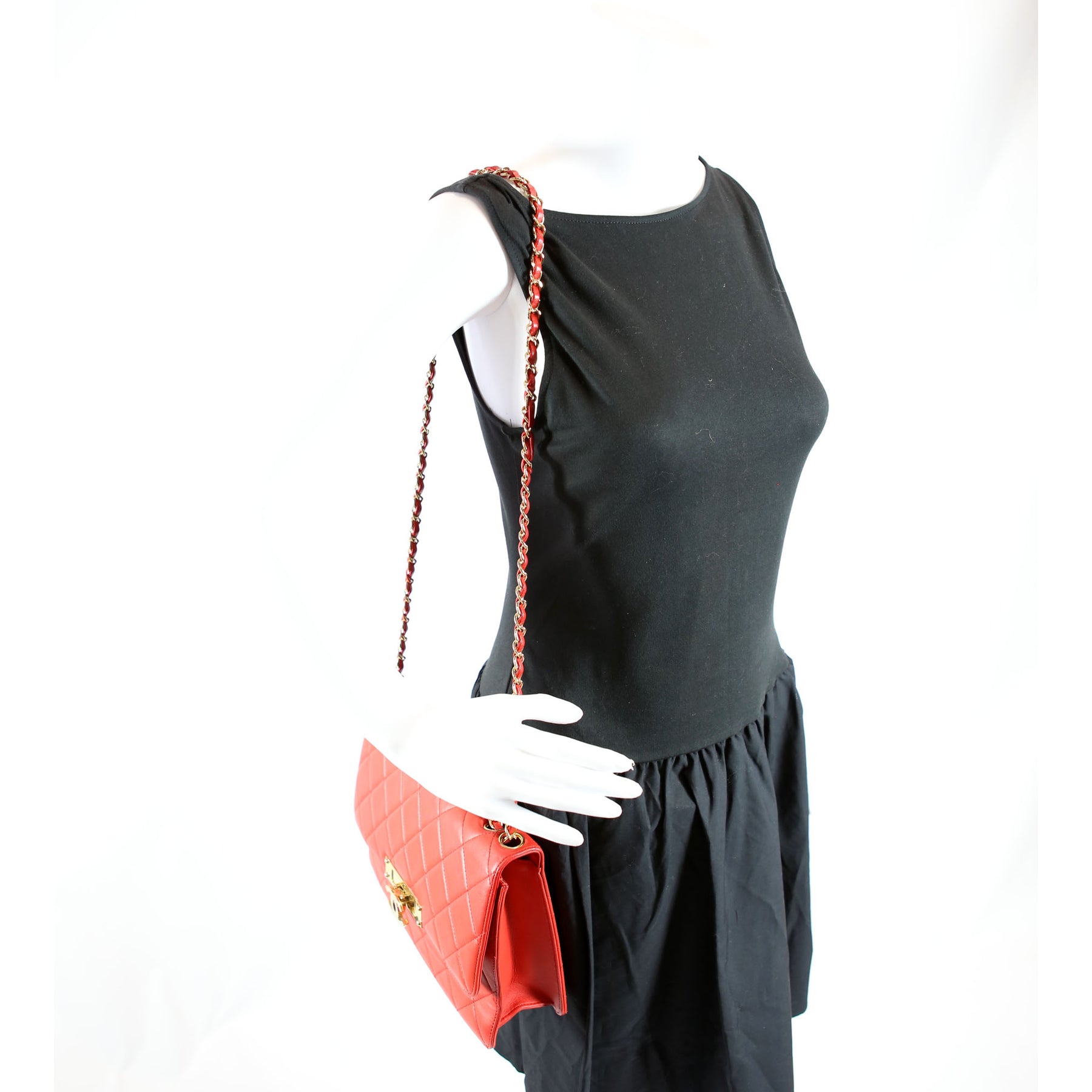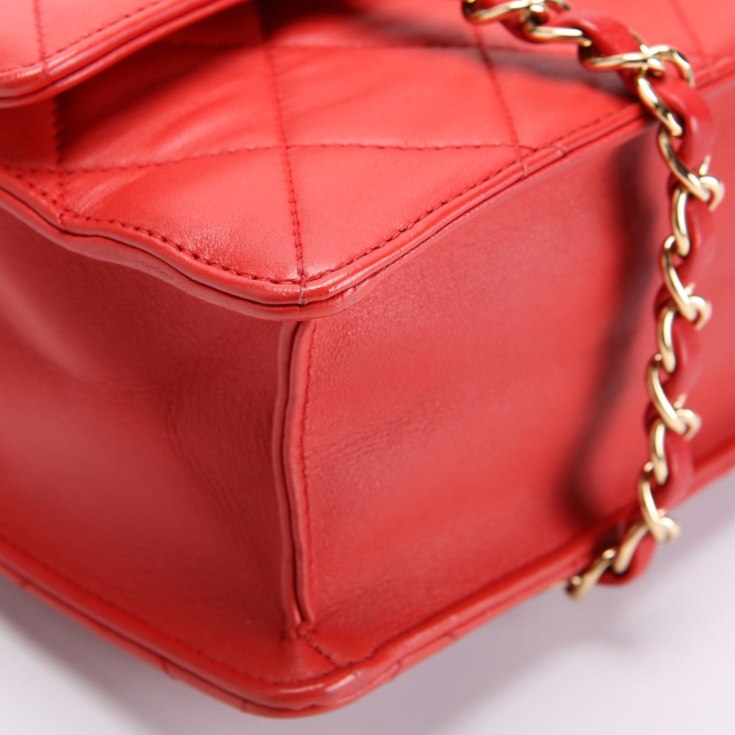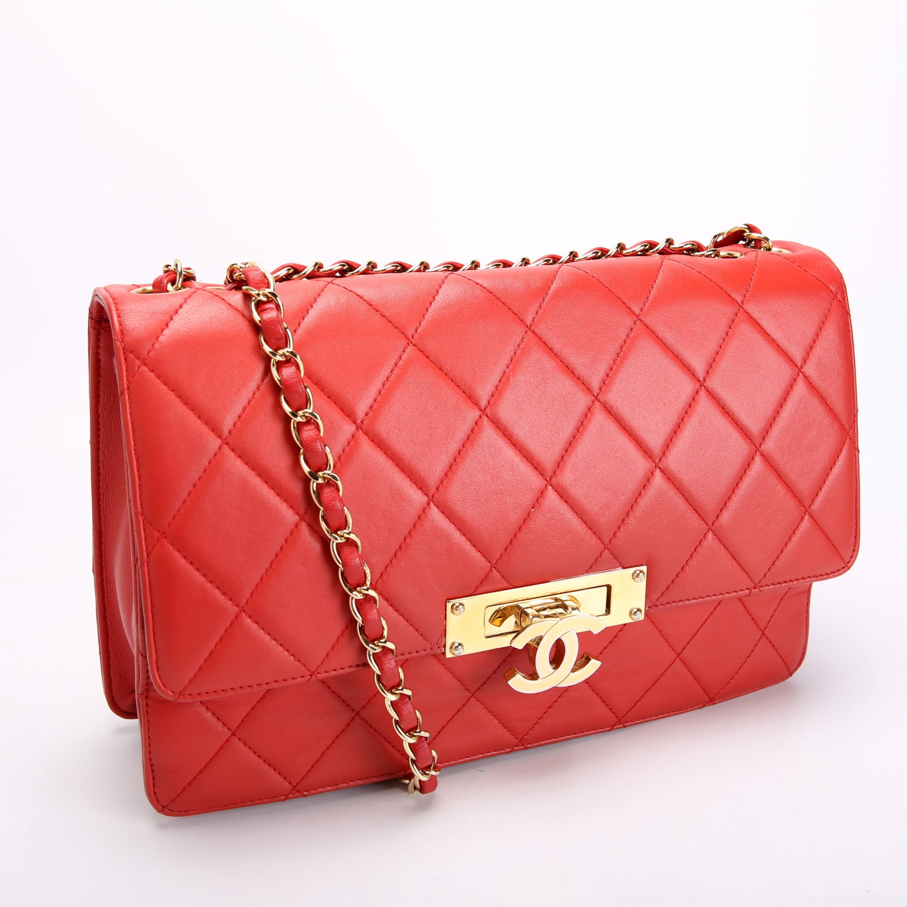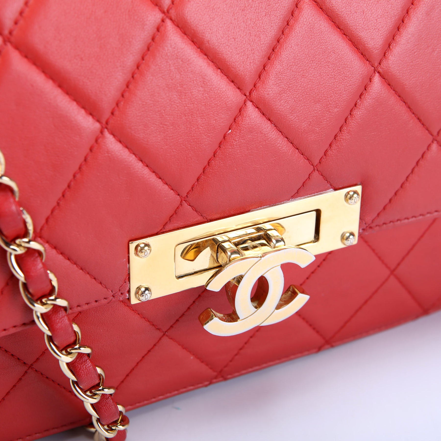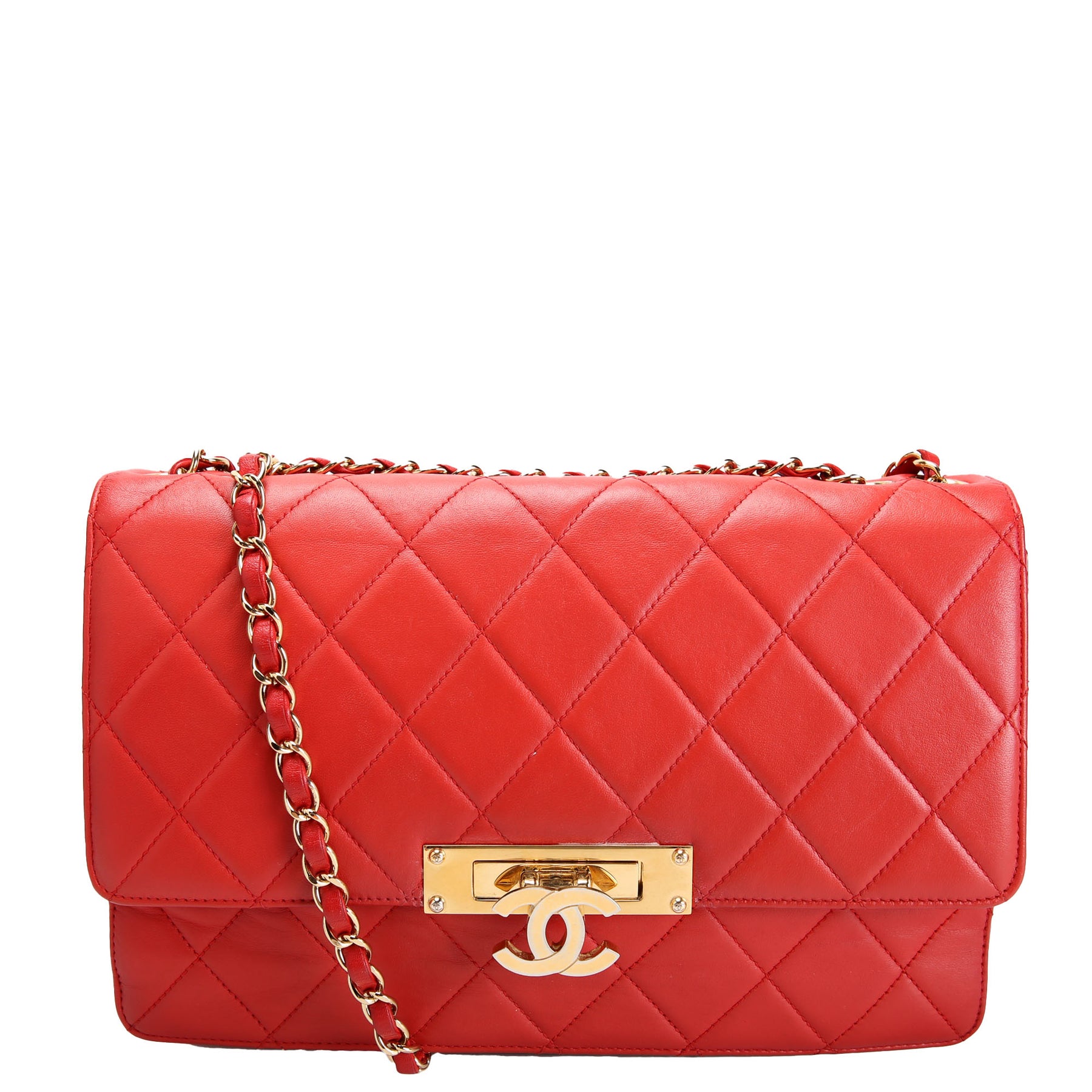 Golden Class Large Flap Bag Quilted Lambskin 19M Red