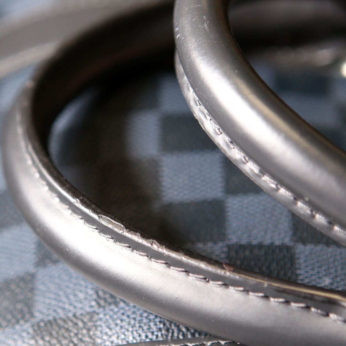 Handle: The handles has light wear throughout. The leather piping shows rubbing.
