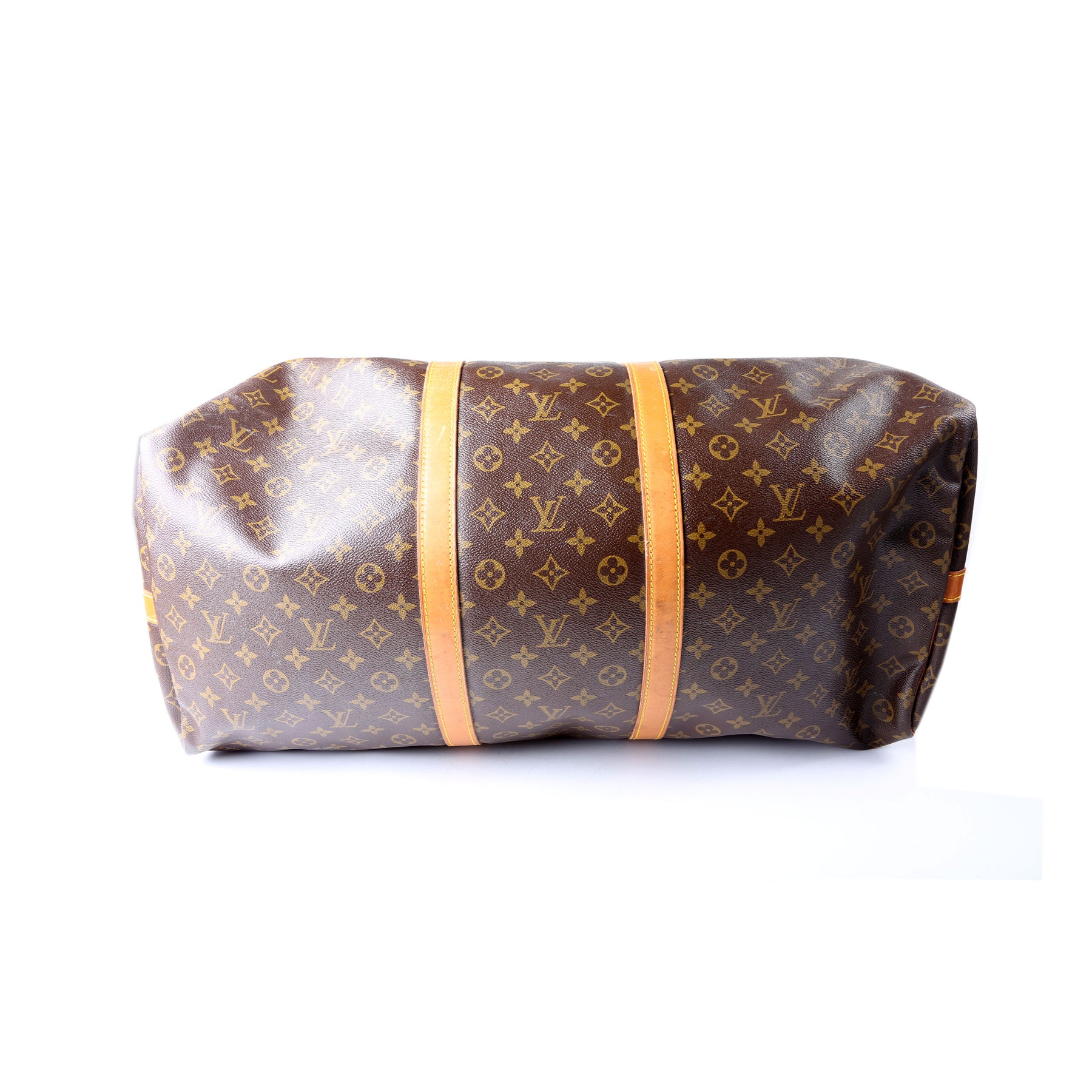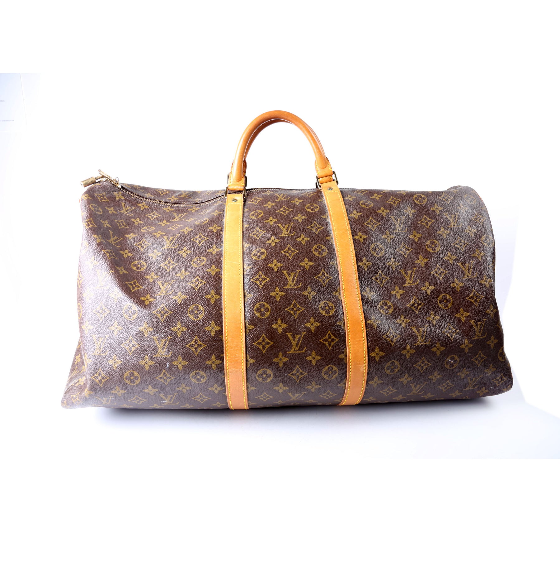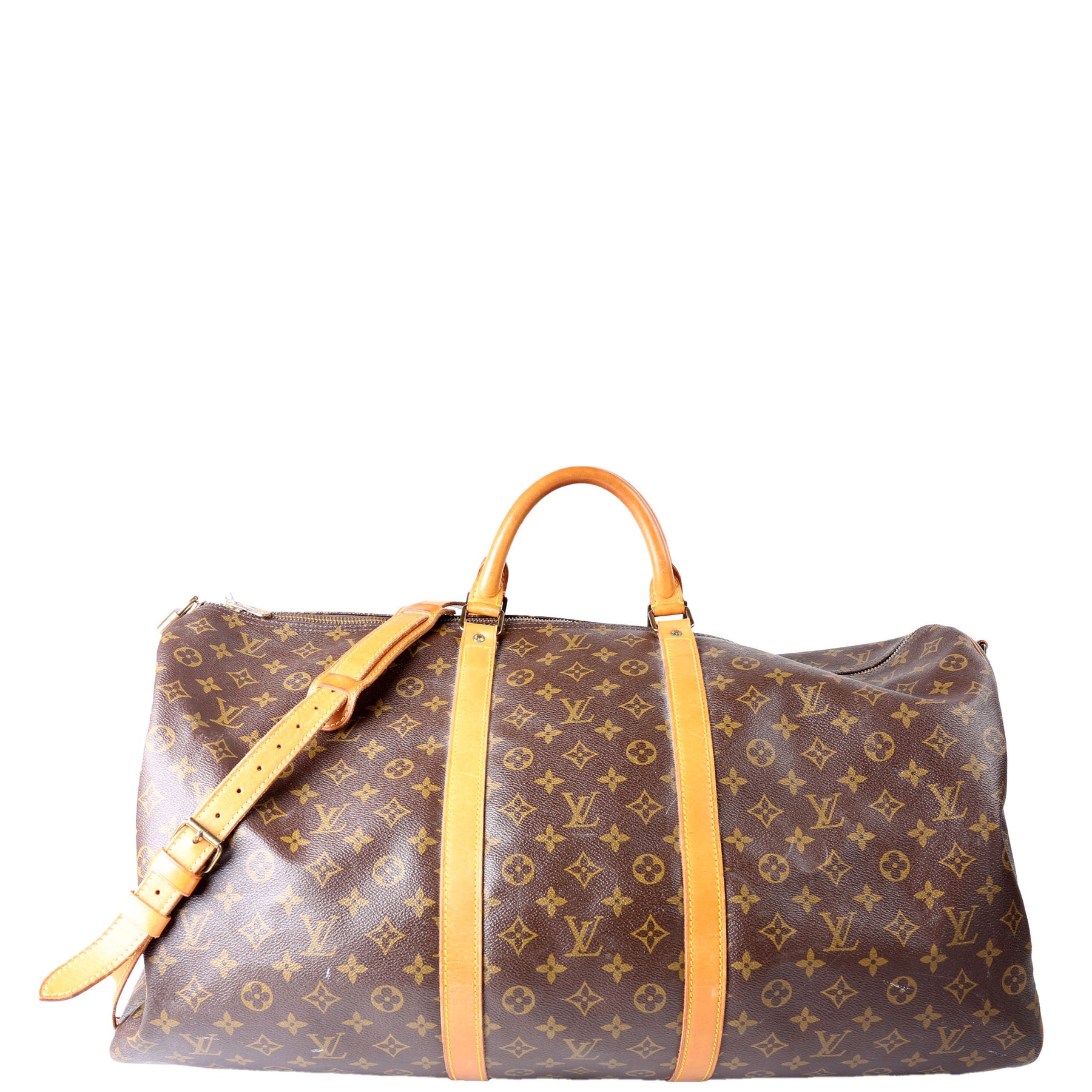 This pre-owned Louis Vuitton Keepall 60 is guaranteed 100% authentic. The exterior is in the classic Louis Vuitton Monogram coated canvas.