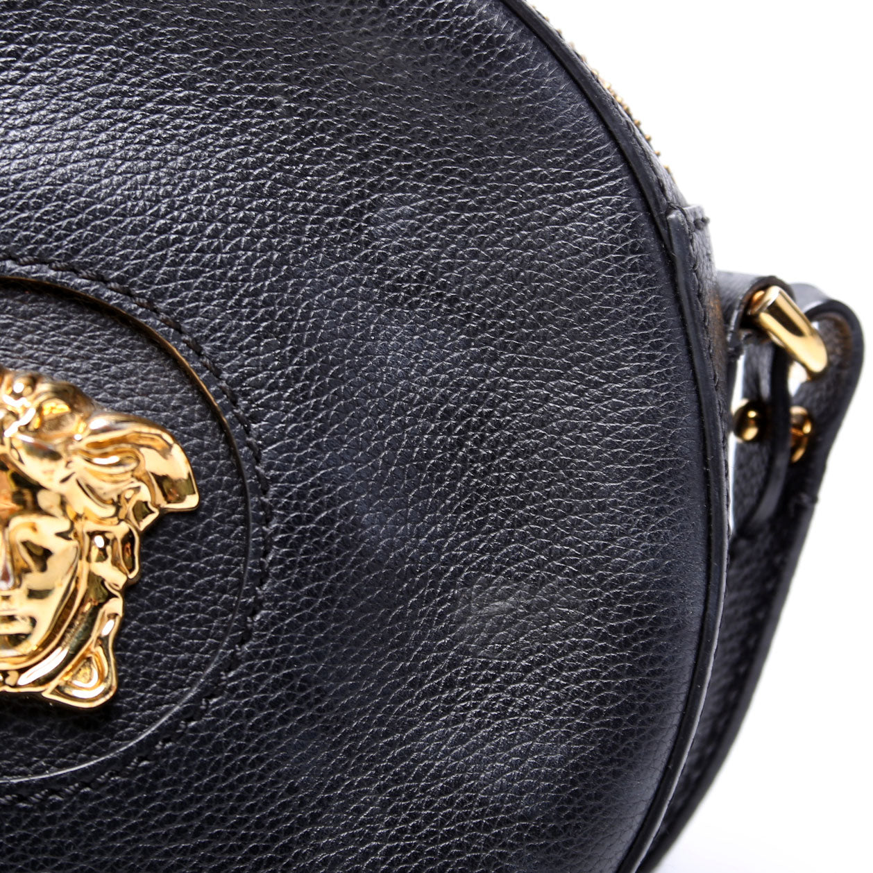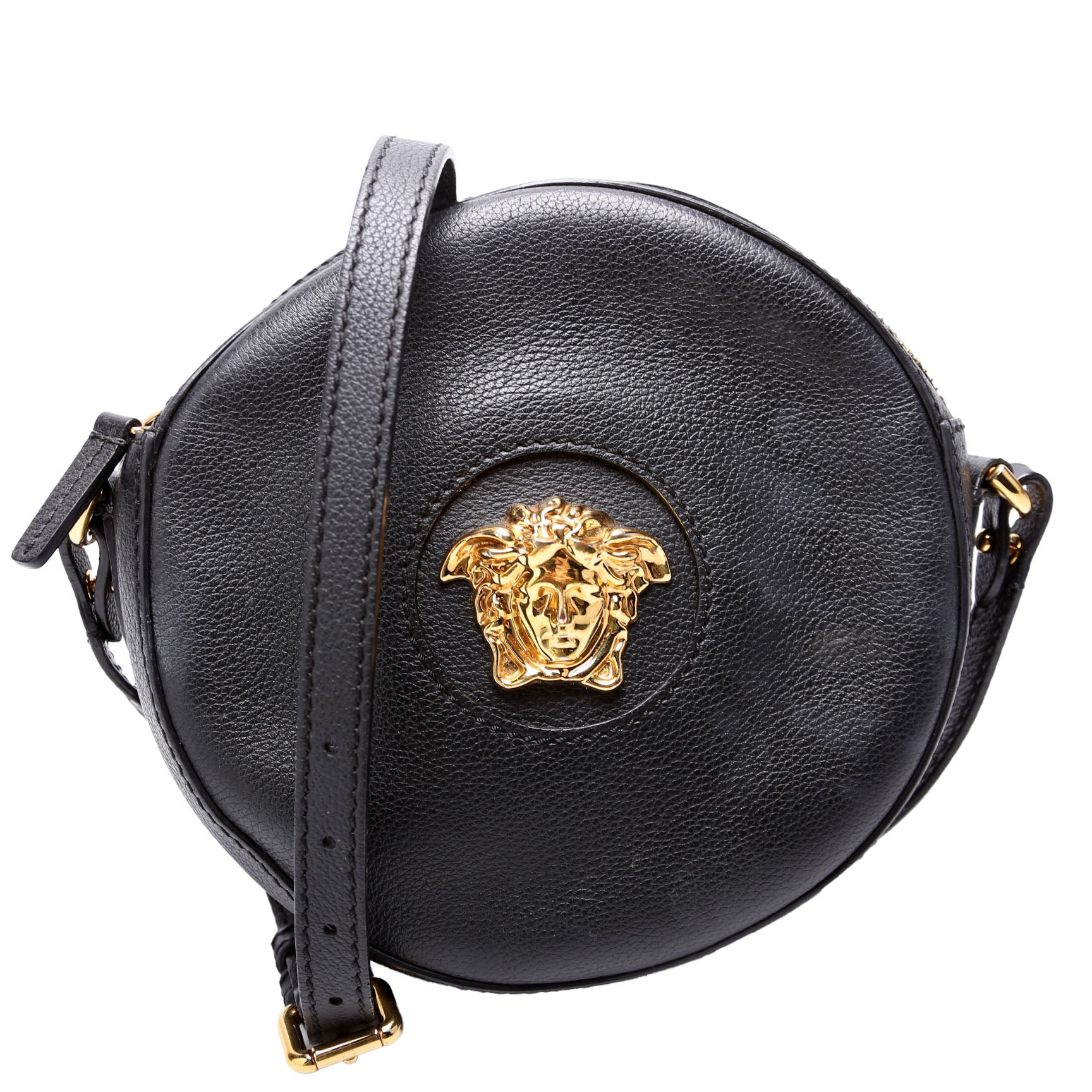 This pre-owned Versace La Medusa Round Leather Camera Bag is guaranteed 100% authentic.