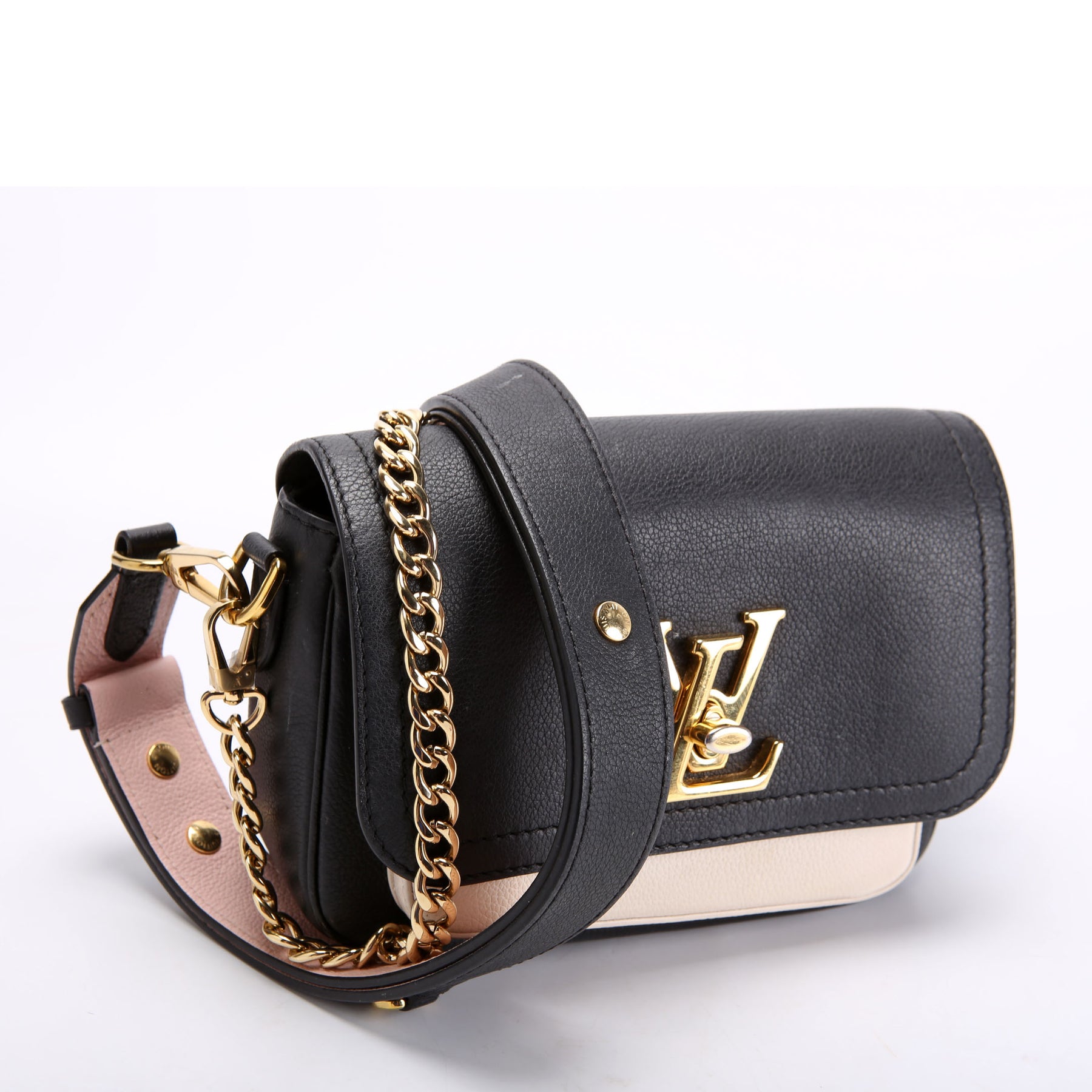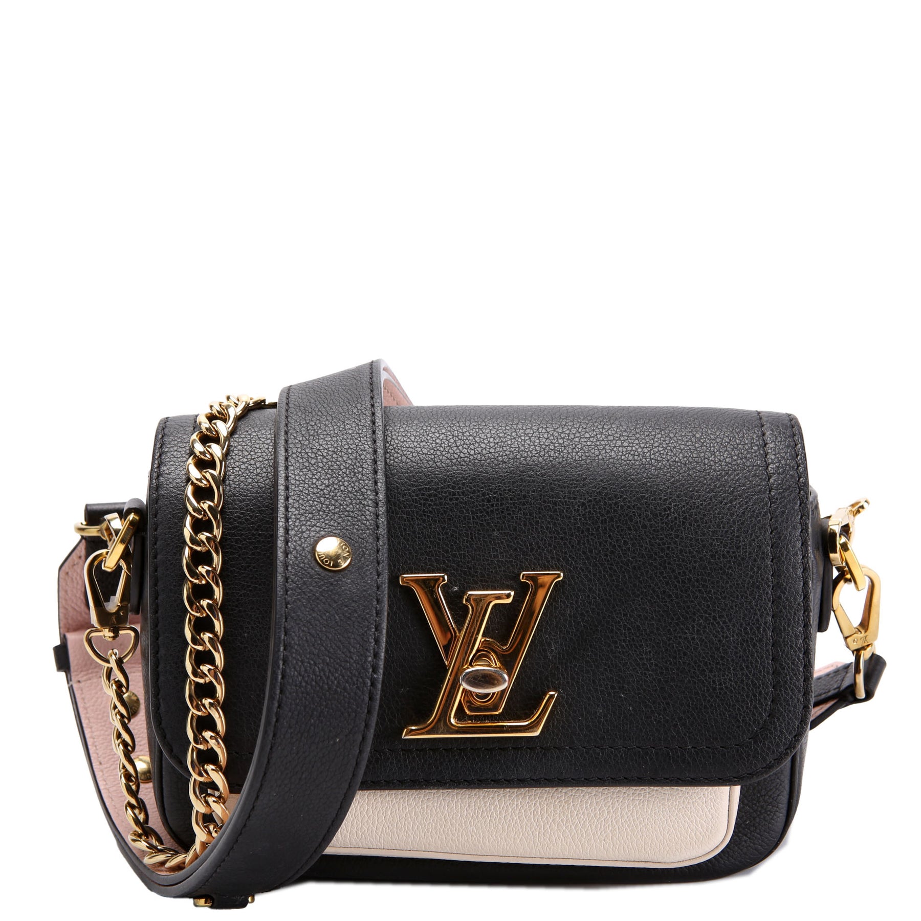 This pre-owned Louis Vuitton Lockme Tender Supple is guaranteed 100% authentic. The exterior is in the classic Louis Vuitton Giant Calfskin leather.