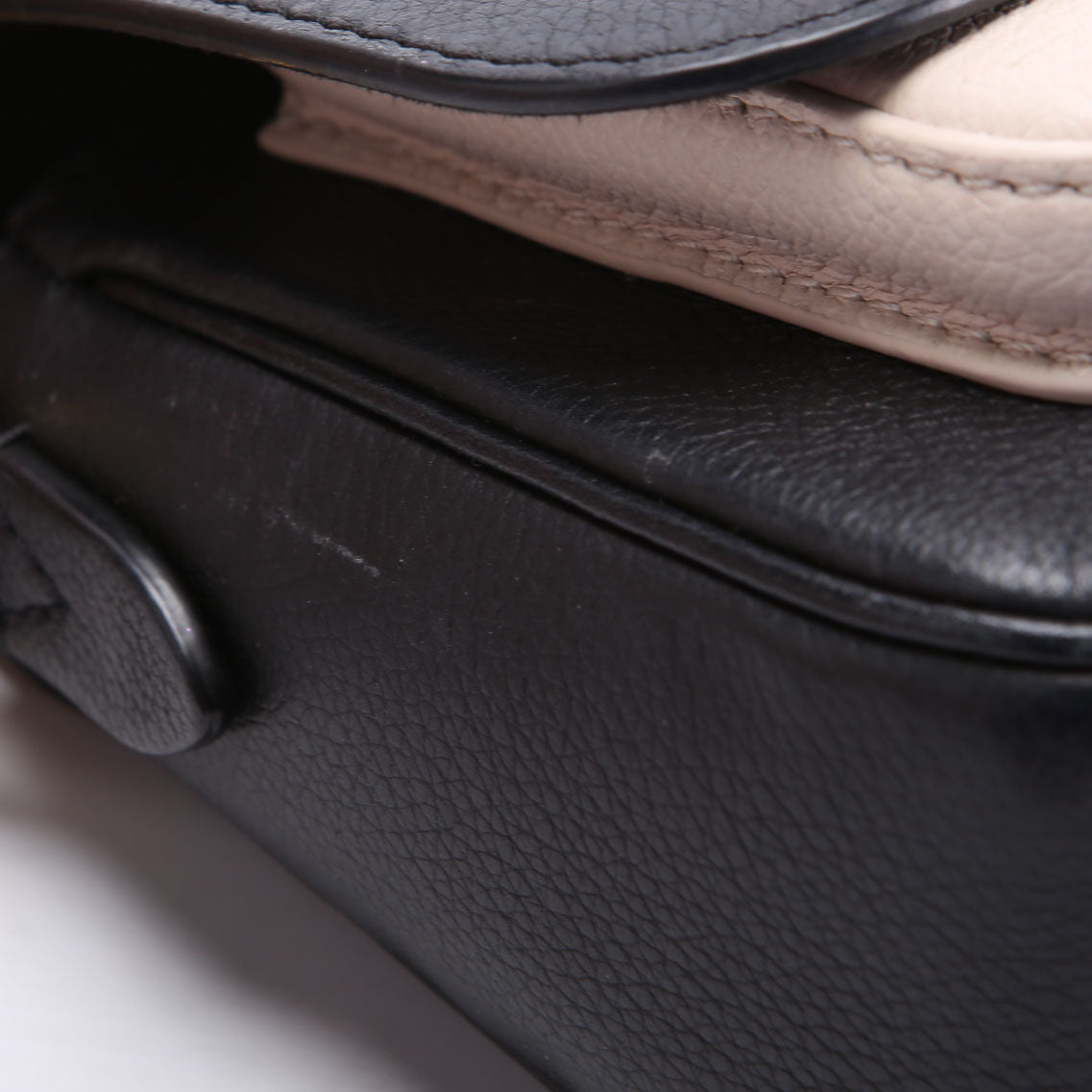 Hardware: The twist lock operates properly. The hardware shows scratches and discoloration.