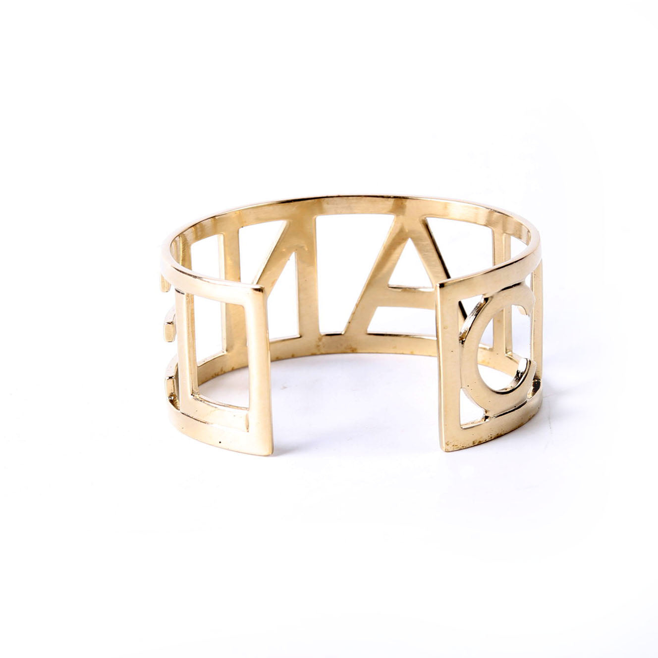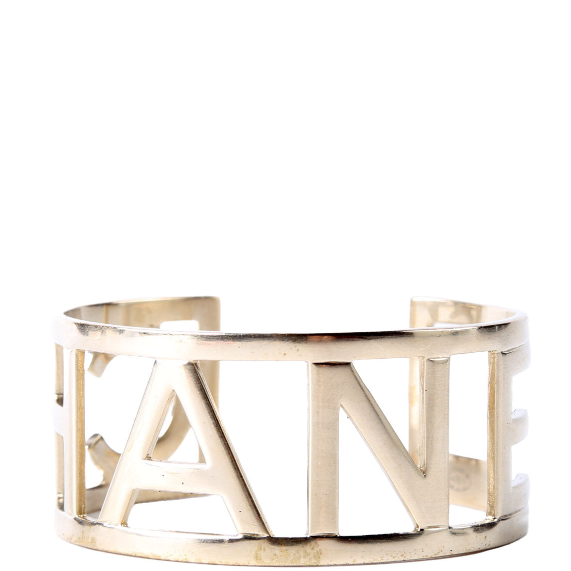 This pre-owned Chanel Logo Cutout Cuff Bracelet is guaranteed 100% authentic.