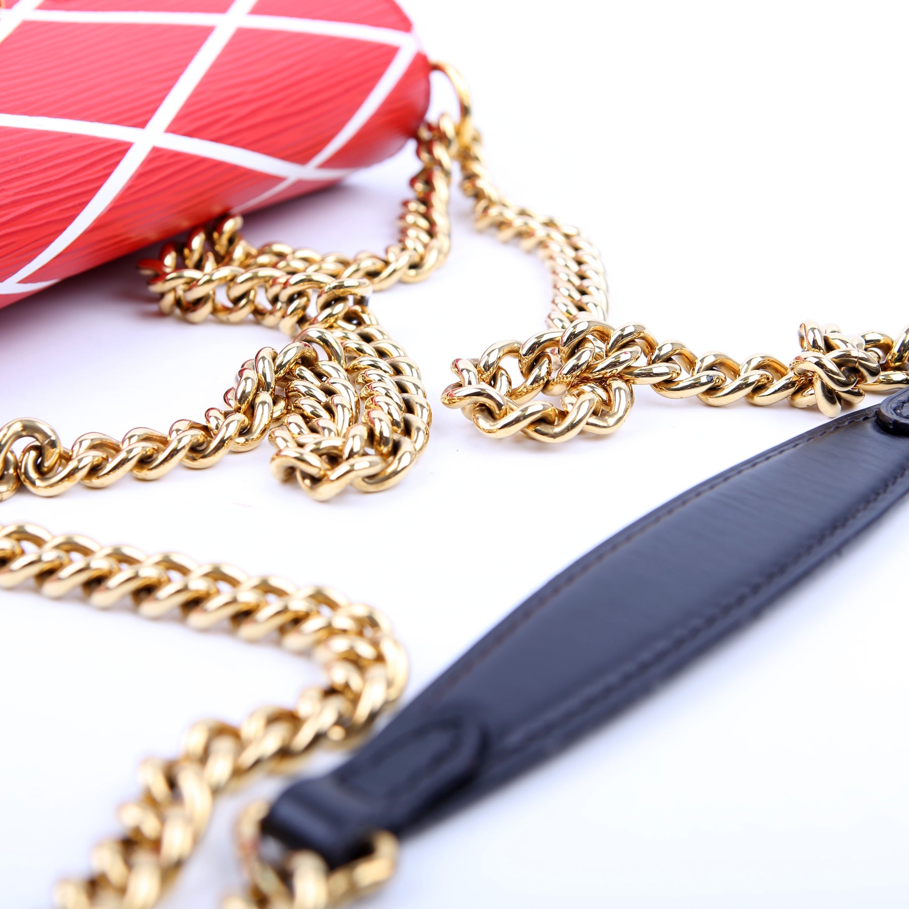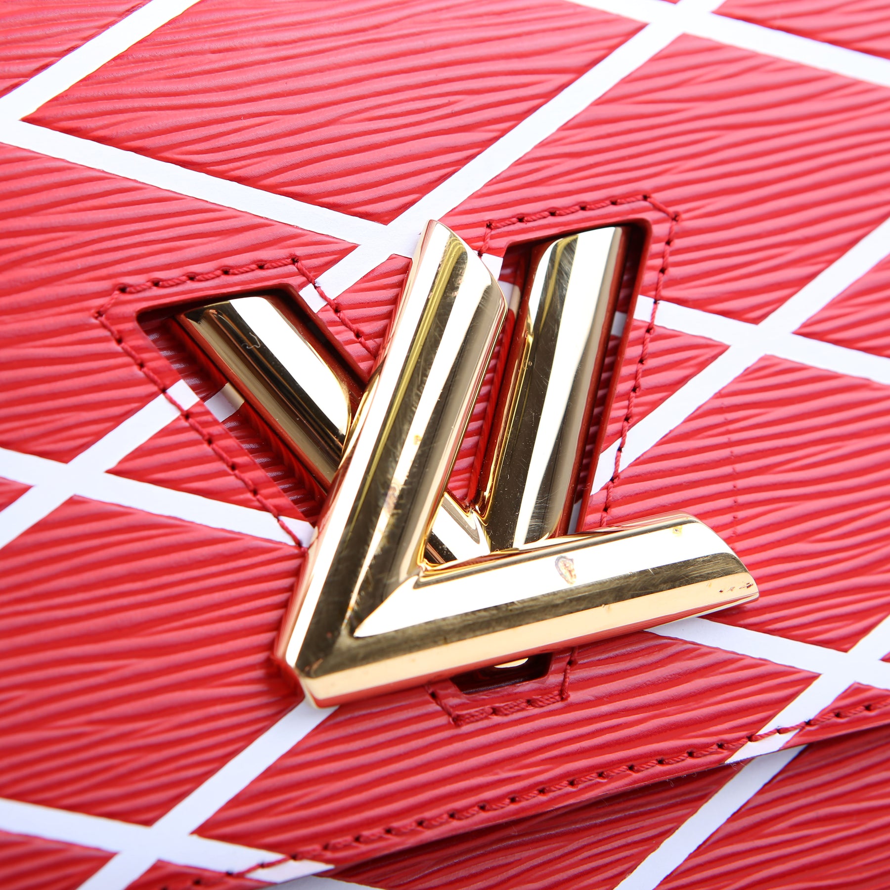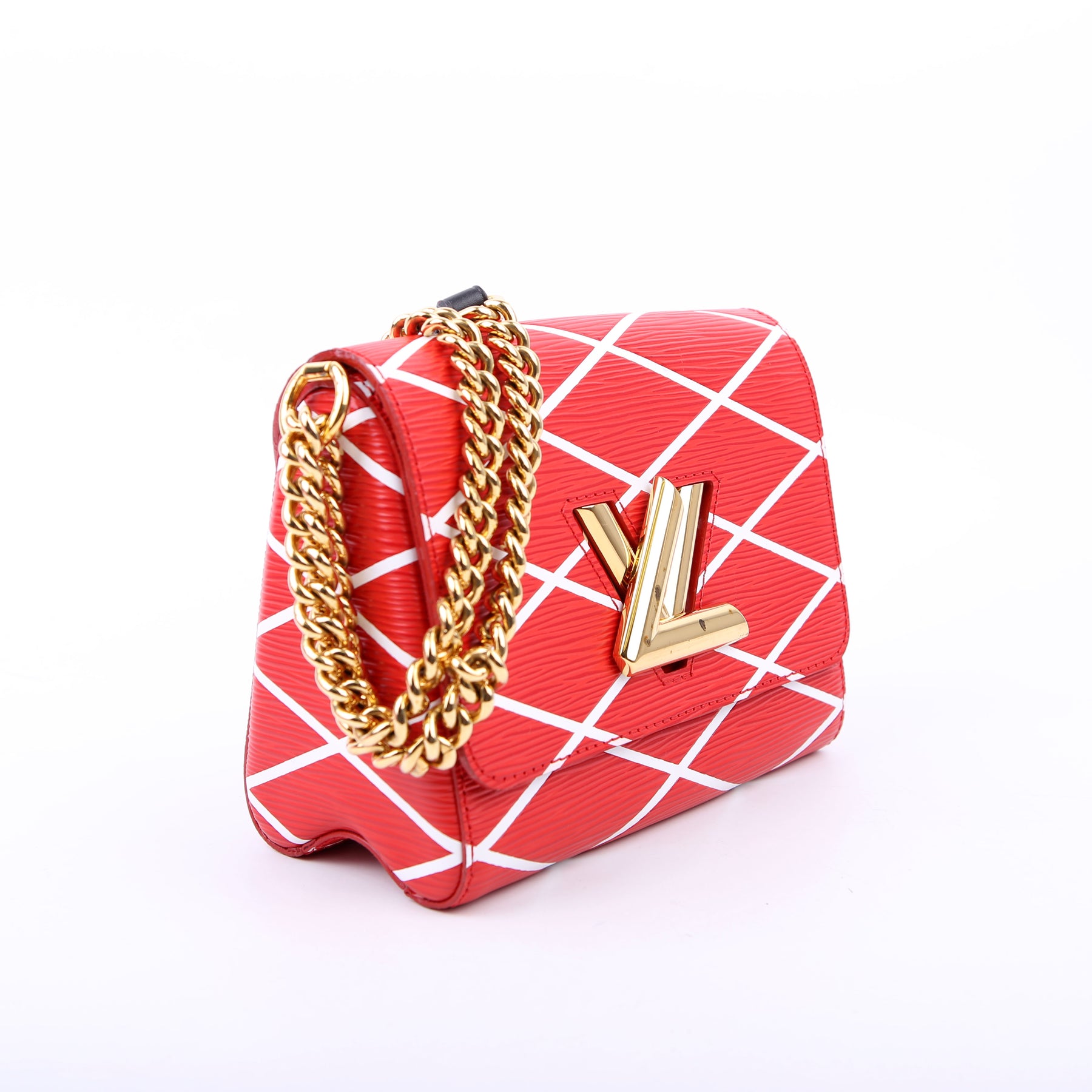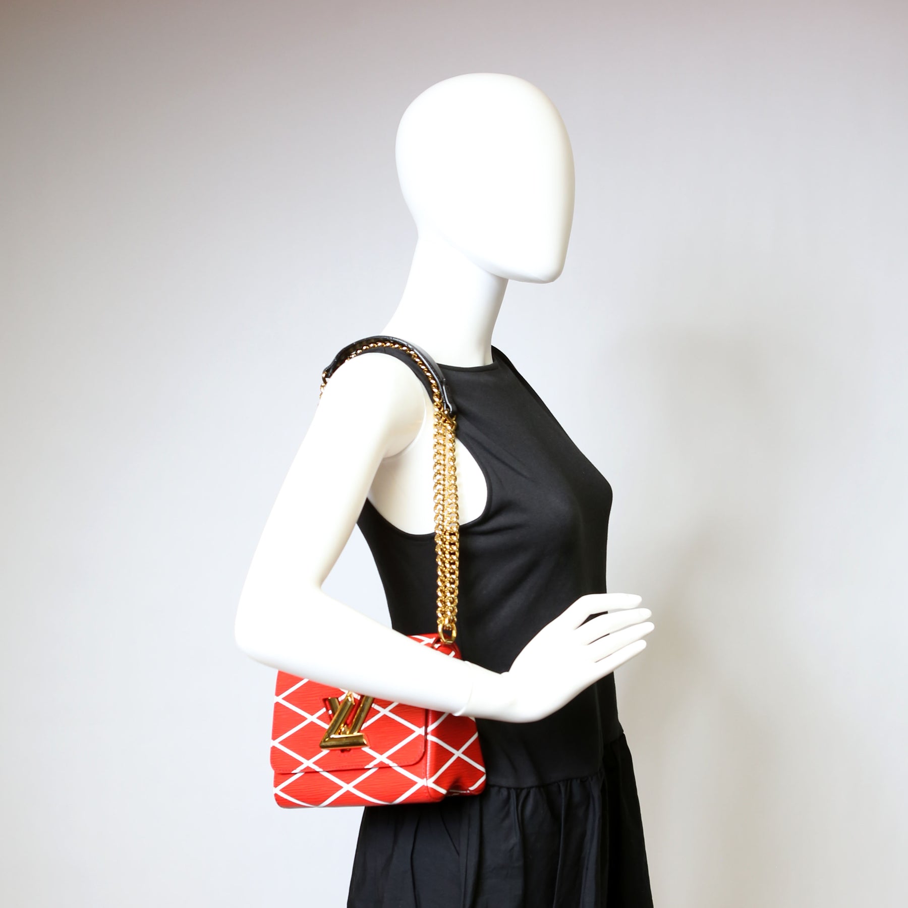 This pre-owned Louis Vuitton Malletage Twist MM is guaranteed 100% authentic. The exterior is in the classic Louis Vuitton Epi leather coated canvas.