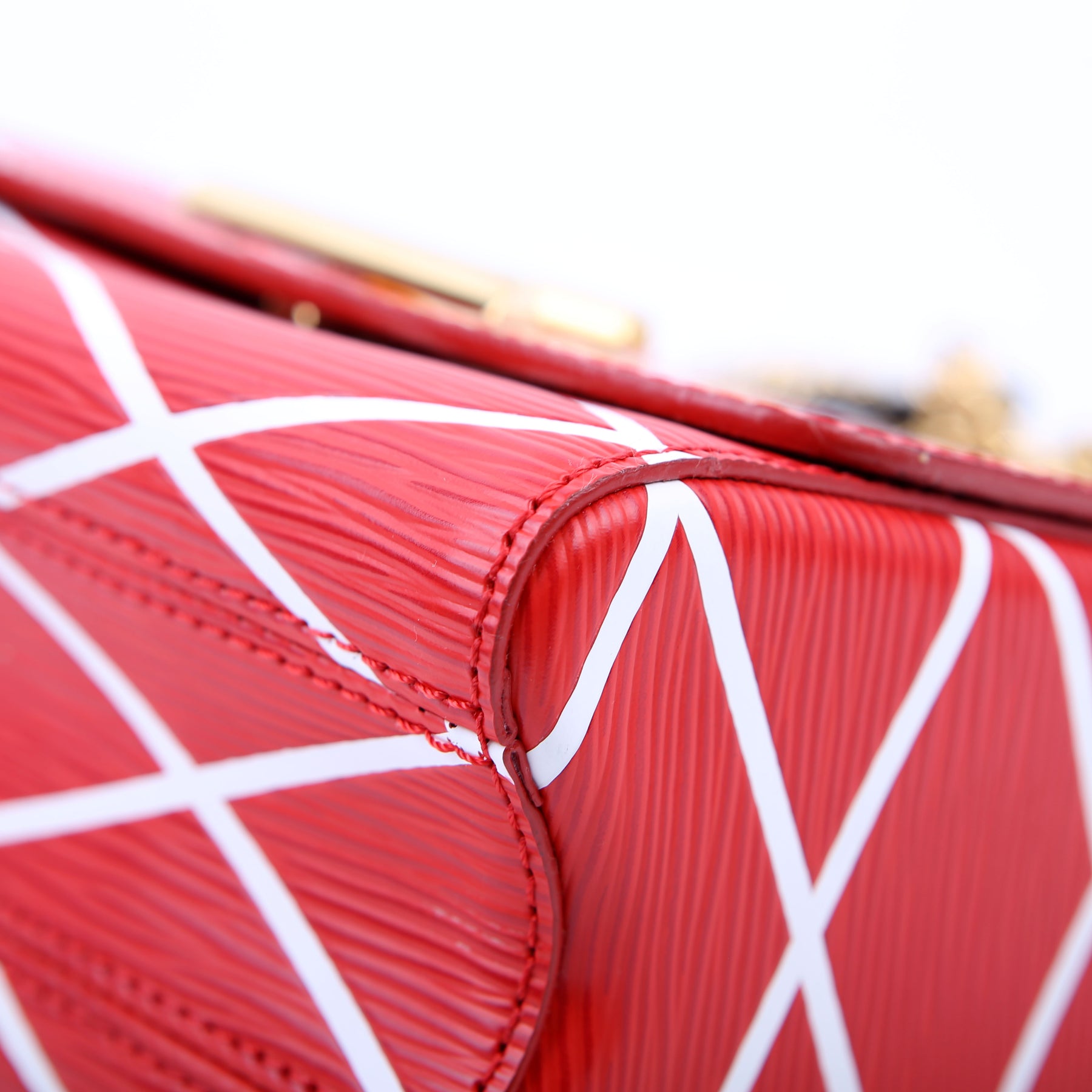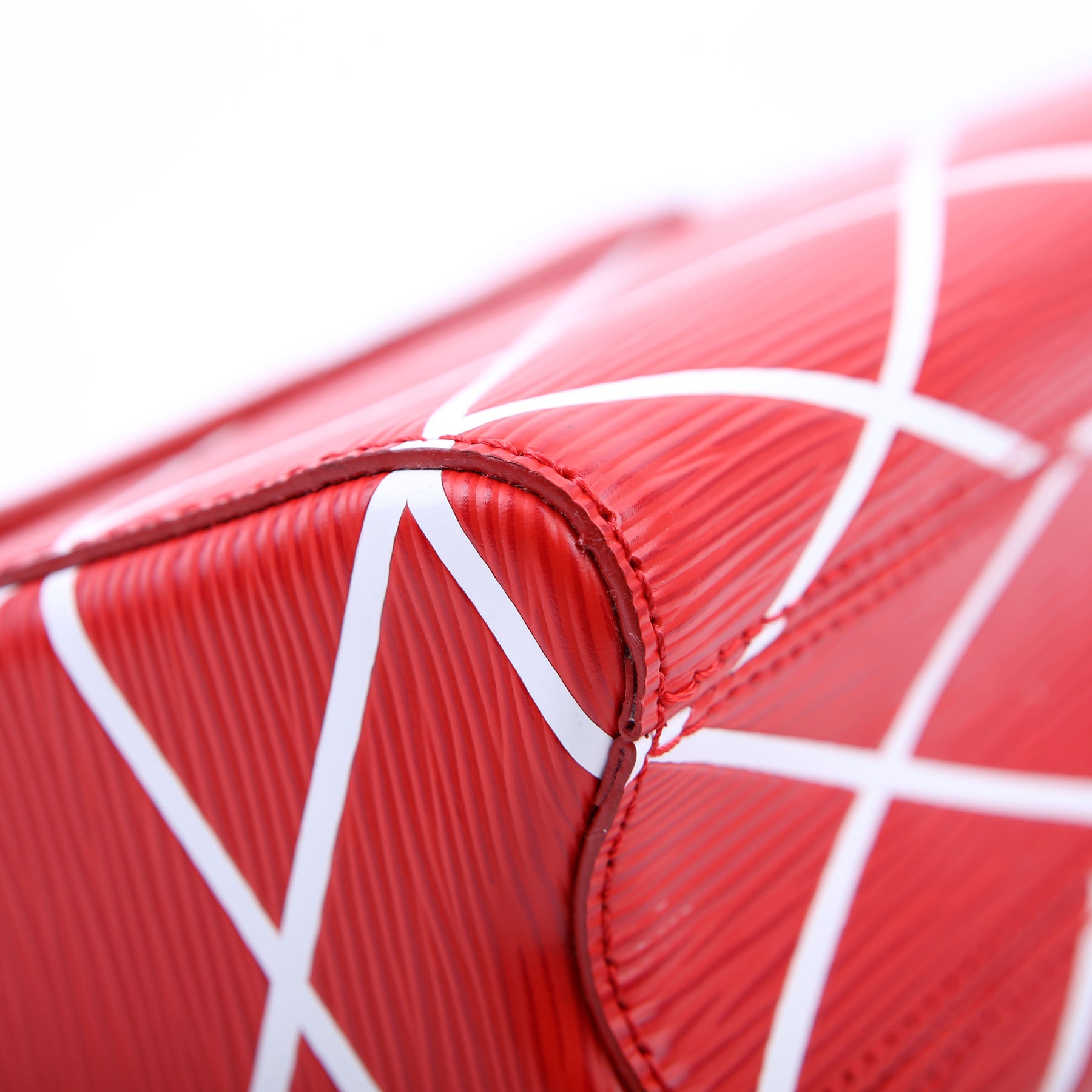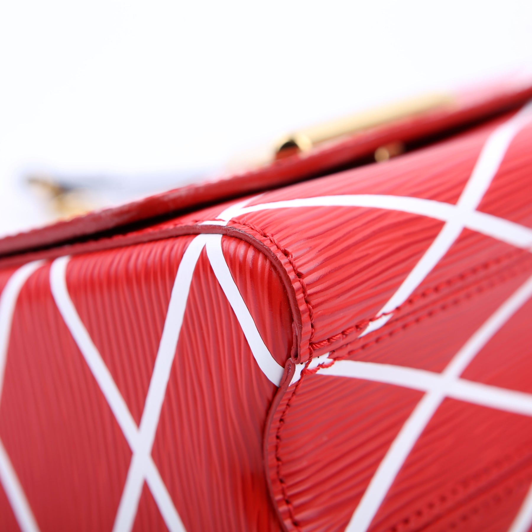 This pre-owned Louis Vuitton Malletage Twist MM is guaranteed 100% authentic. The exterior is in the classic Louis Vuitton Epi leather coated canvas.