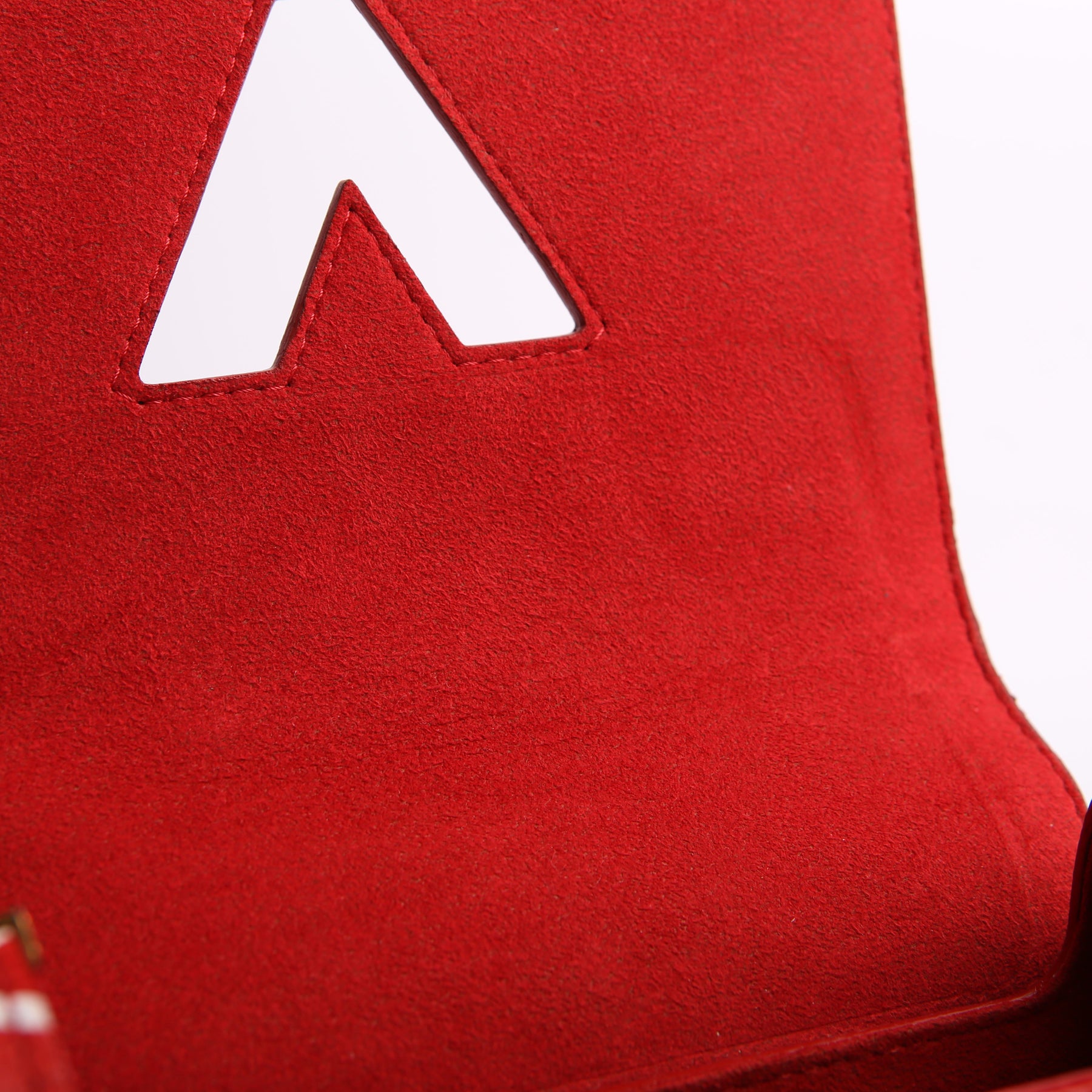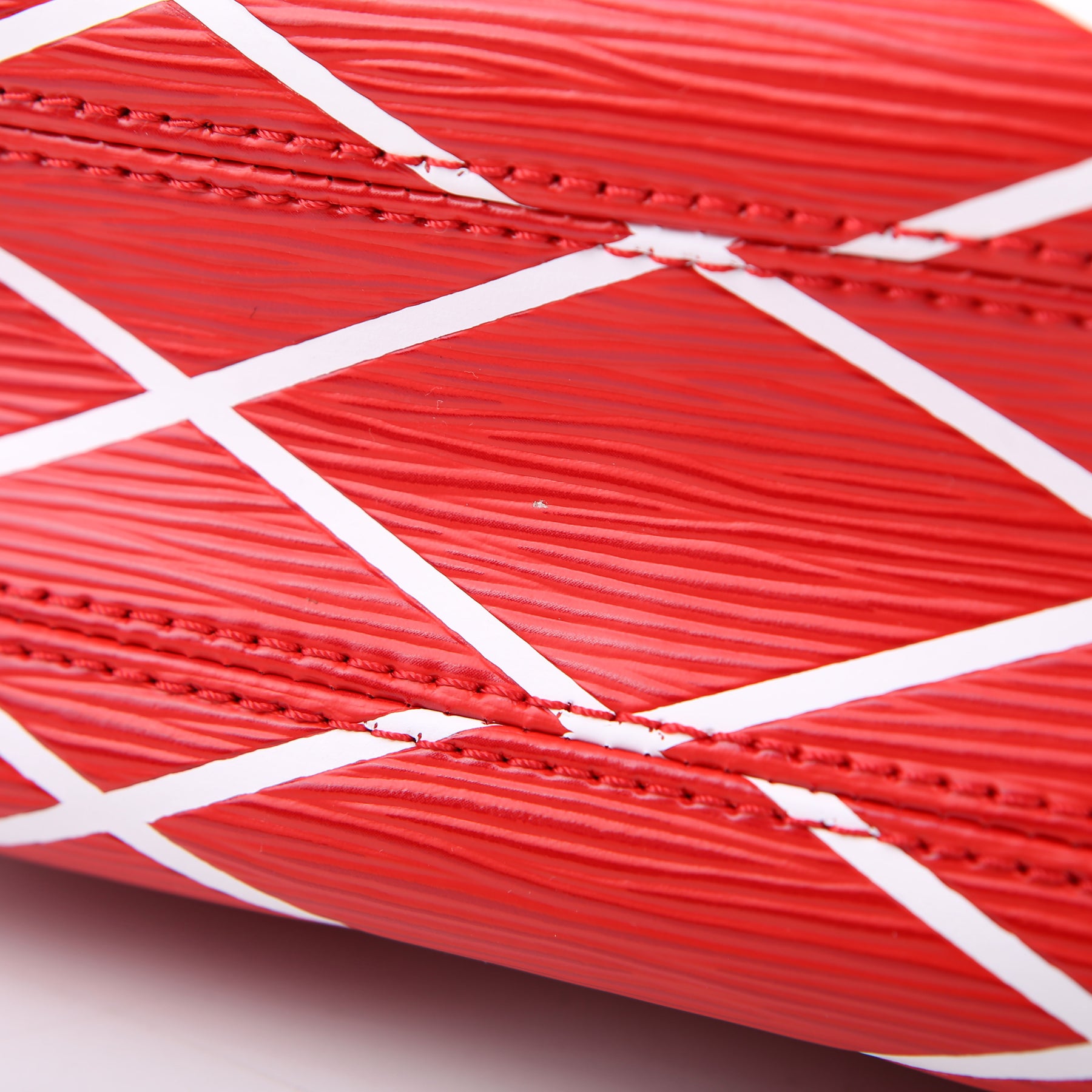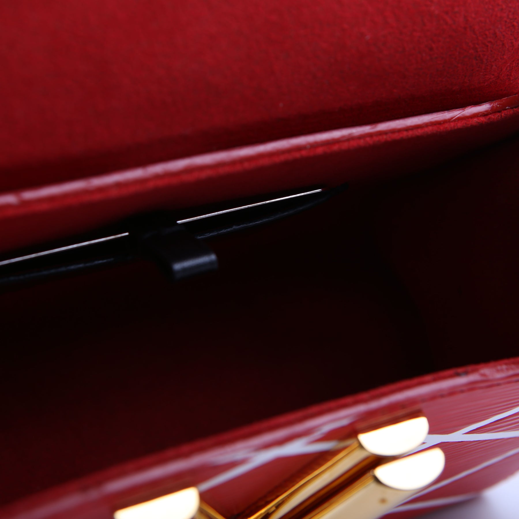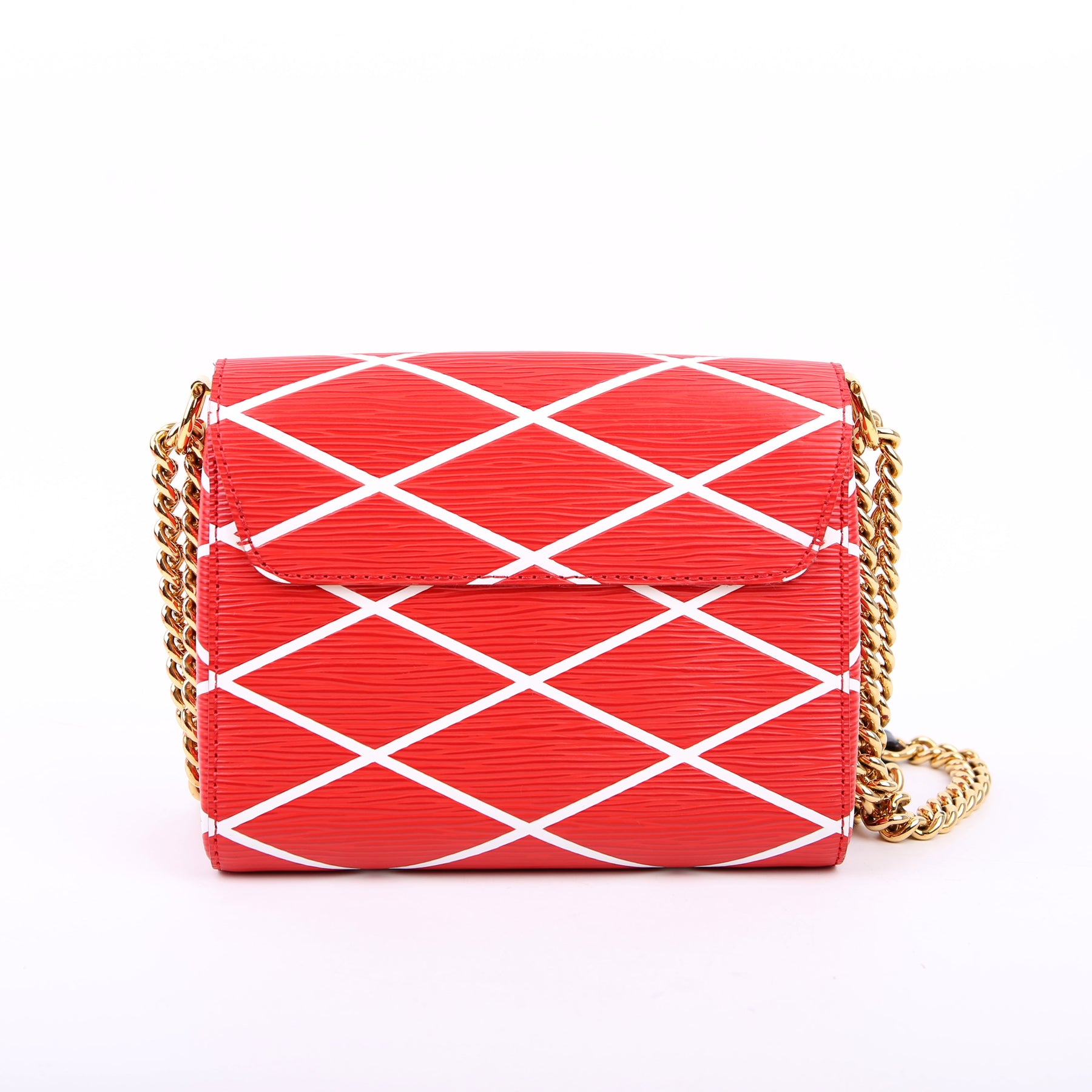 This pre-owned Louis Vuitton Malletage Twist MM is guaranteed 100% authentic. The exterior is in the classic Louis Vuitton Epi leather coated canvas.