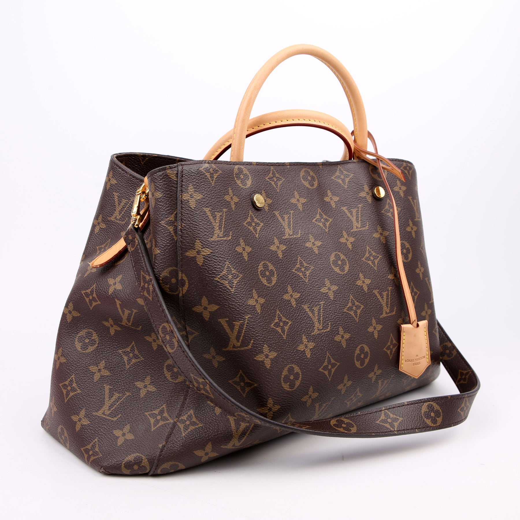 This pre-owned Louis Vuitton Montaigne GM is guaranteed 100% authentic. The exterior is in the classic Louis Vuitton Monogram Leather.