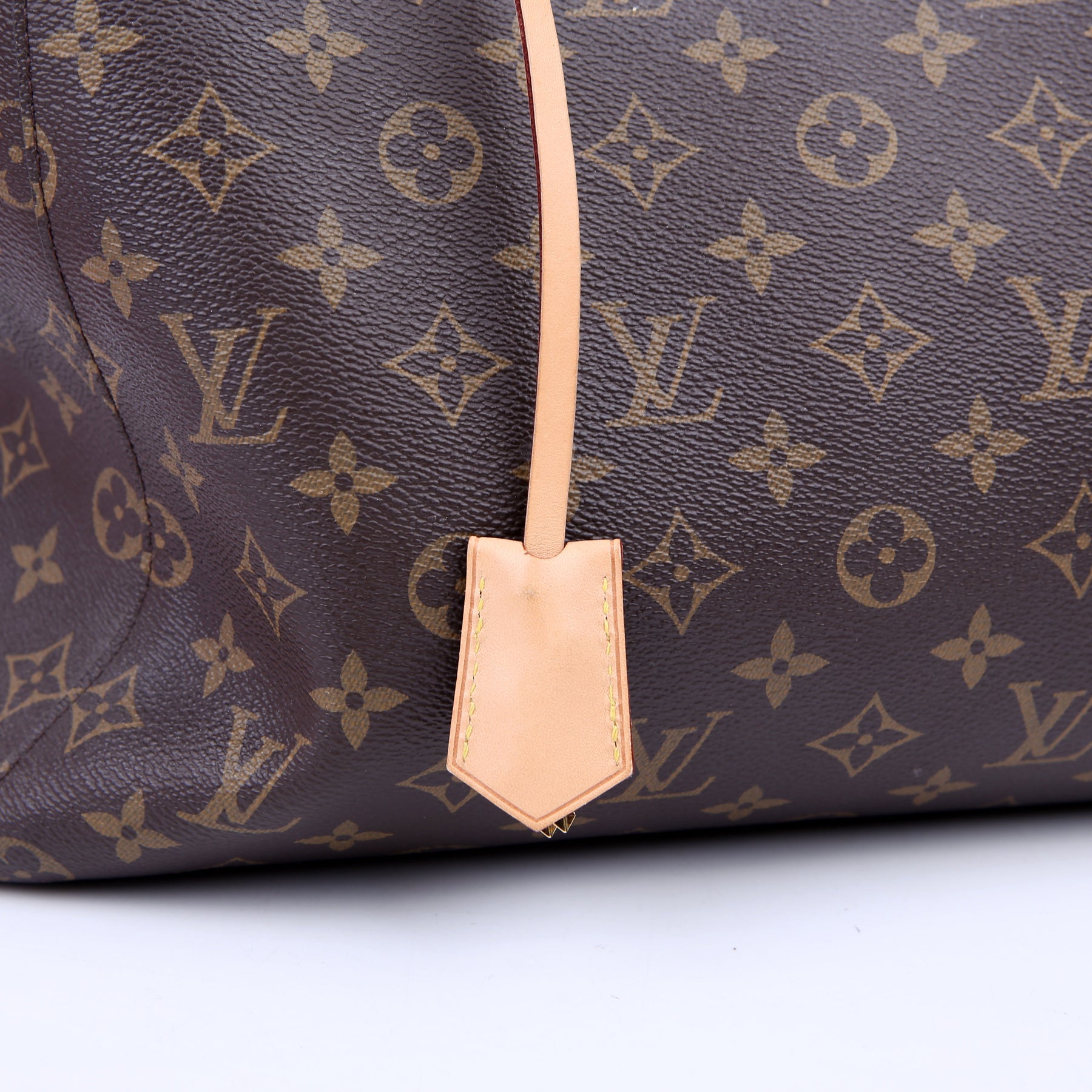 Handles: The leather handles have minor wear and discoloration. The leather key chain shows minor wear and discoloration.