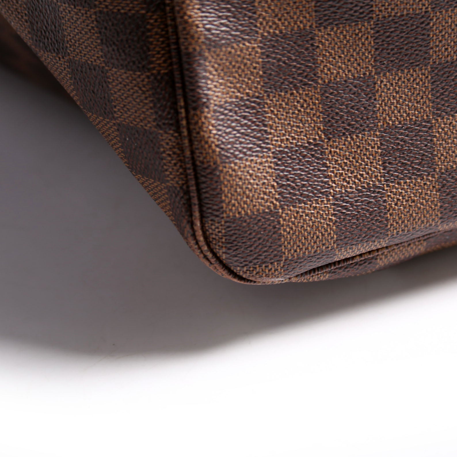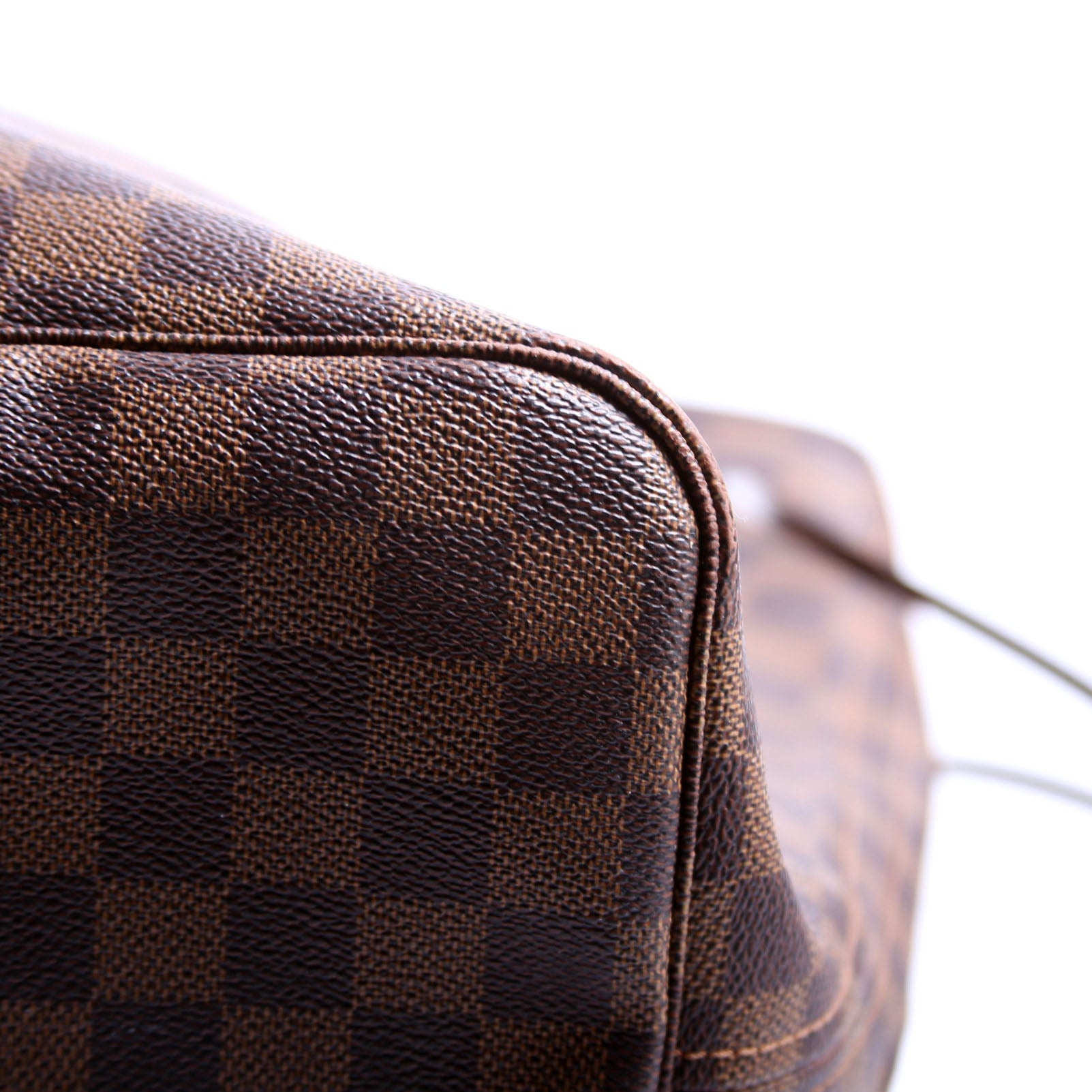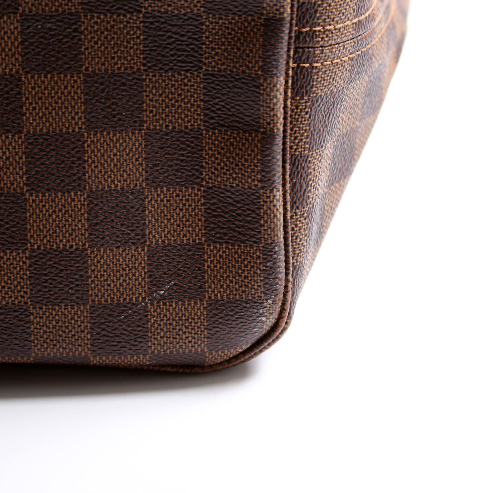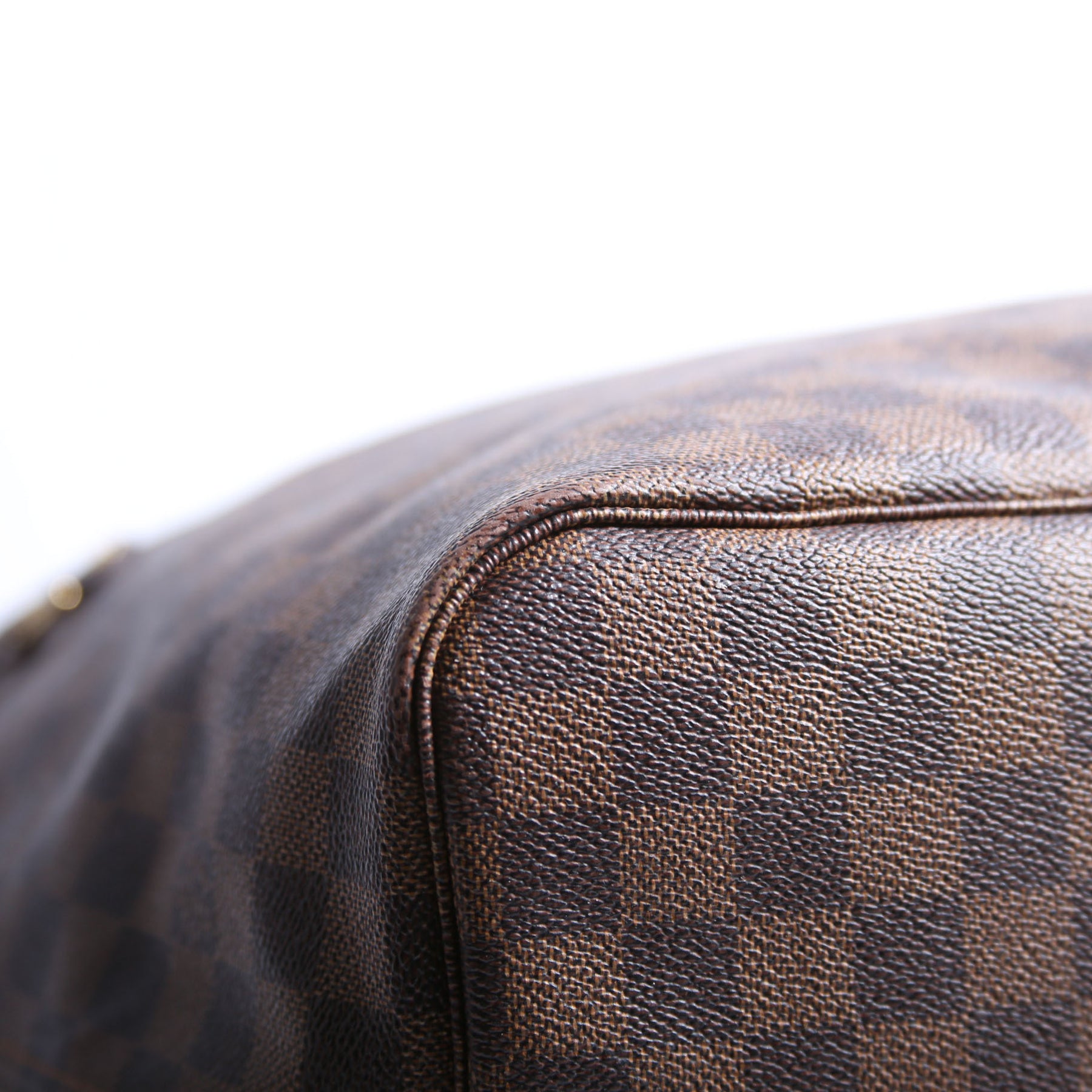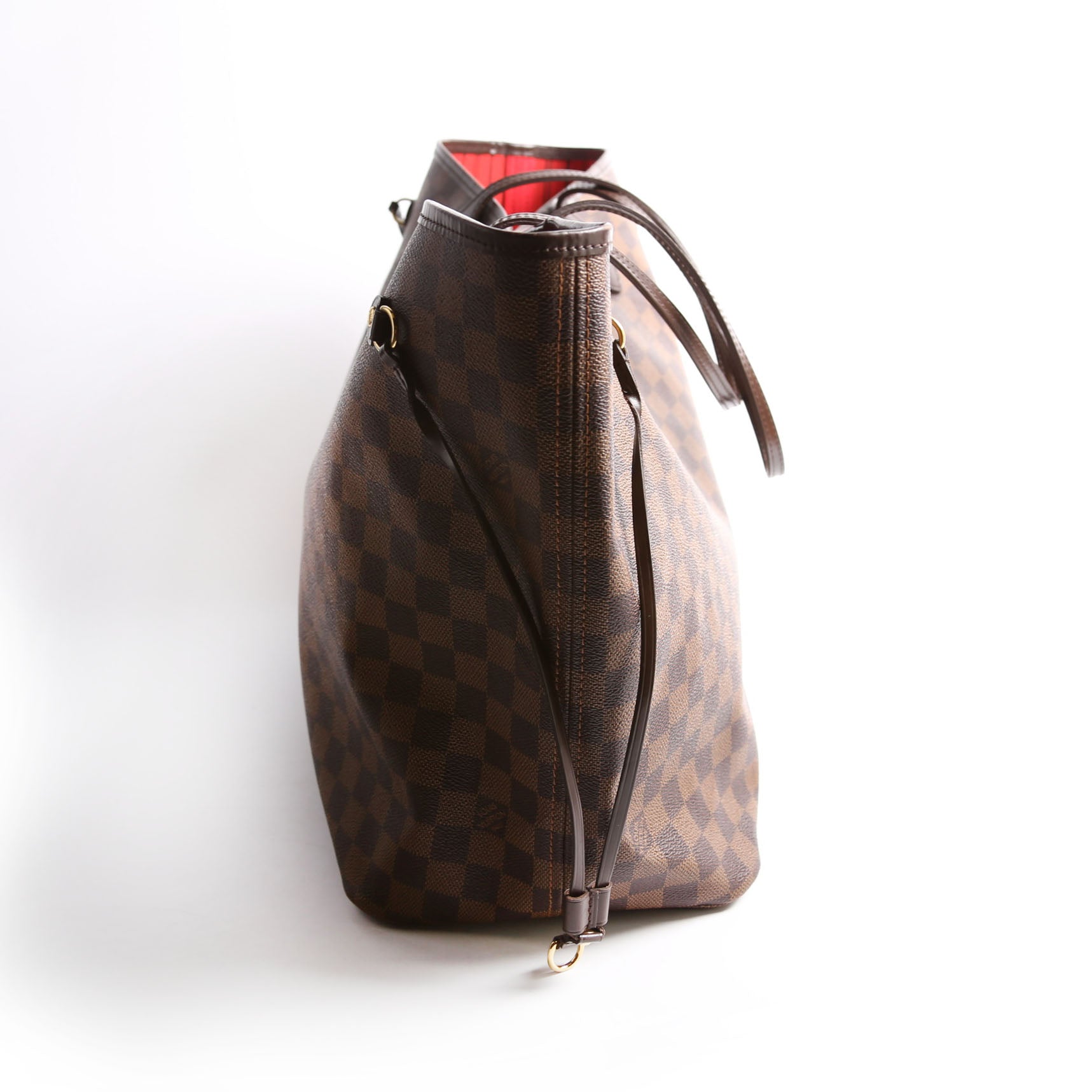 These pre-owned Louis Vuitton Neverfull GM are guaranteed 100% authentic. The exterior is in the classic Louis Vuitton Damier Ebene coated canvas.