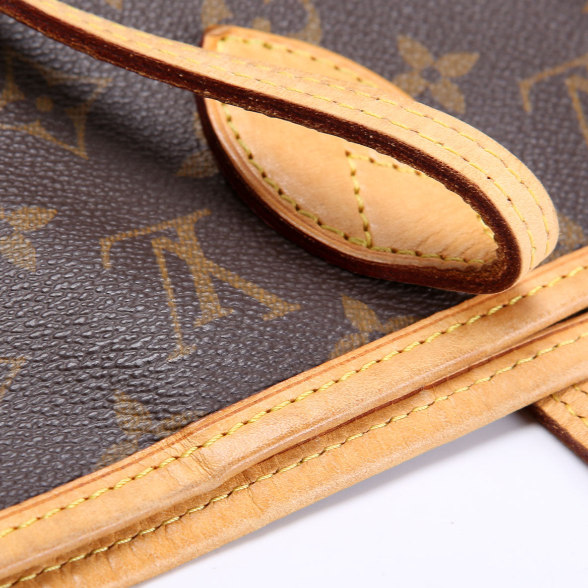 This pre-owned Louis Vuitton Neverfull MM is guaranteed 100% authentic. The exterior is in the classic Louis Vuitton Monogram coated canvas.