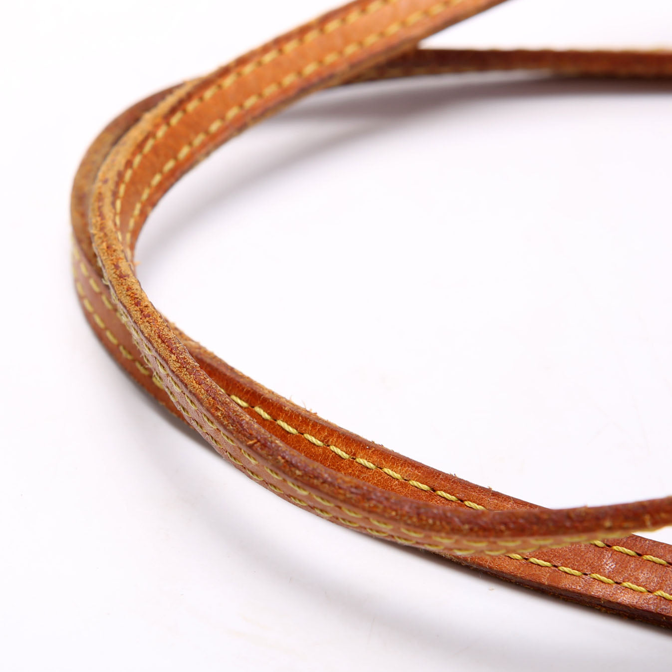 Strap: The leather straps show heavy wear, rubbing, and discoloration throughout.