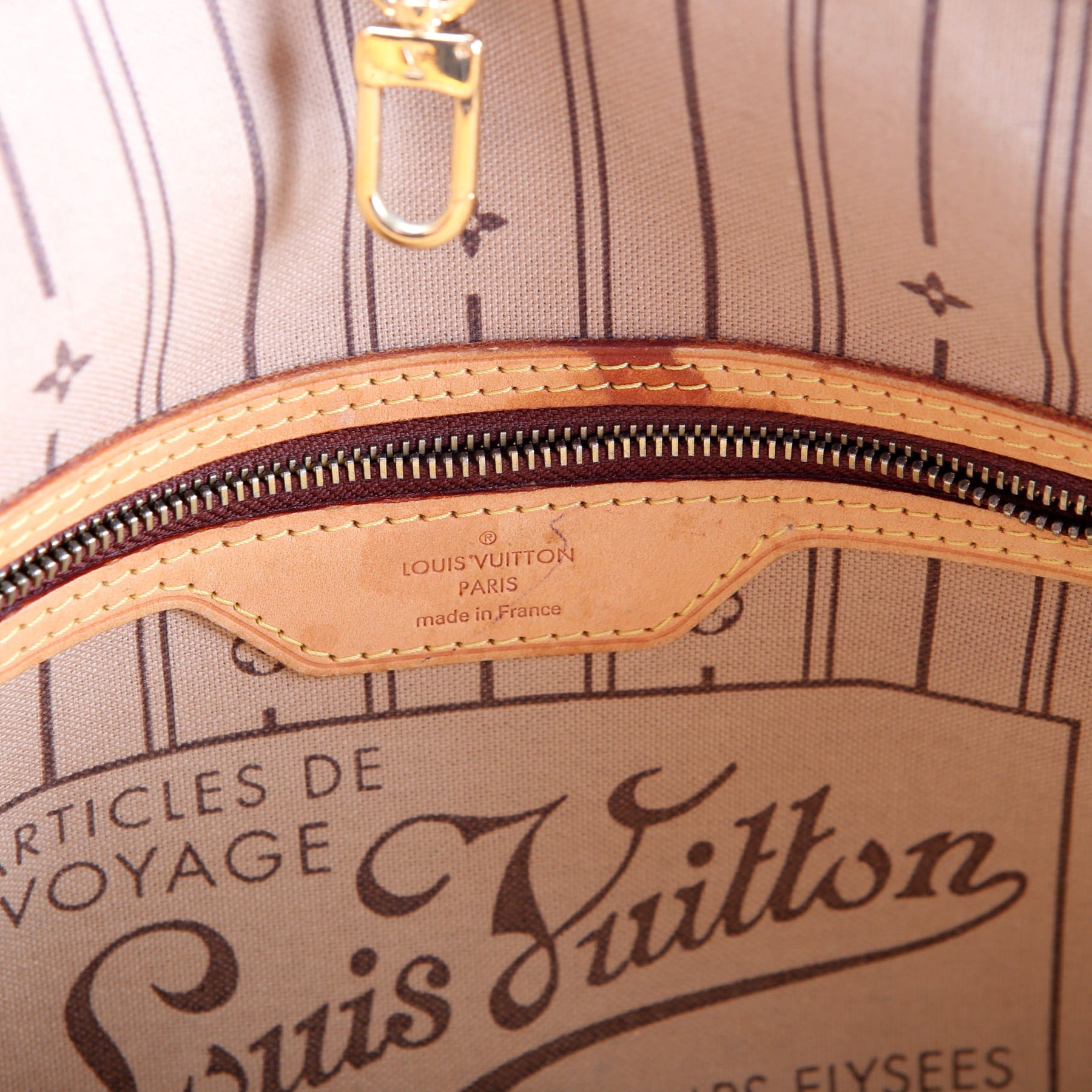 This pre-owned Louis Vuitton Neverfull PM is guaranteed 100% authentic. The exterior is in the classic Louis Vuitton Monogram coated canvas.