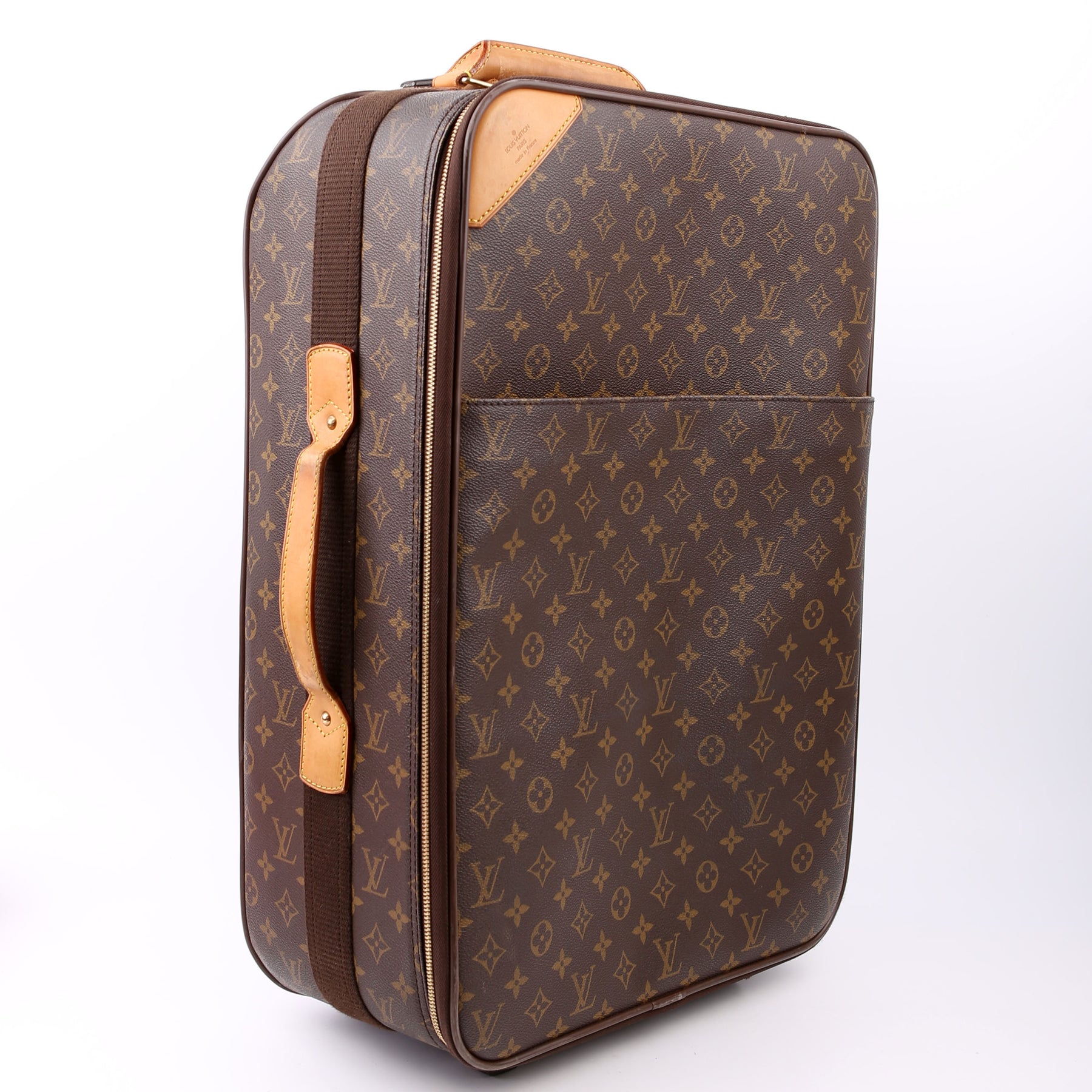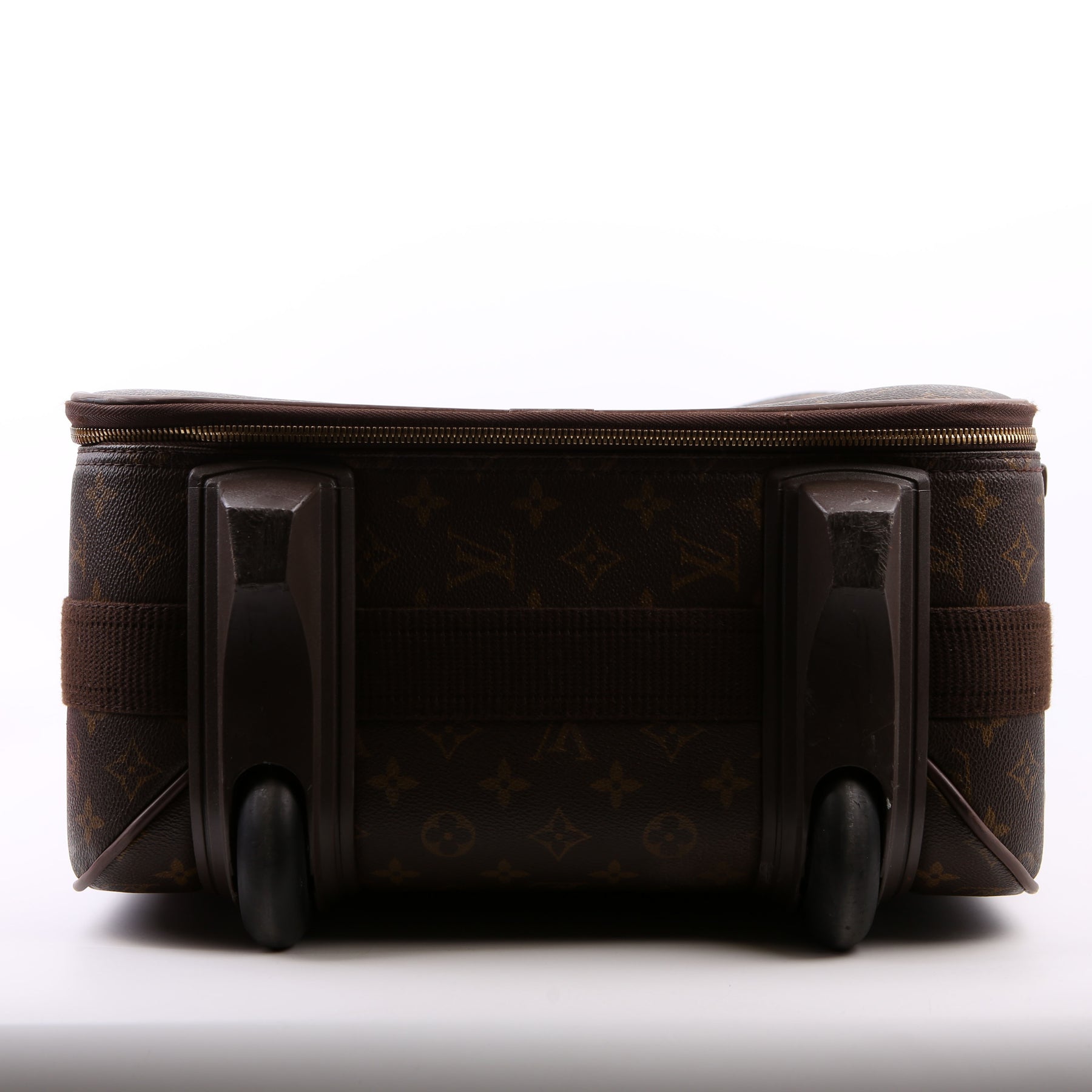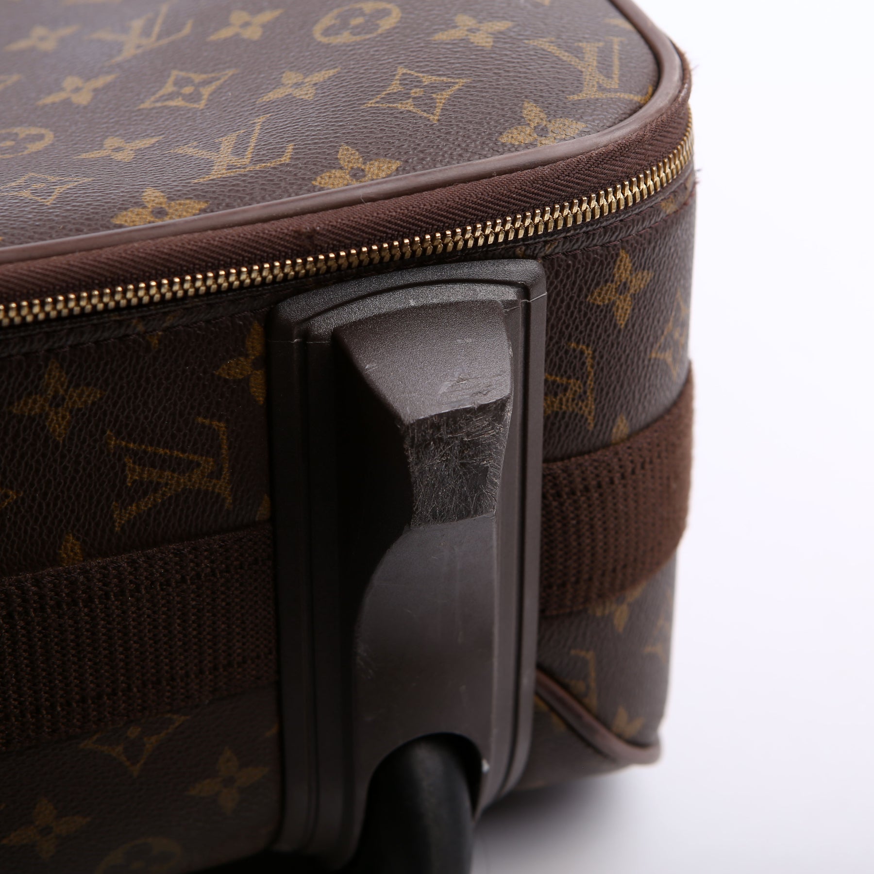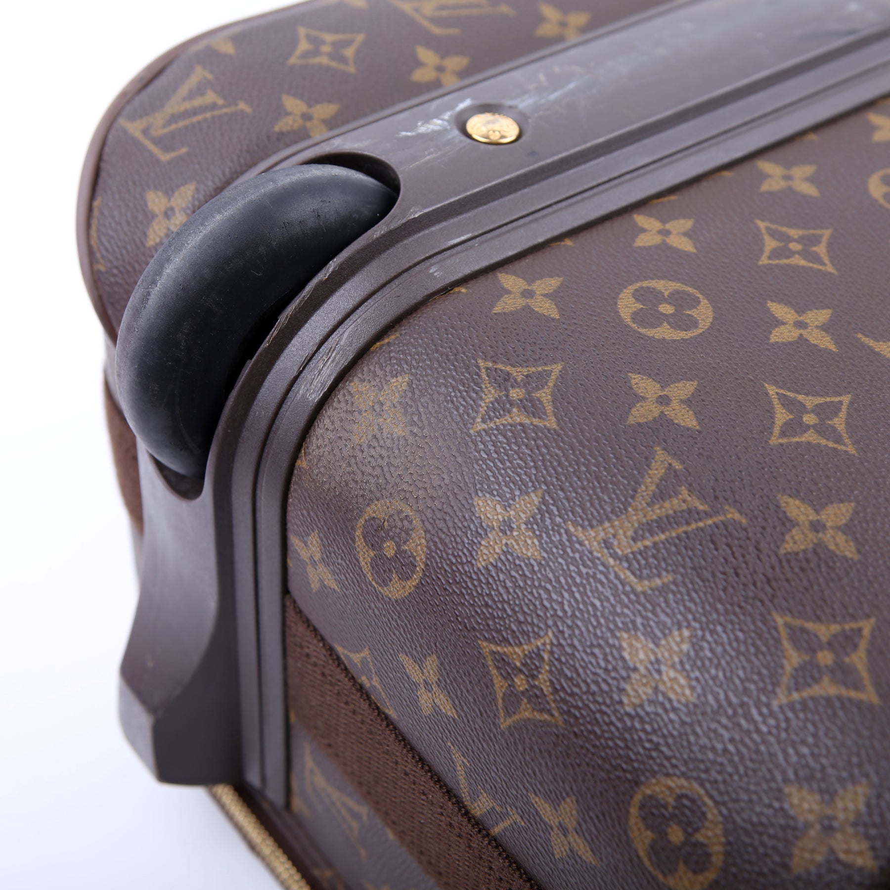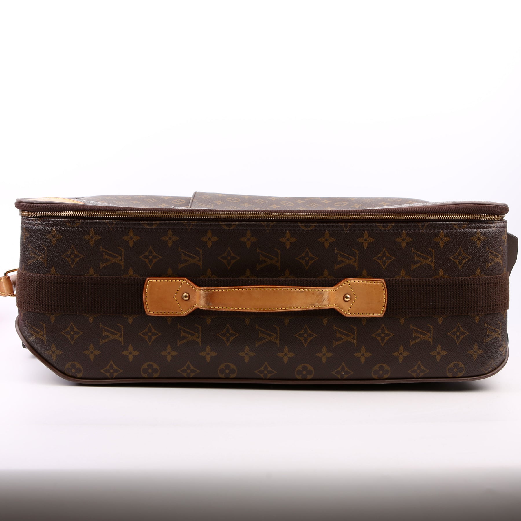 This pre-owned Louis Vuitton Pegase 55 is guaranteed 100% authentic. The exterior is in the classic Louis Vuitton Monogram coated canvas.