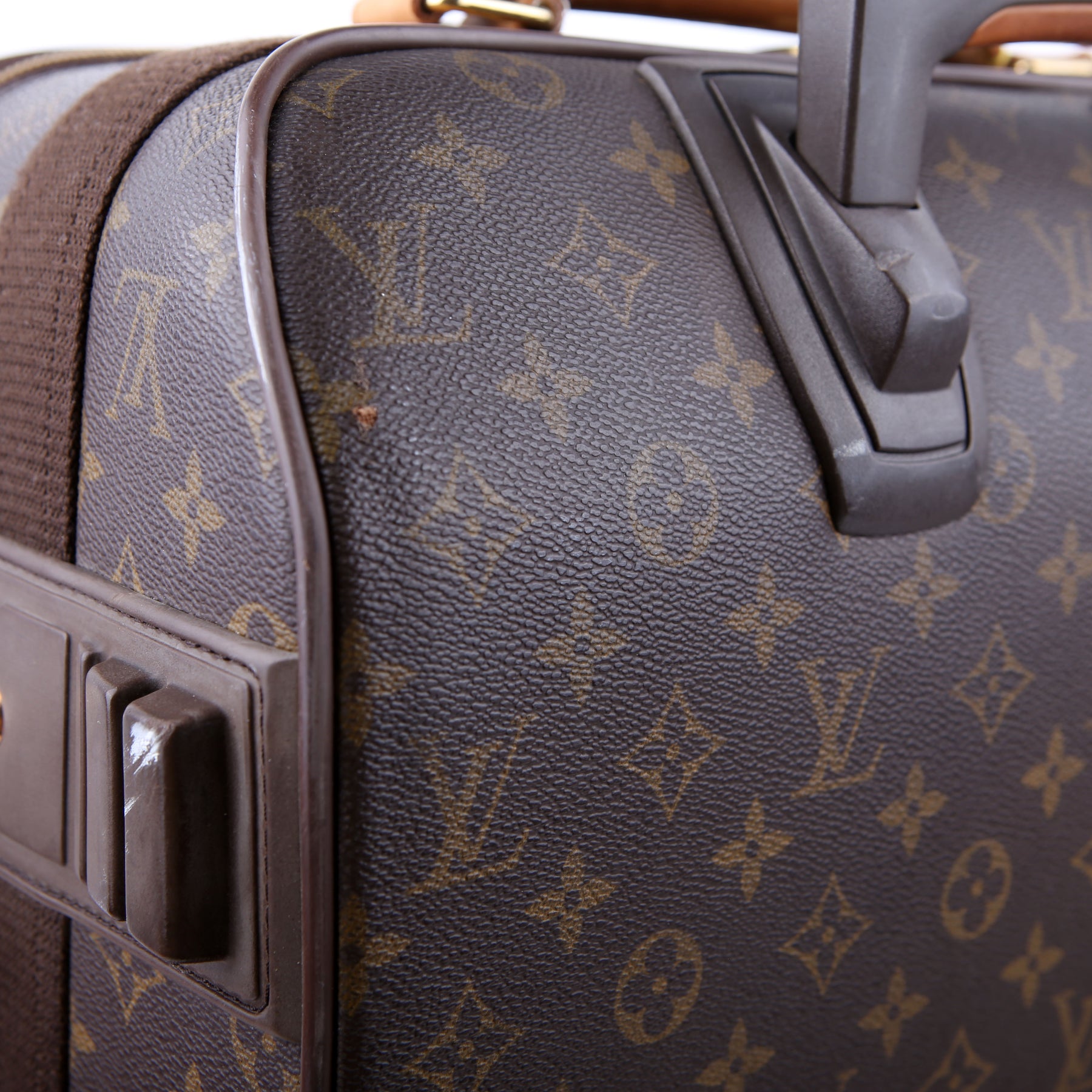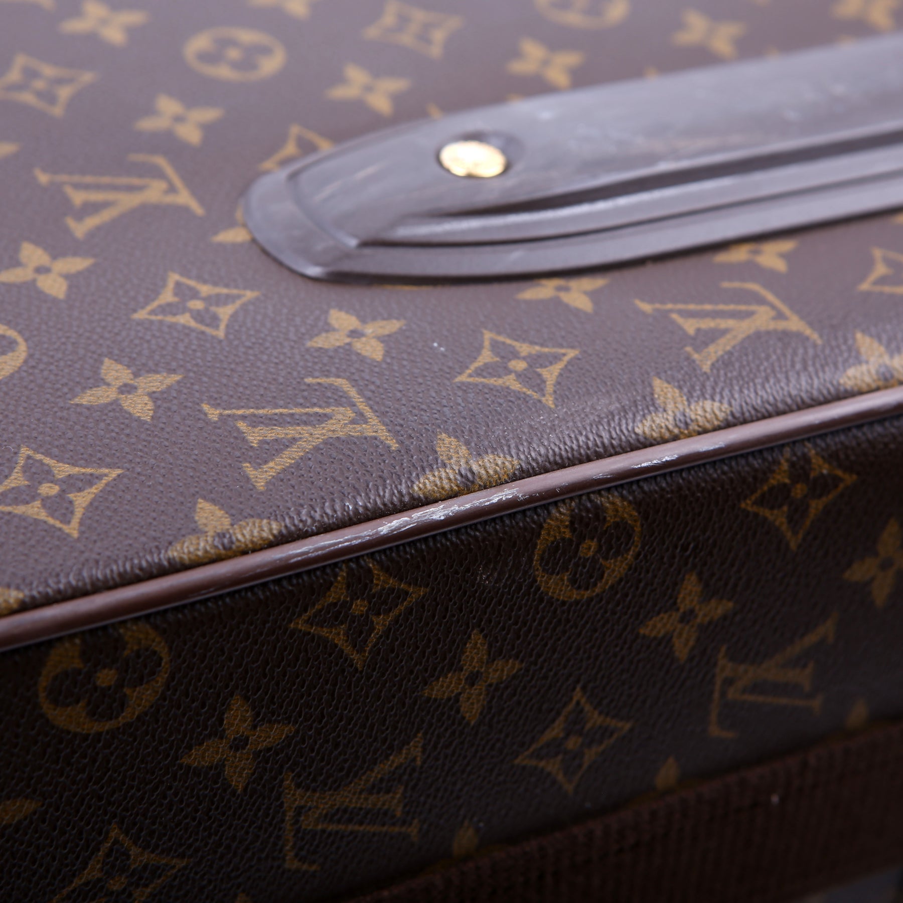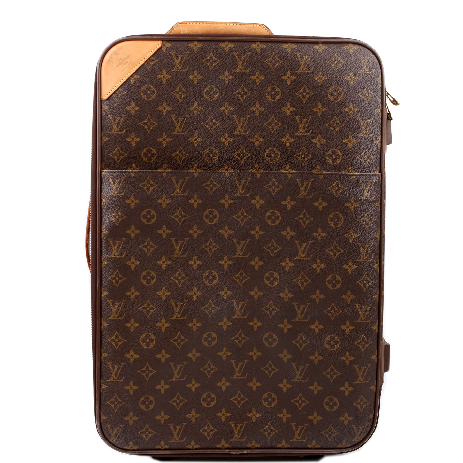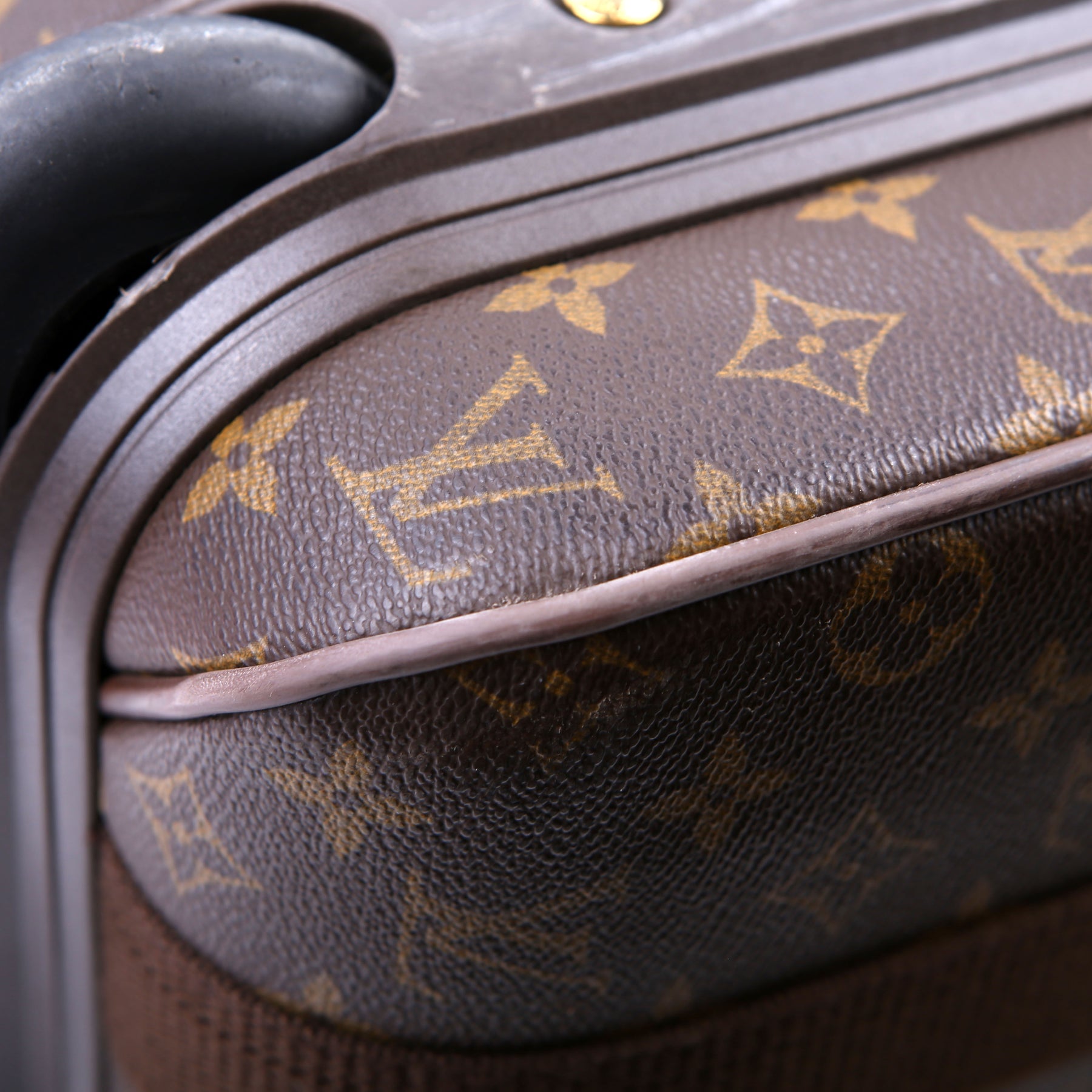 This pre-owned Louis Vuitton Pegase 55 is guaranteed 100% authentic. The exterior is in the classic Louis Vuitton Monogram coated canvas.