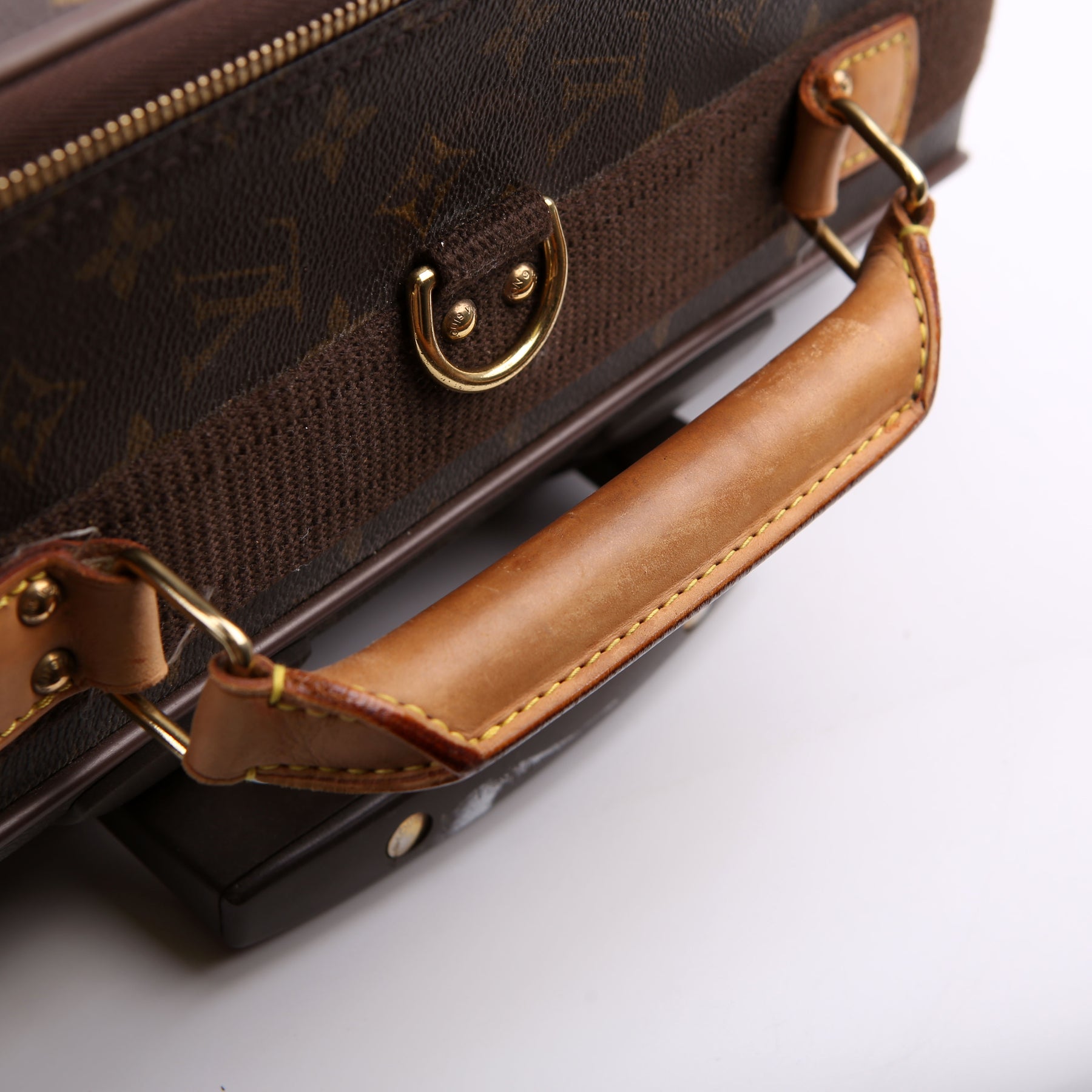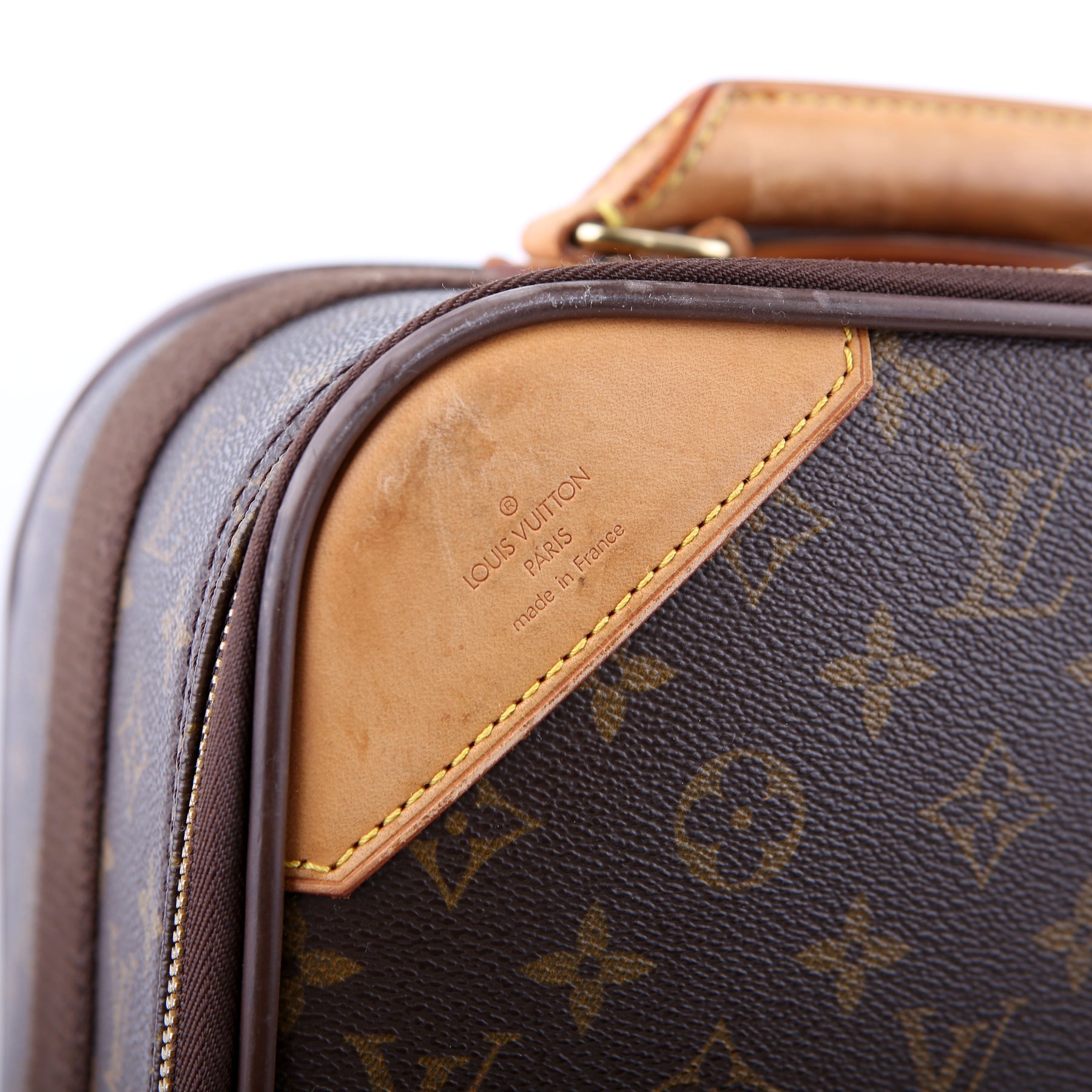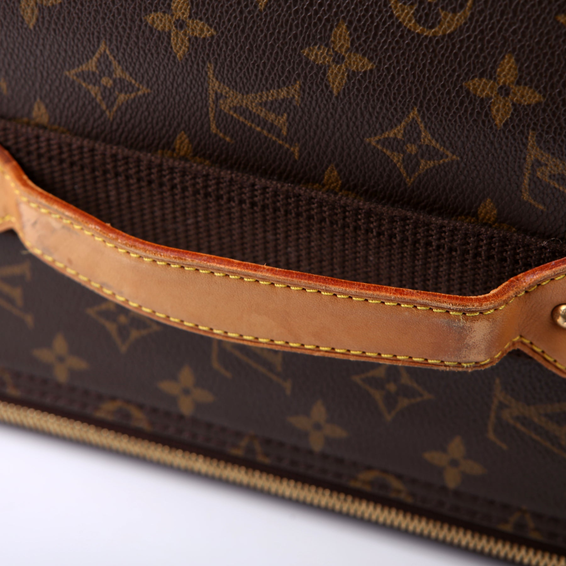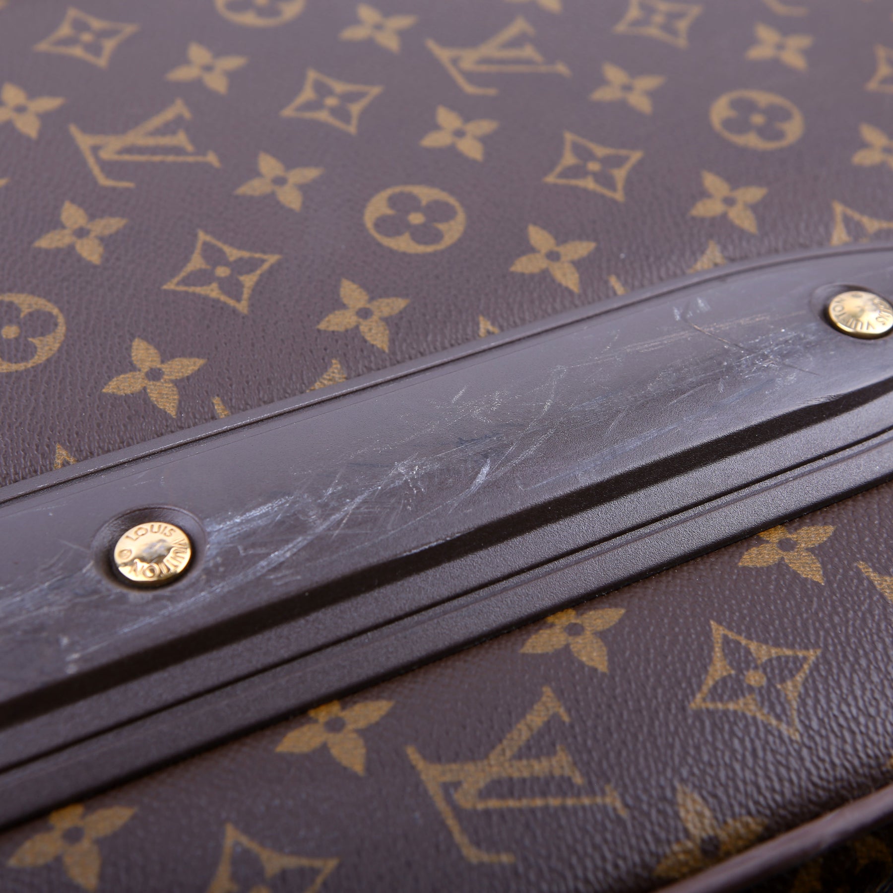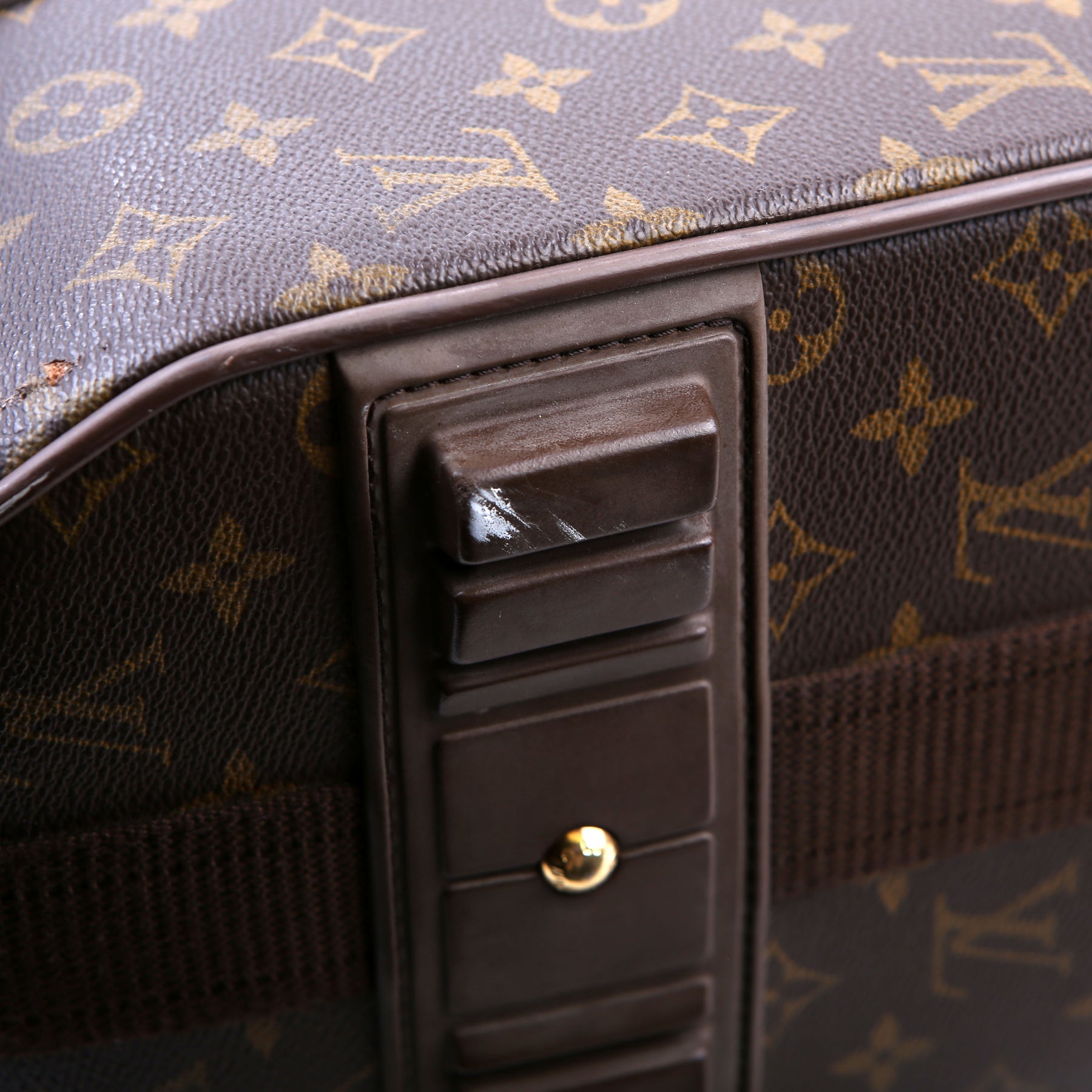 This pre-owned Louis Vuitton Pegase 55 is guaranteed 100% authentic. The exterior is in the classic Louis Vuitton Monogram coated canvas.