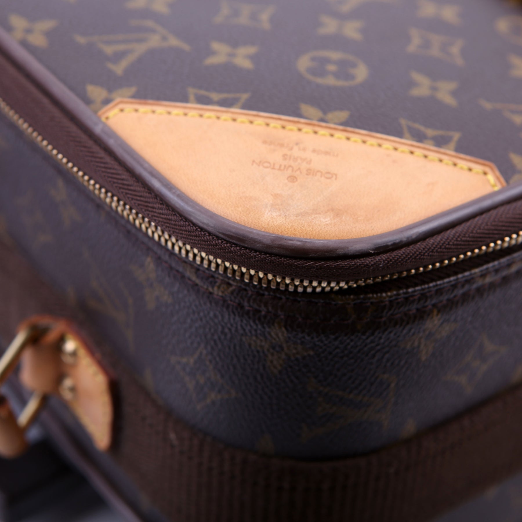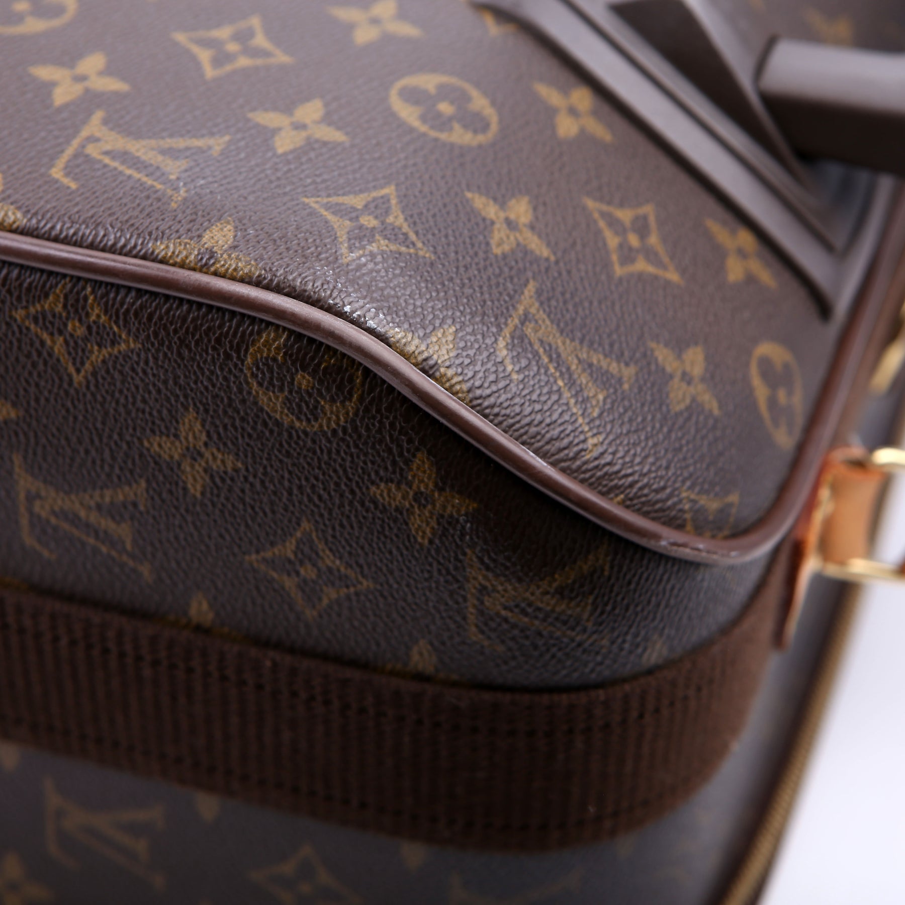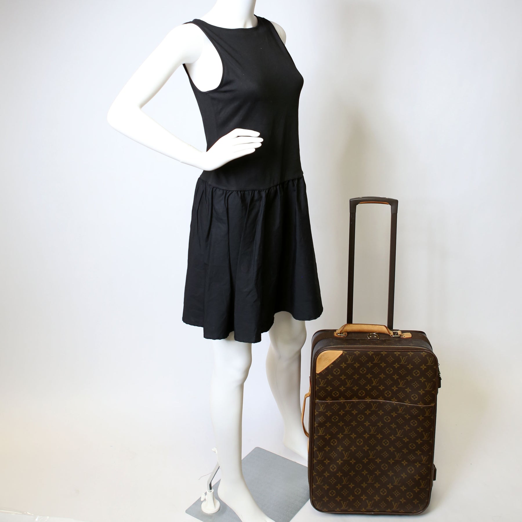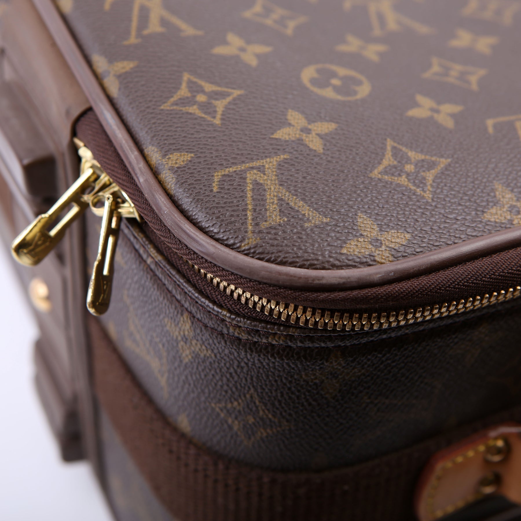 This pre-owned Louis Vuitton Pegase 55 is guaranteed 100% authentic. The exterior is in the classic Louis Vuitton Monogram coated canvas.