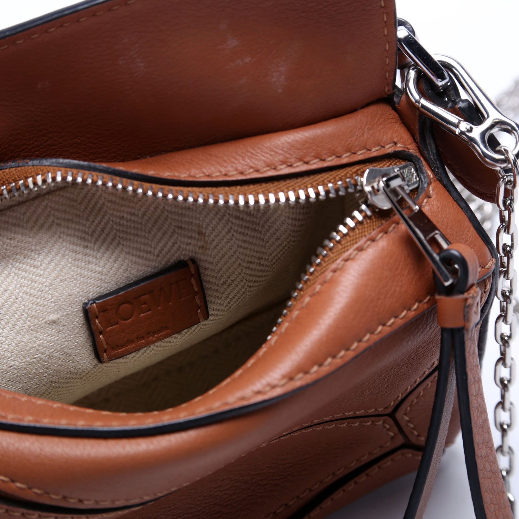 This pre-owned Loewe Puzzle Bag Nano is guaranteed 100% authentic.