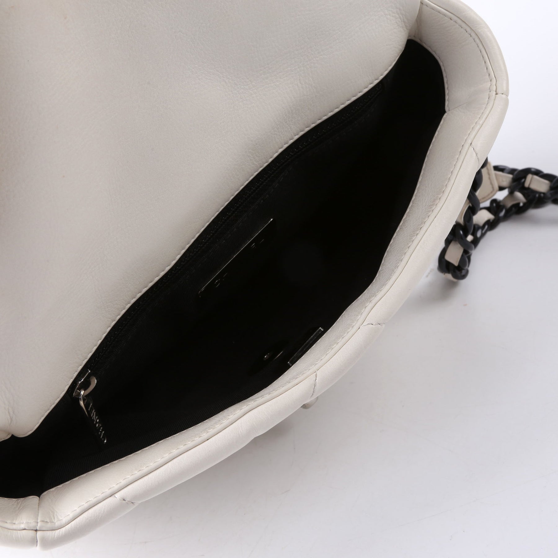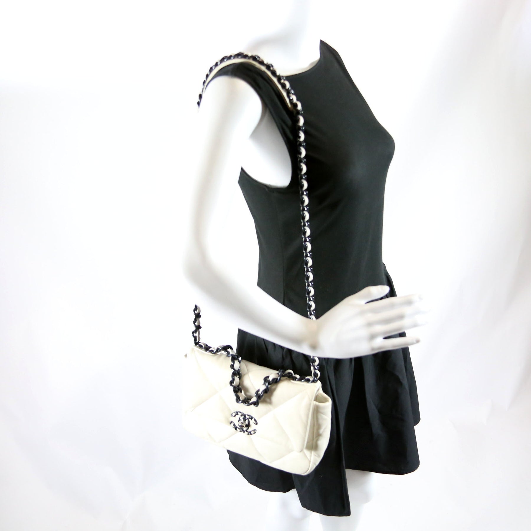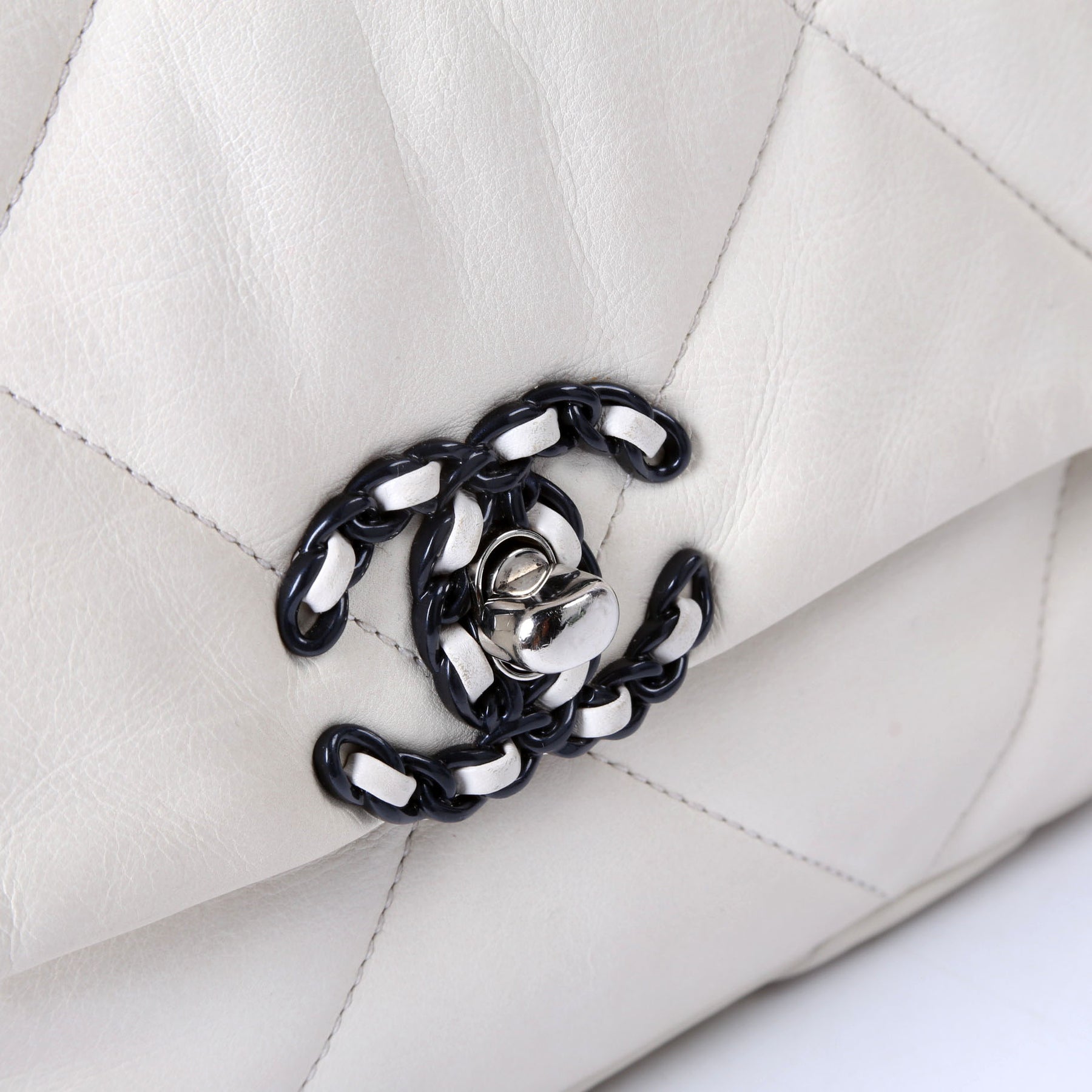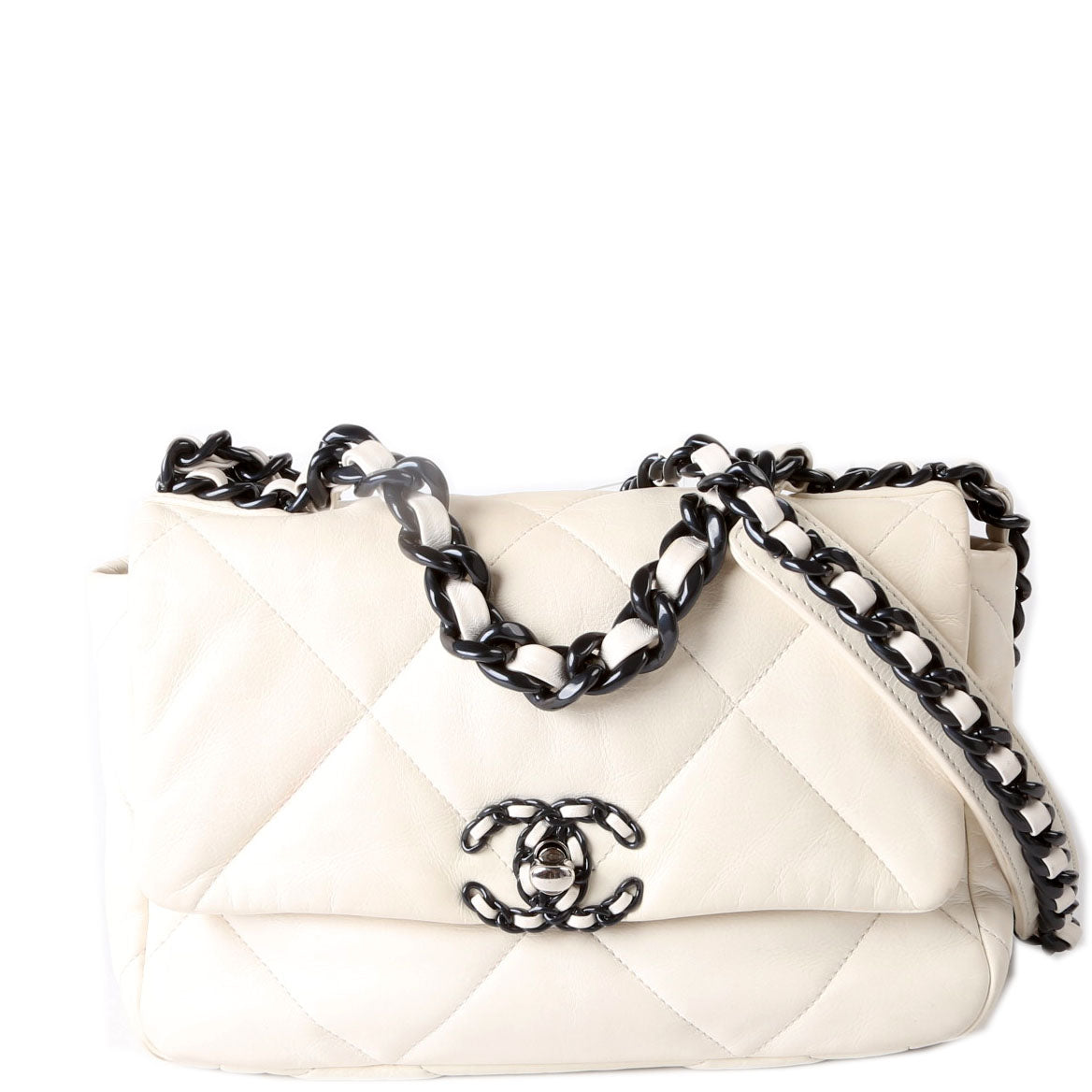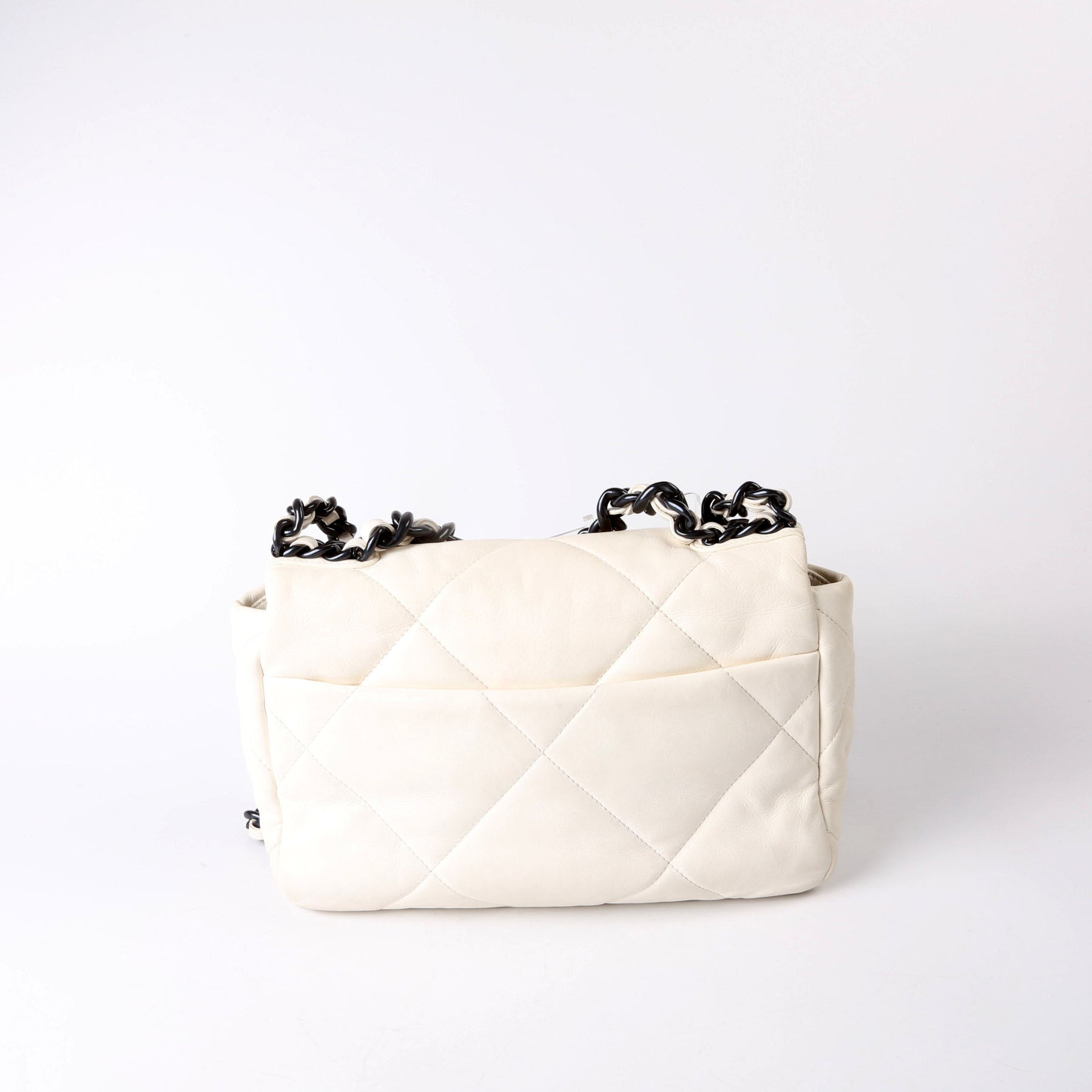 This pre-owned Chanel 19 Small Flap RFID is guaranteed 100% authentic. The exterior is in the classic Chanel Quilted Lambskin leather.