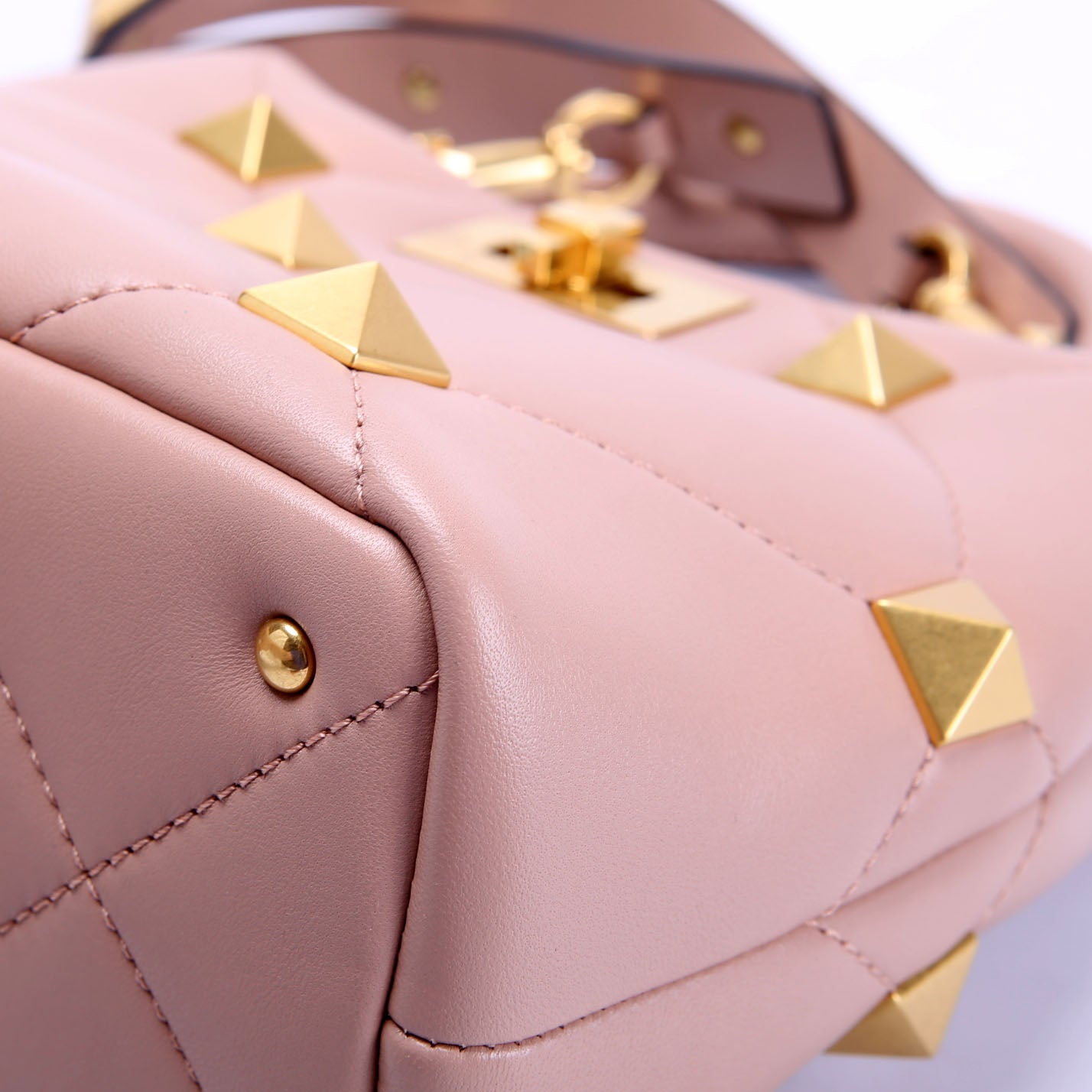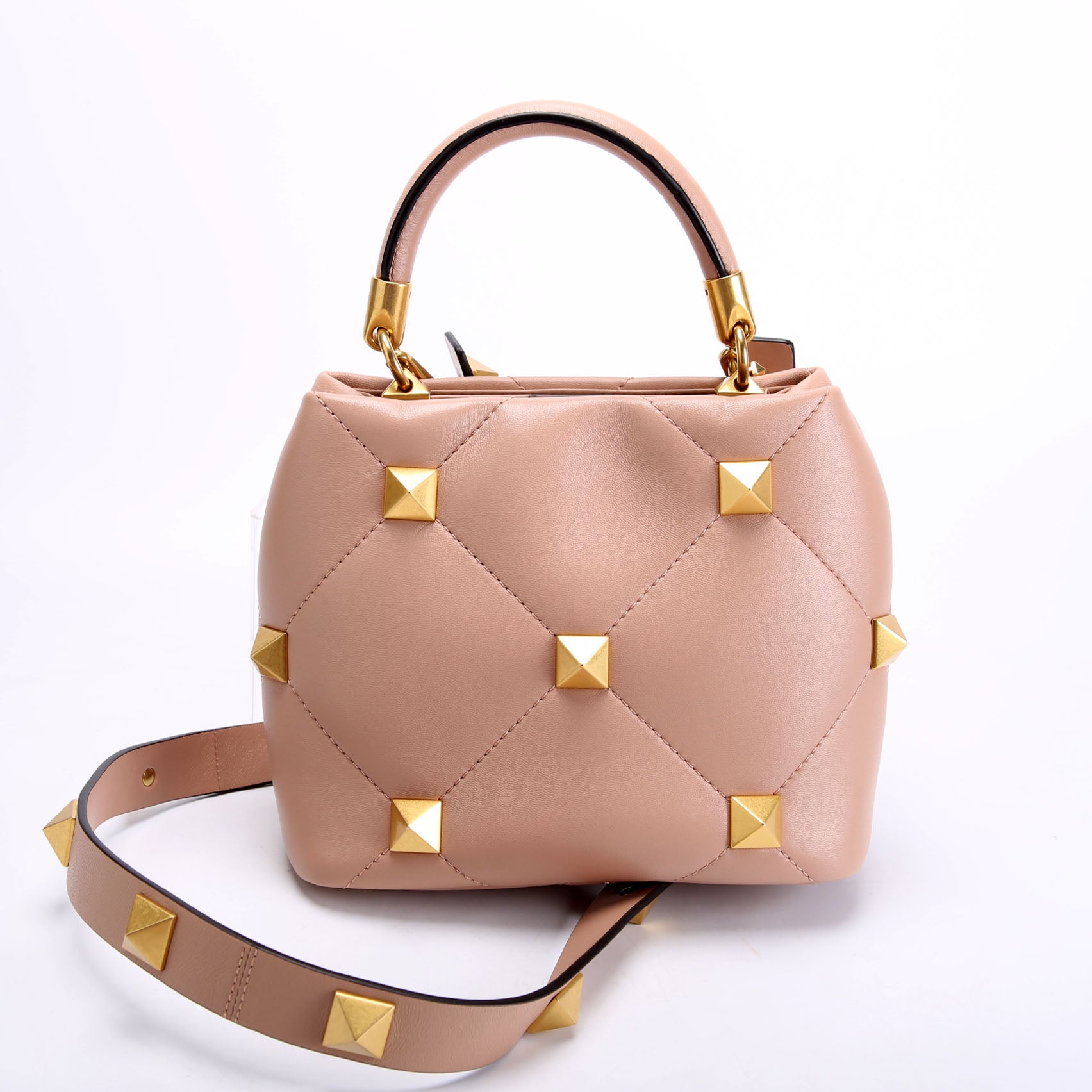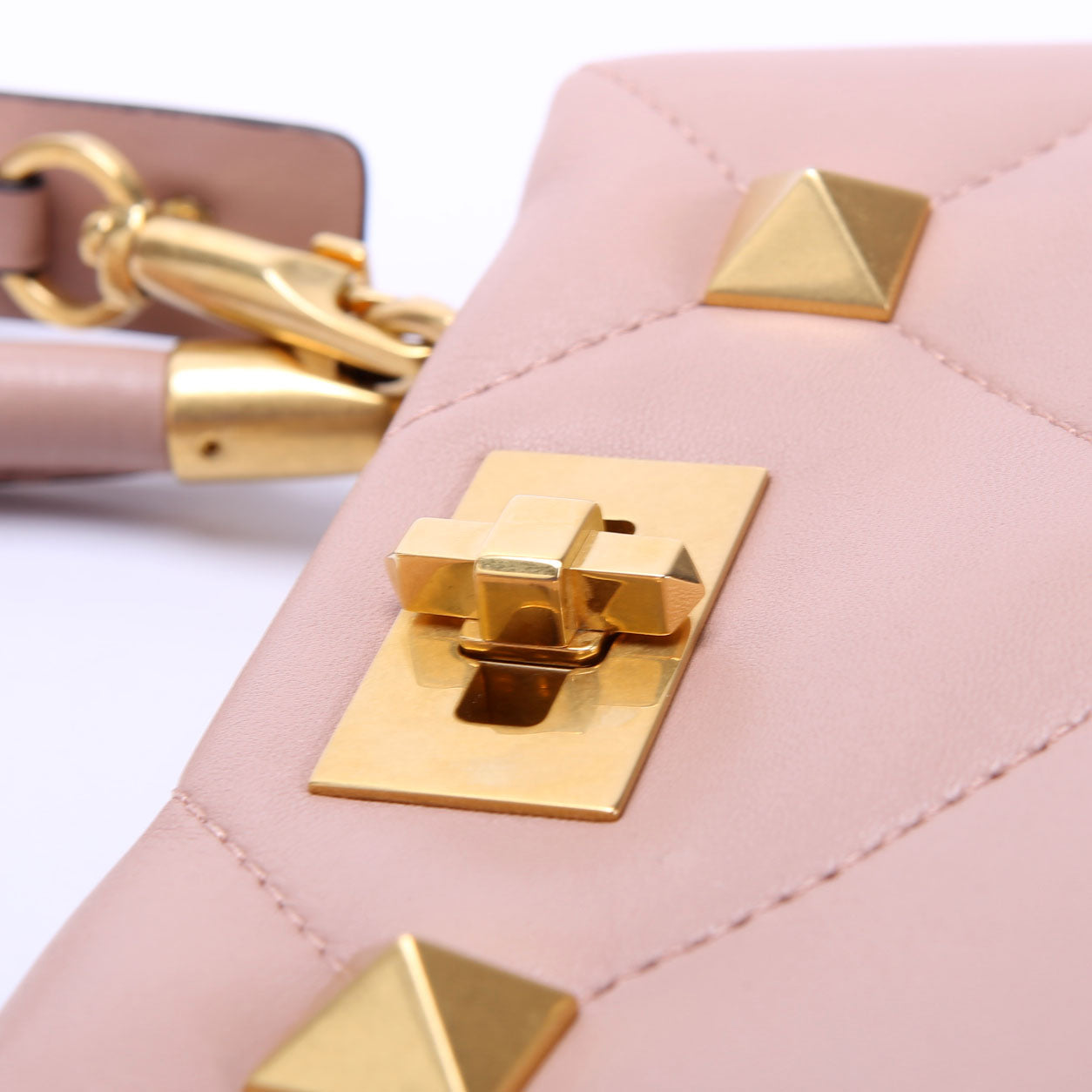 This pre-owned Valentino Roman Stud Top Handle Small is guaranteed 100% authentic.