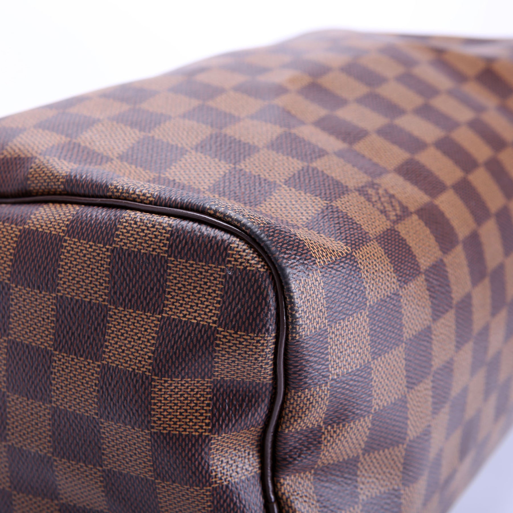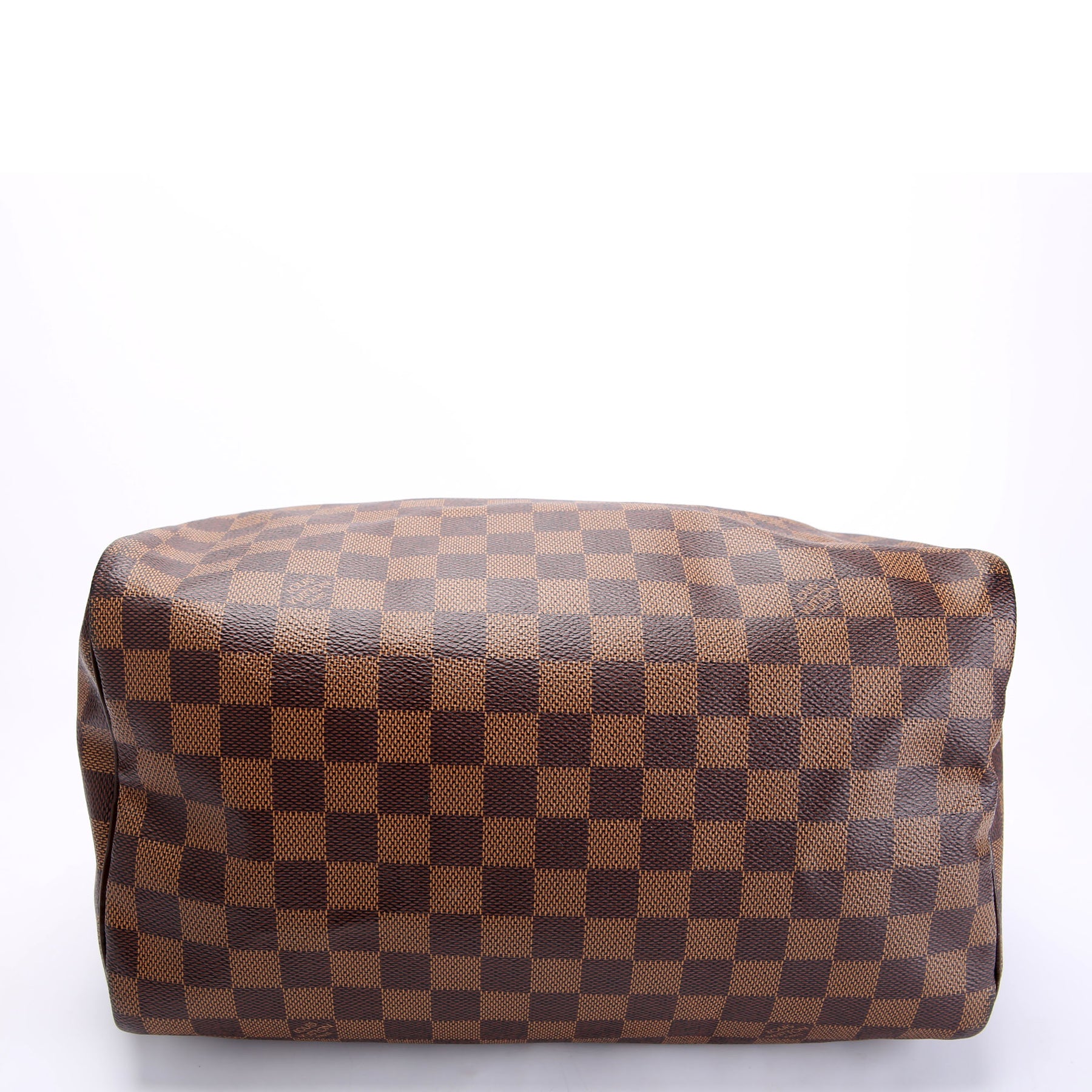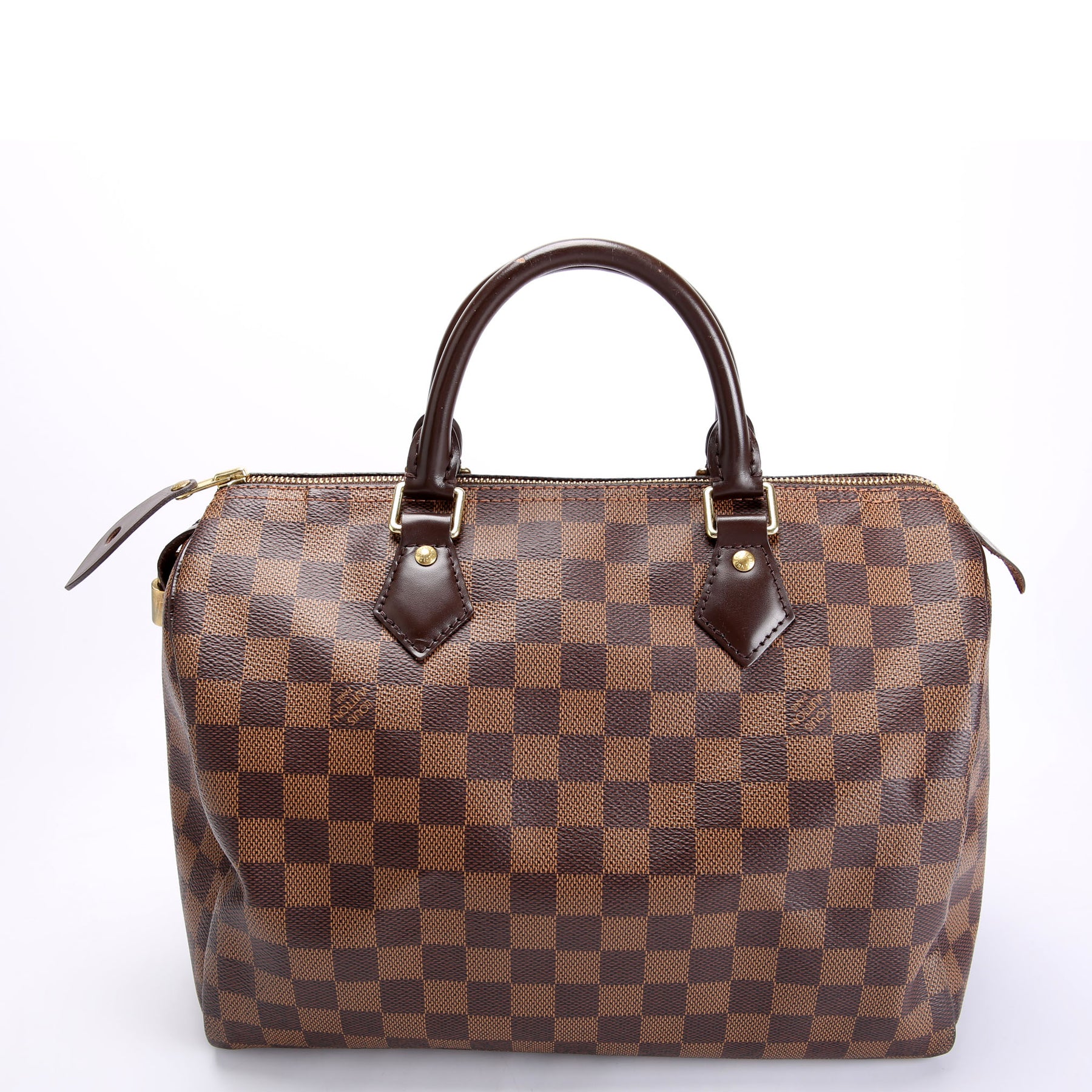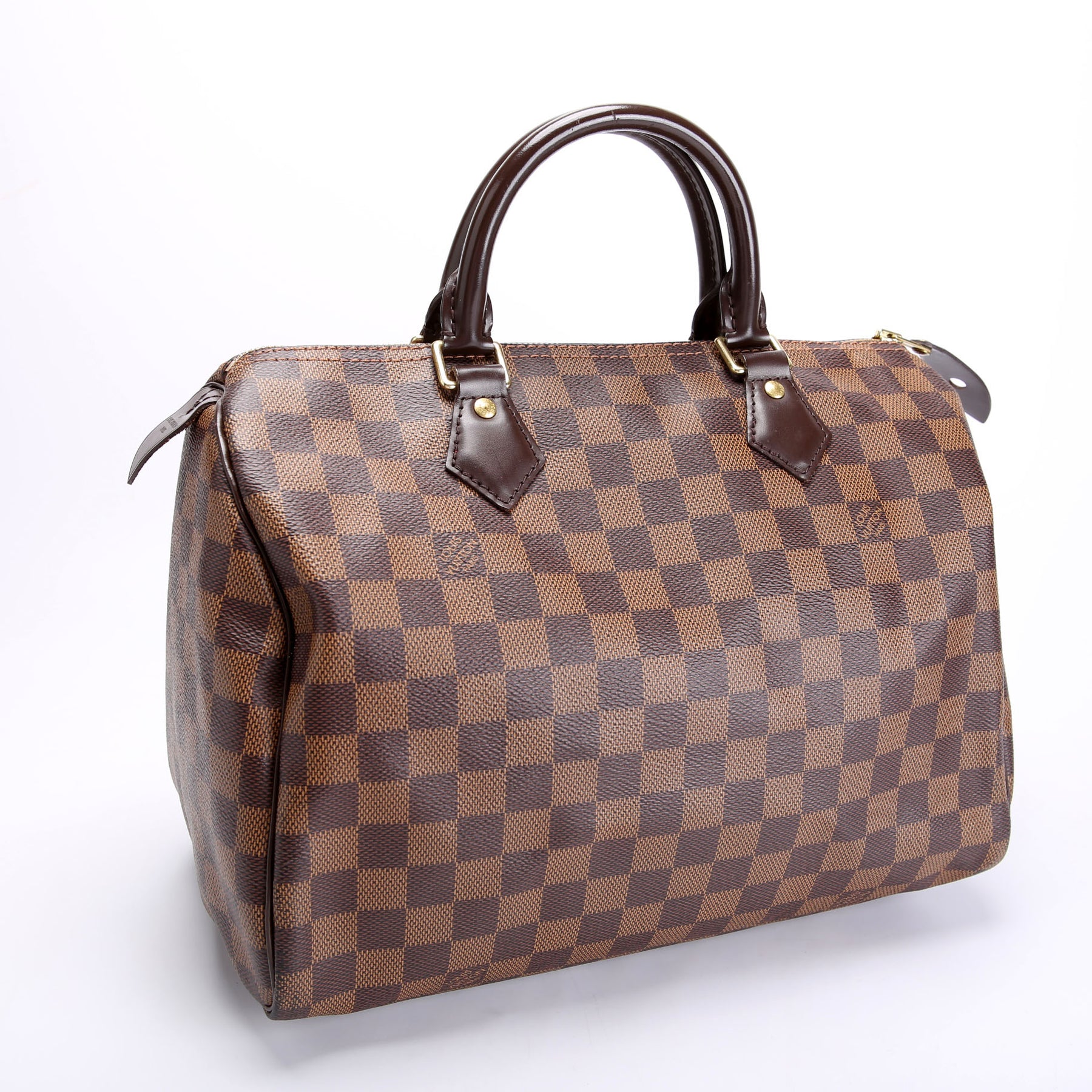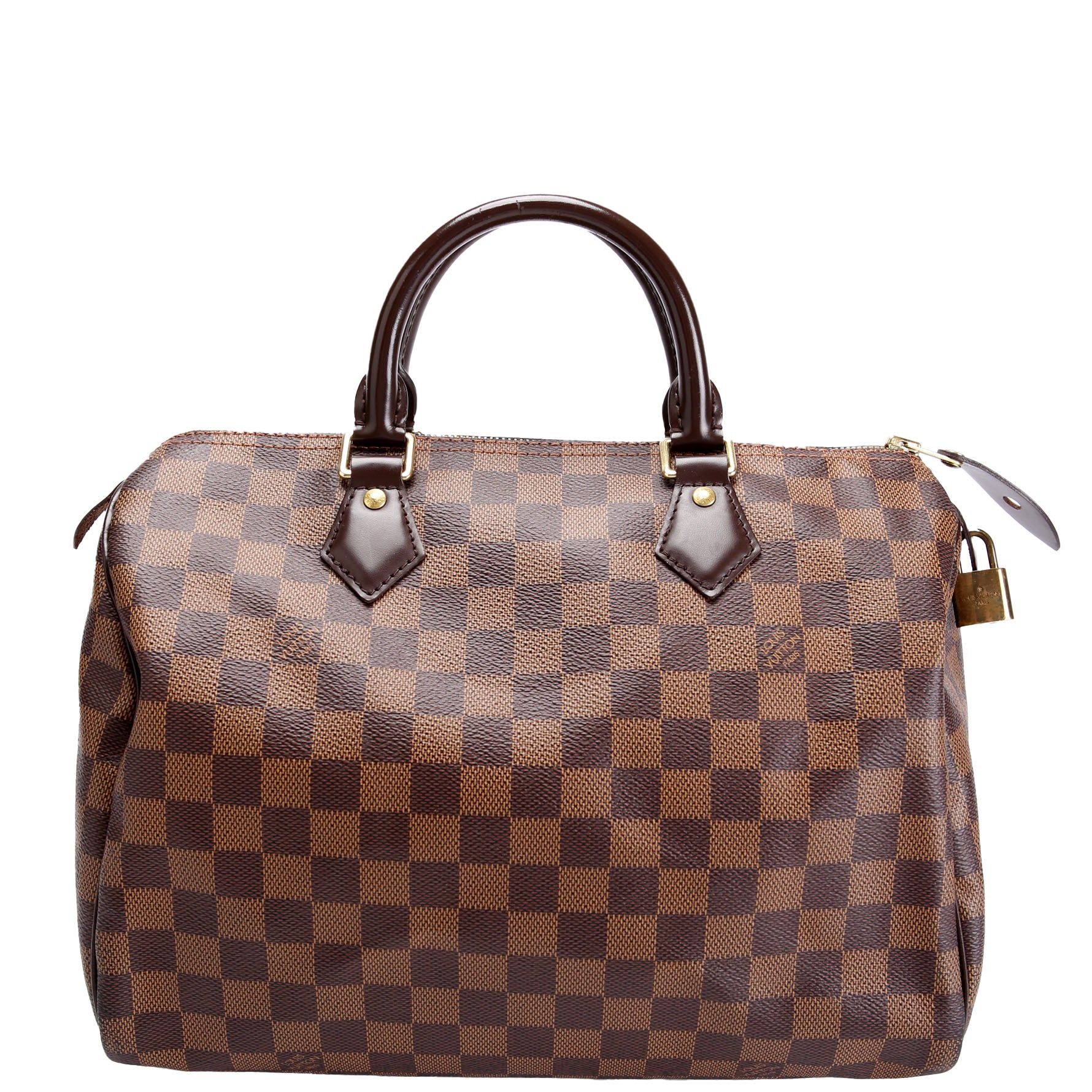 This pre-owned Louis Vuitton Speedy 30 is guaranteed 100% authentic. The exterior is in the classic Louis Vuitton Damier Ebene Coated Canvas.