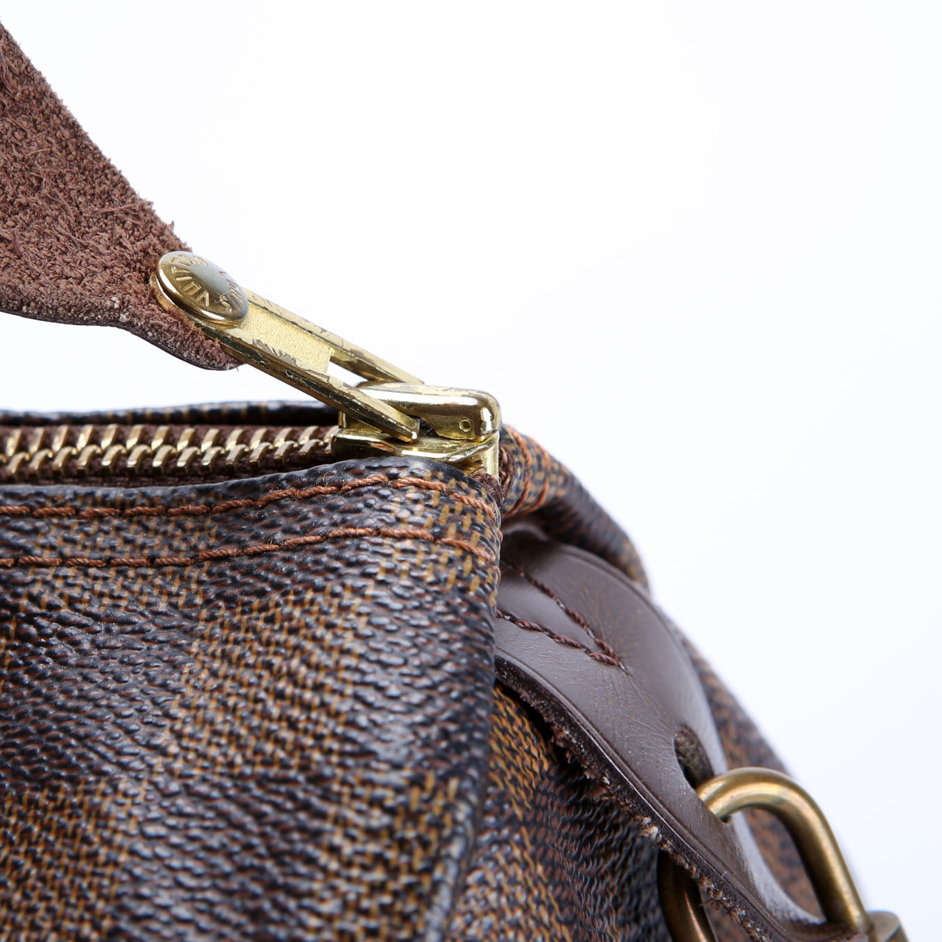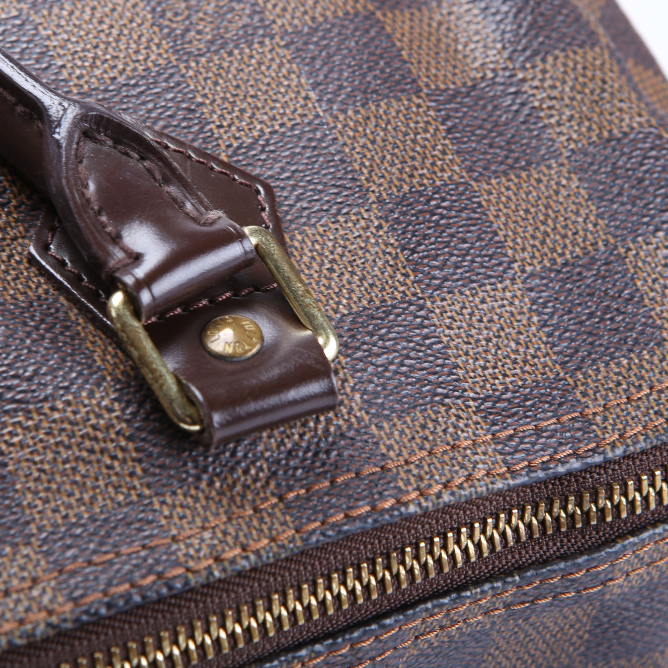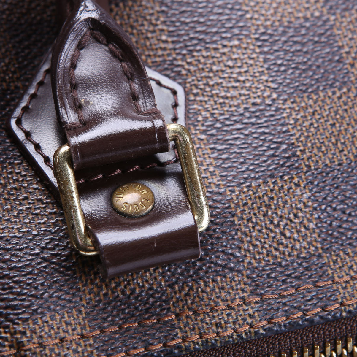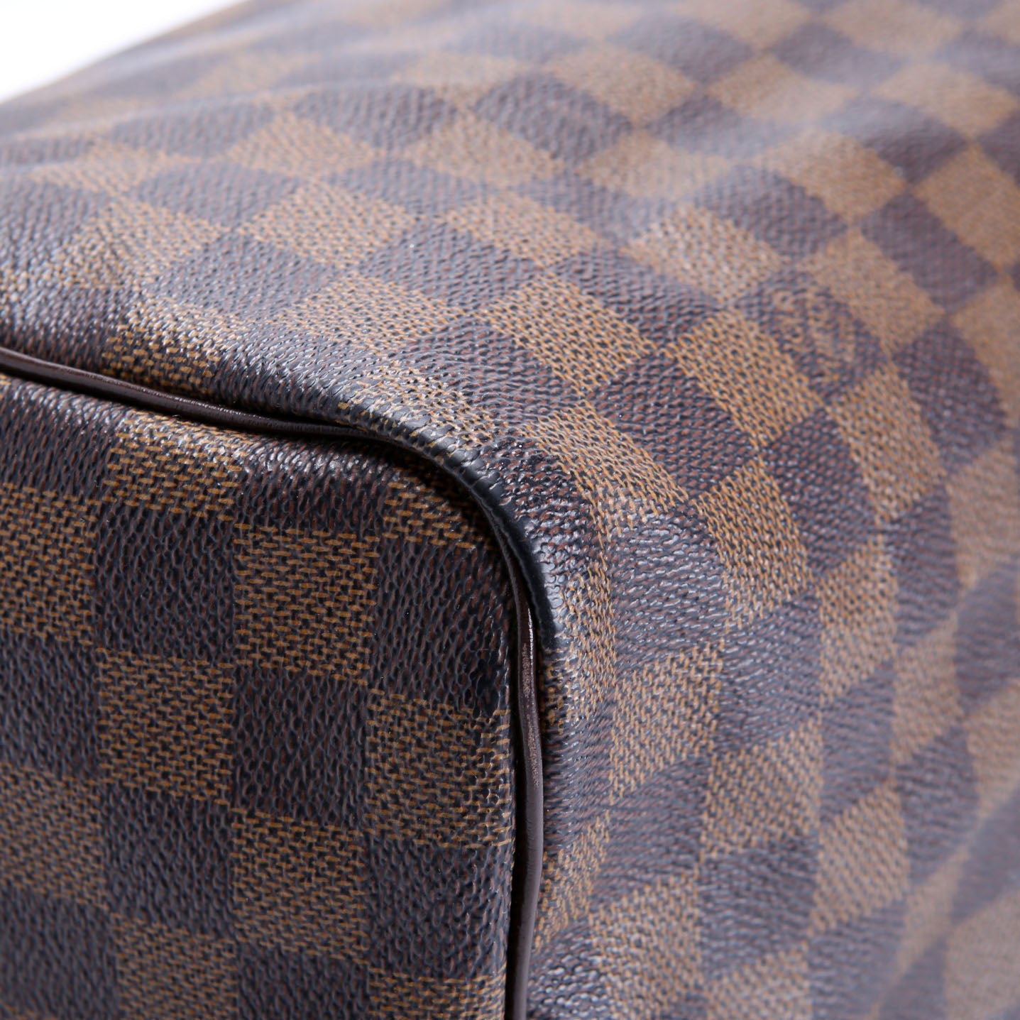 This pre-owned Louis Vuitton Speedy 30 is guaranteed 100% authentic. The exterior is in the classic Louis Vuitton Damier Ebene Coated Canvas.