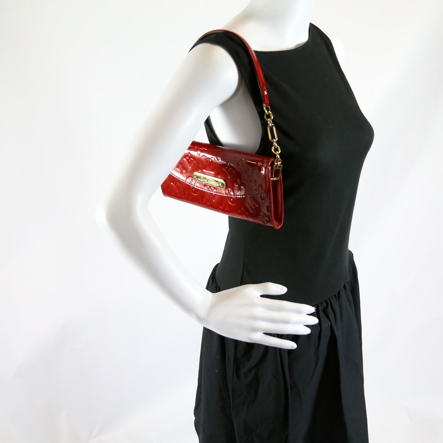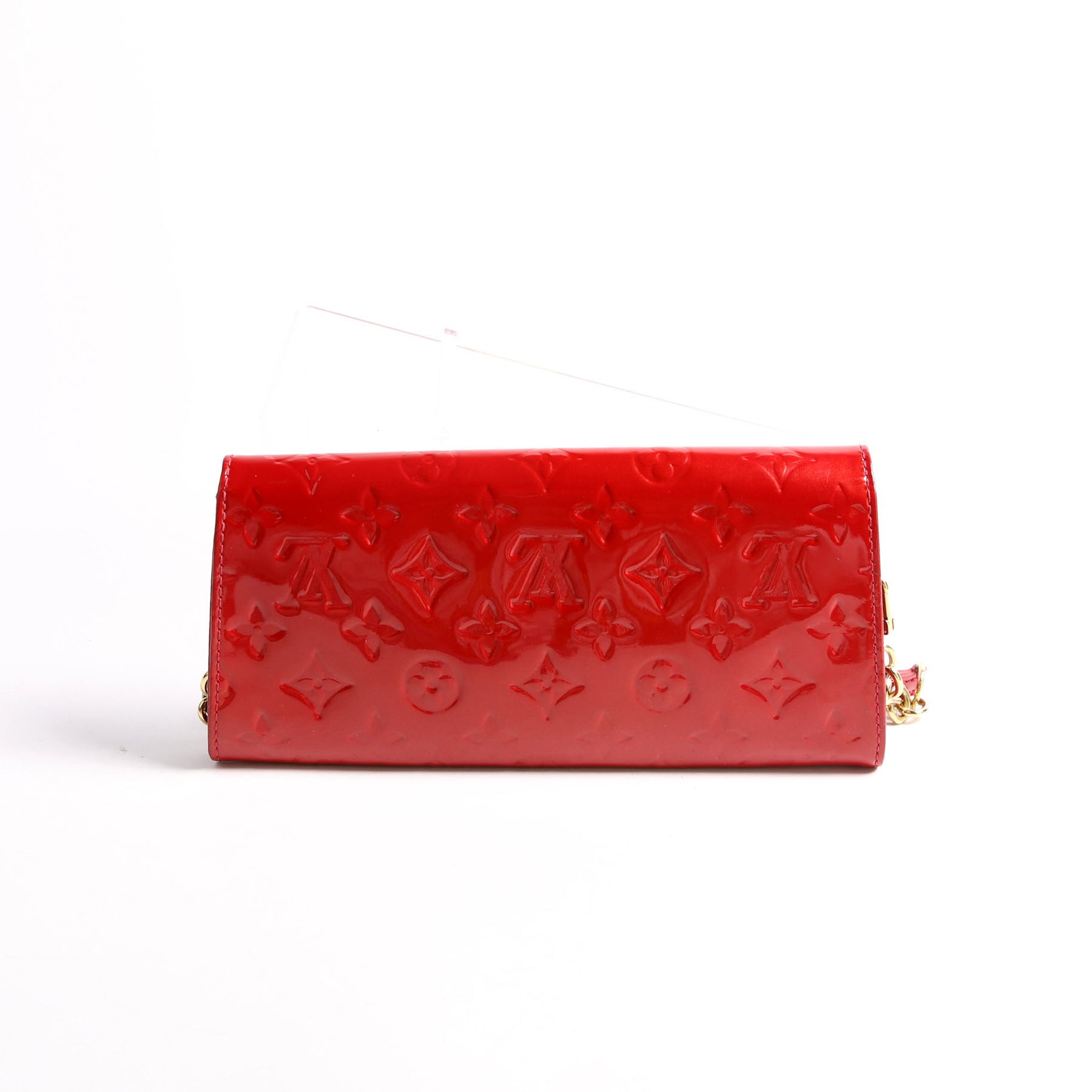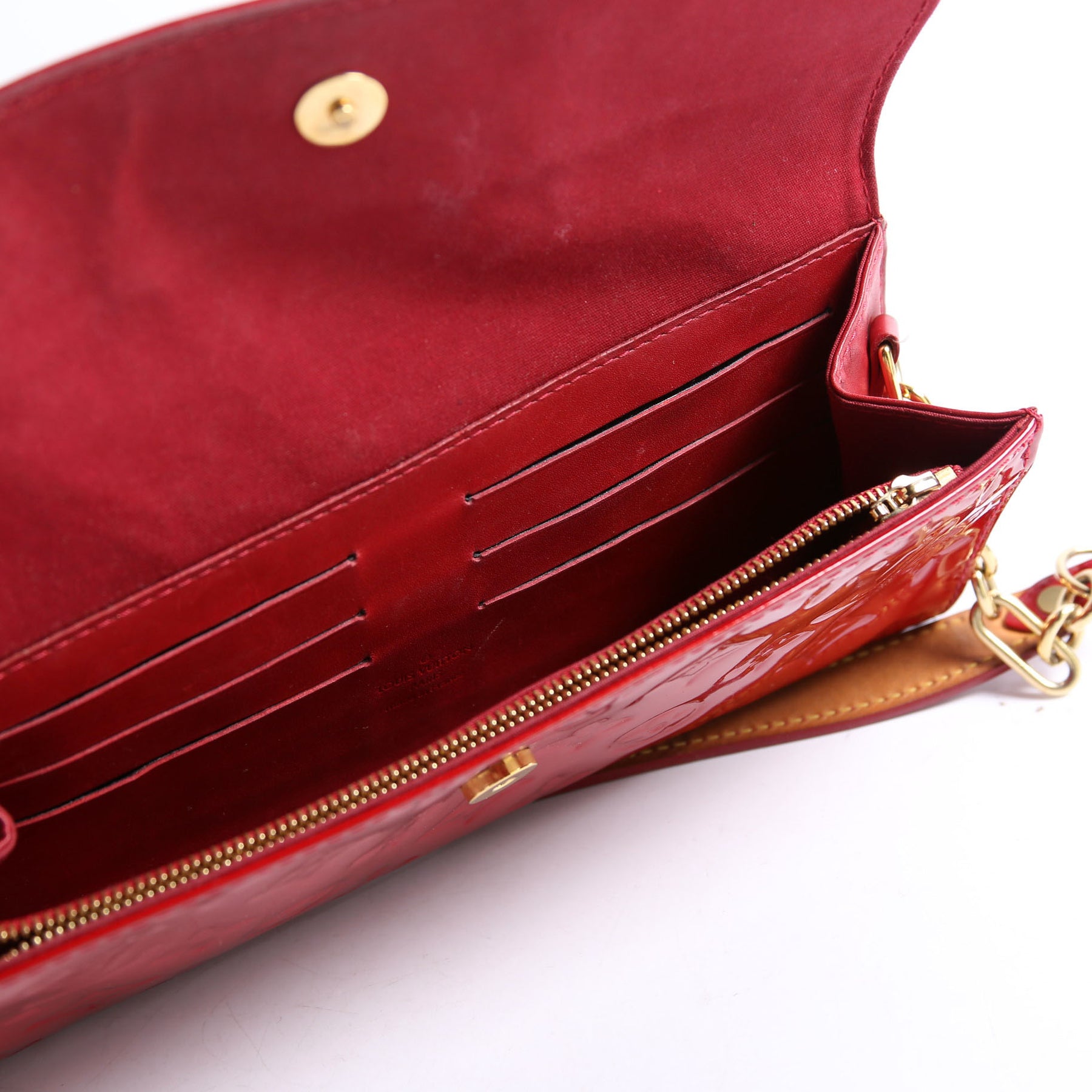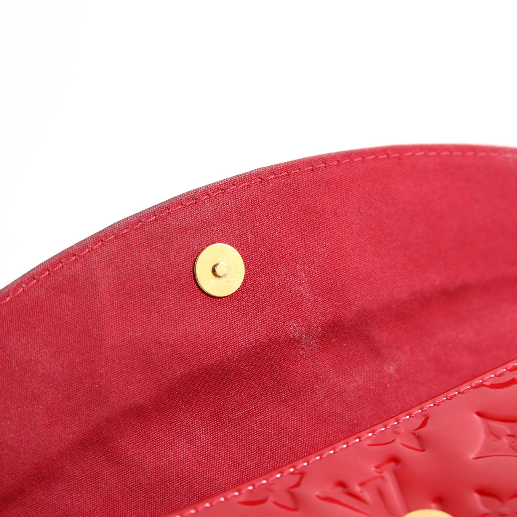 This pre-owned Louis Vuitton Sunset Blvd Clutch is guaranteed 100% authentic. The exterior is in the classic Louis Vuitton Vernis leather.
