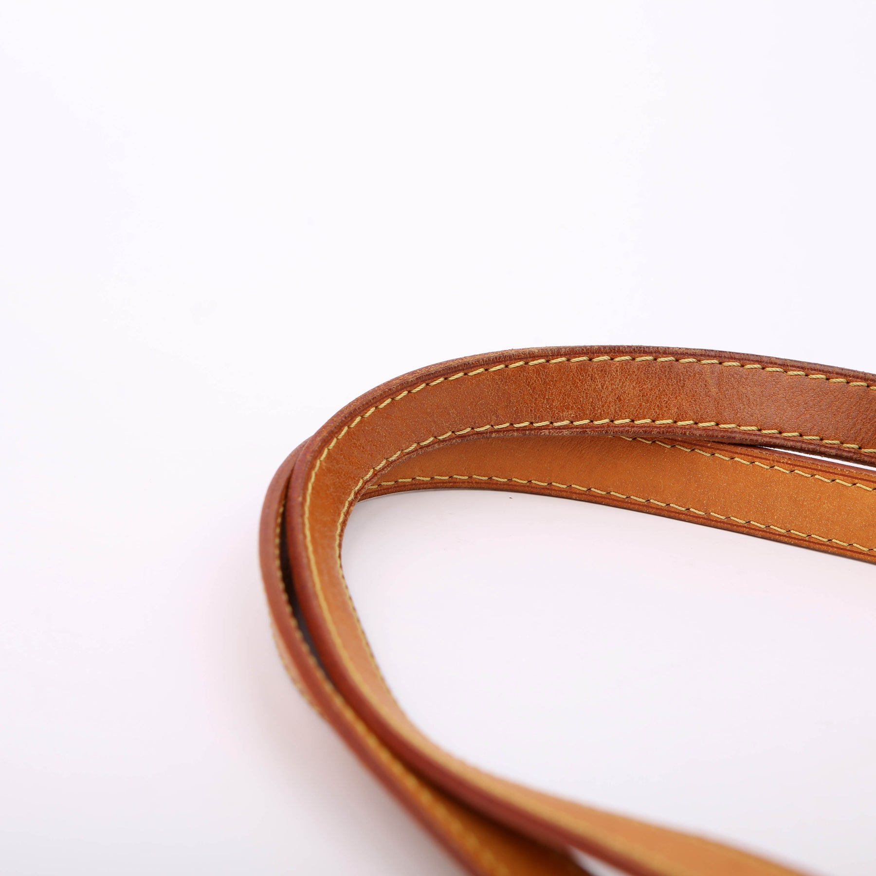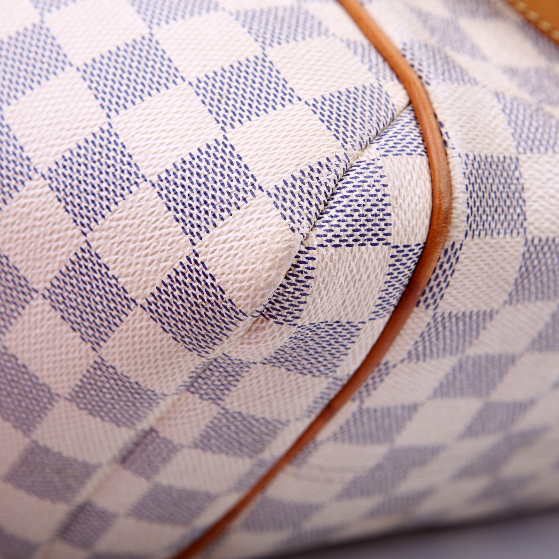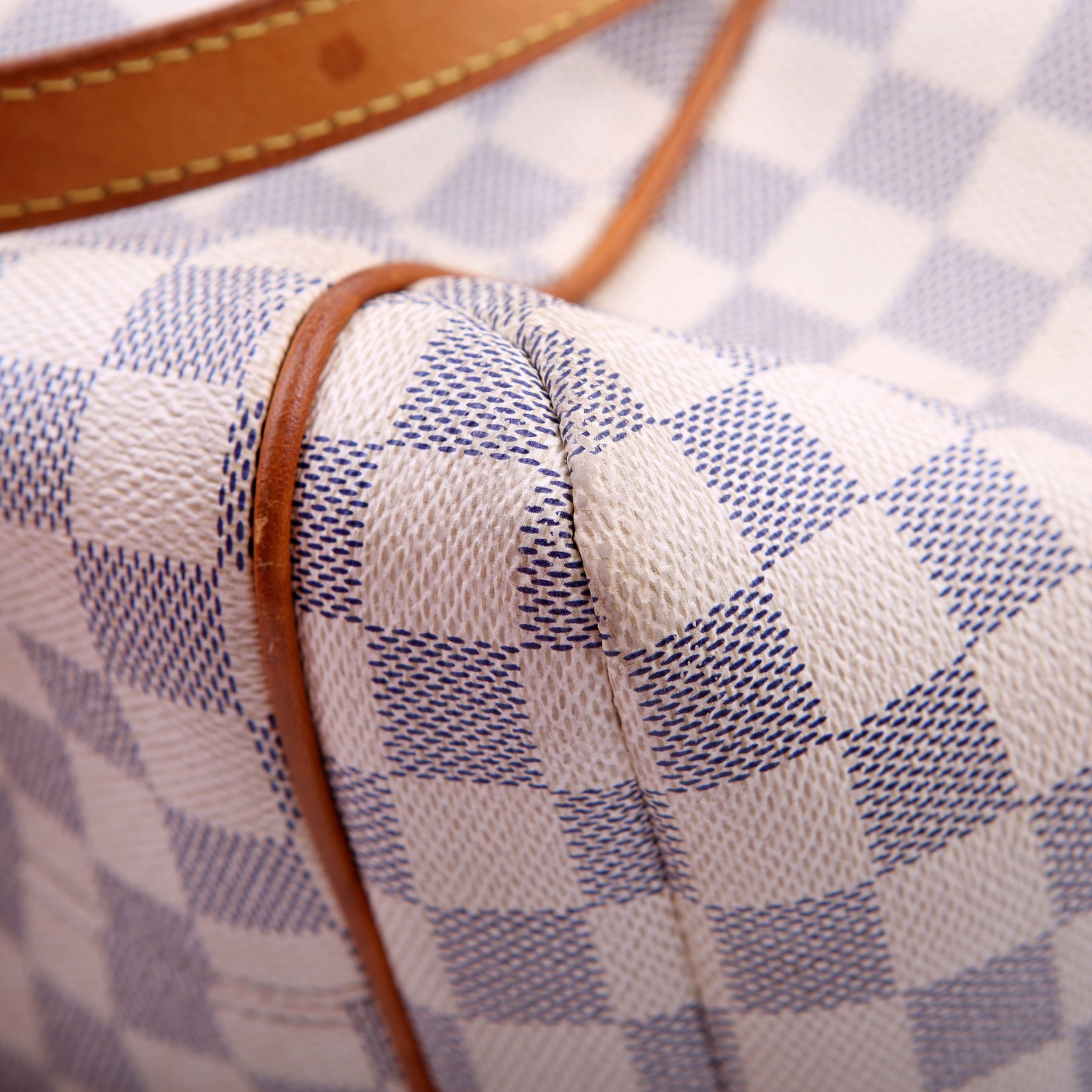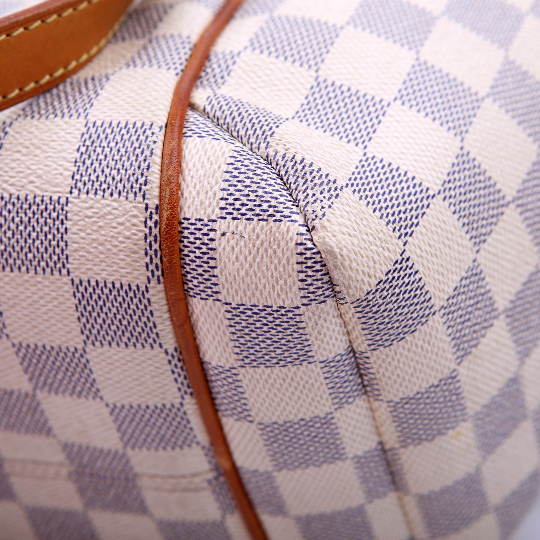 Handle: The leather handles show minor wear and discoloration.