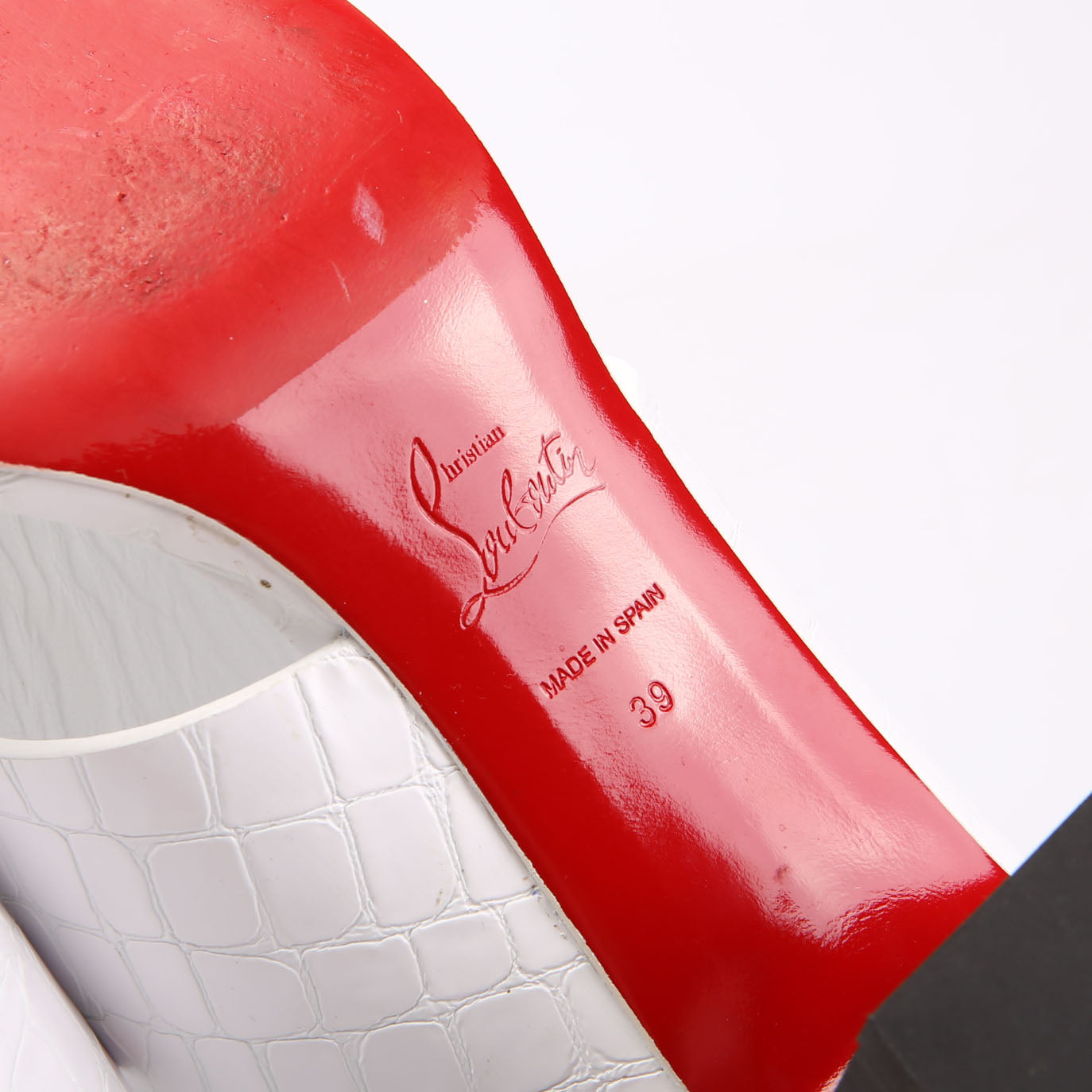 Interior: The interior sole shows wear, and light wrinkled throughout.