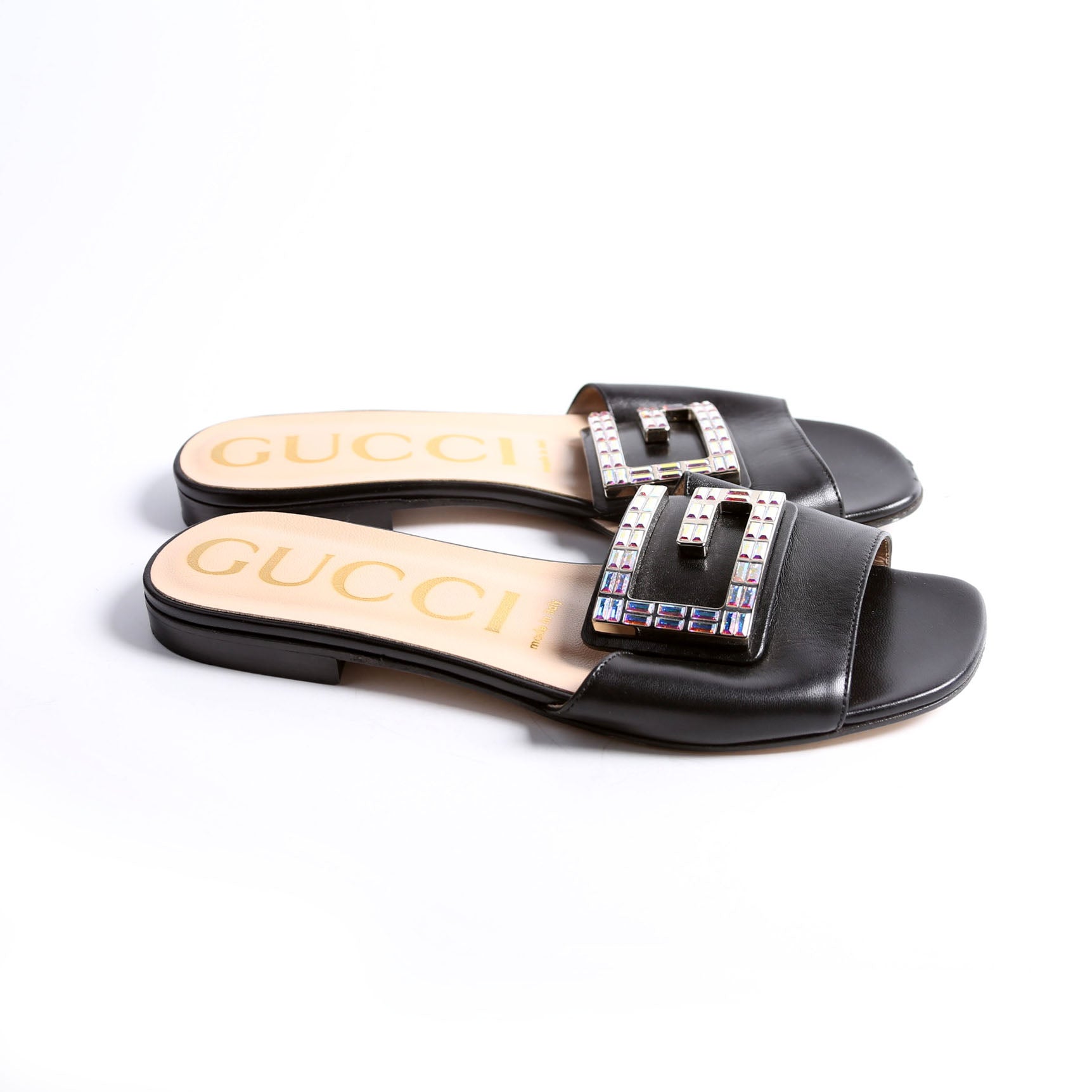 These pre-owned Gucci Crystal G Slides are guaranteed 100% authentic.