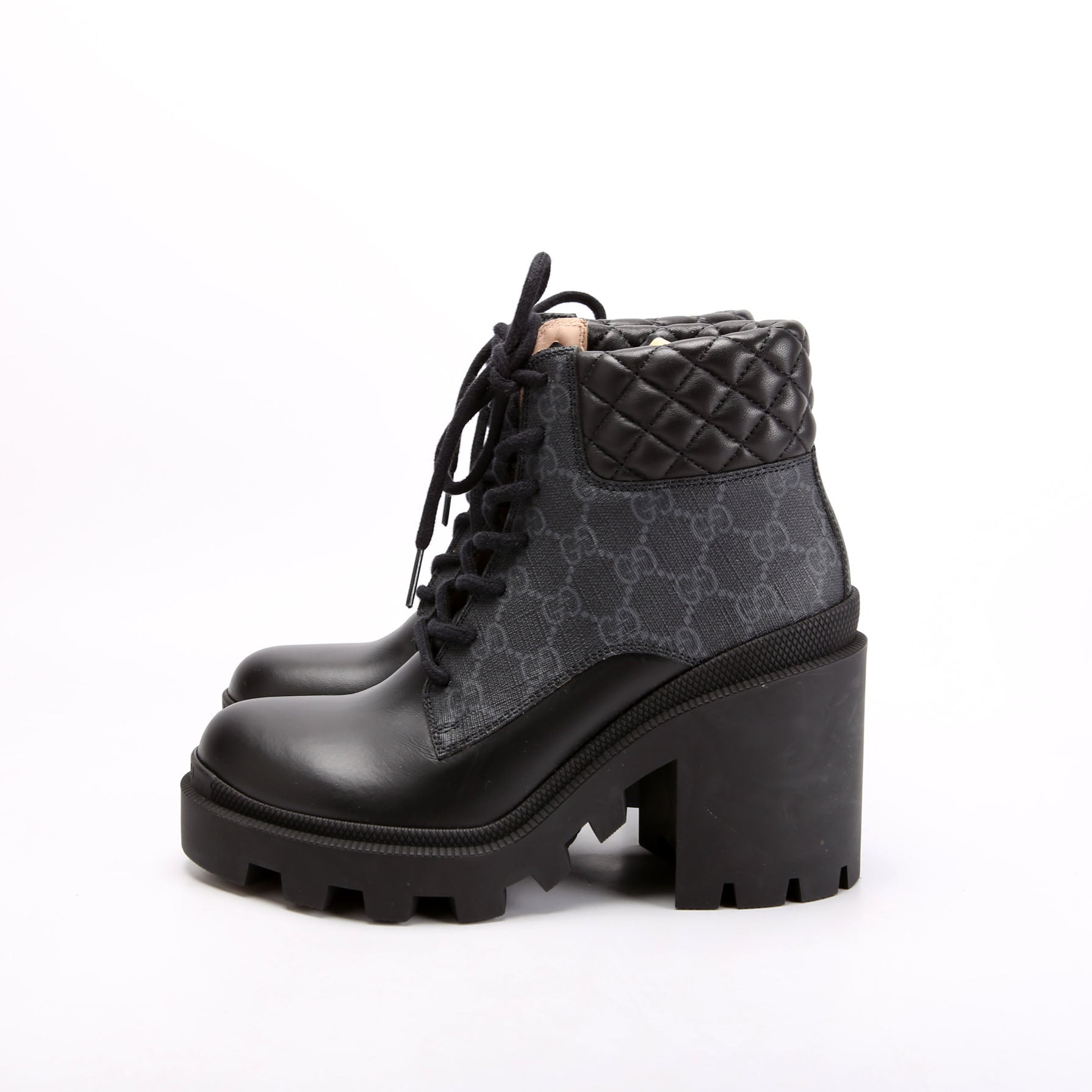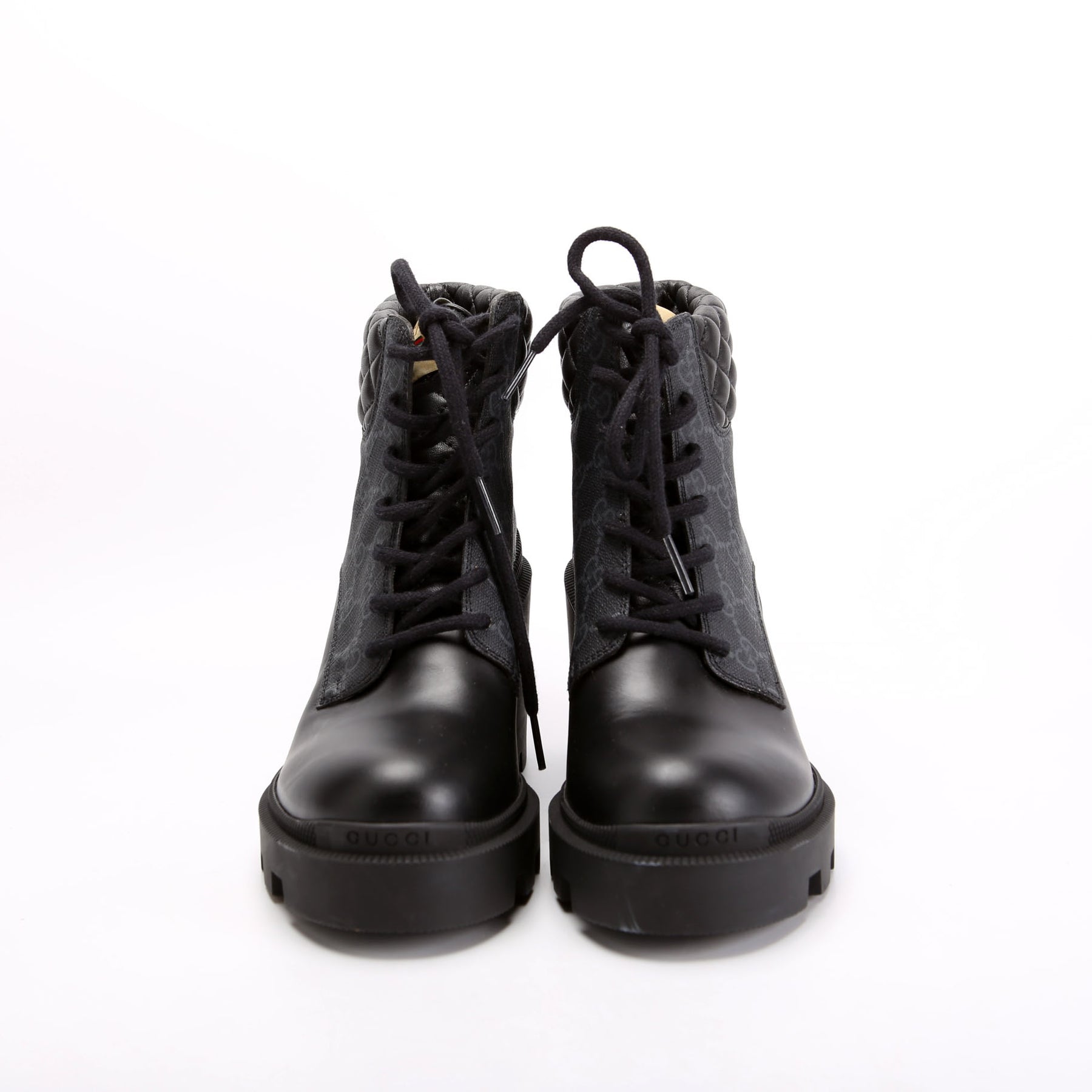 These pre-owned Gucci GG Supreme/Quilted Leather Lace Up Ankle Boots are guaranteed 100% authentic.