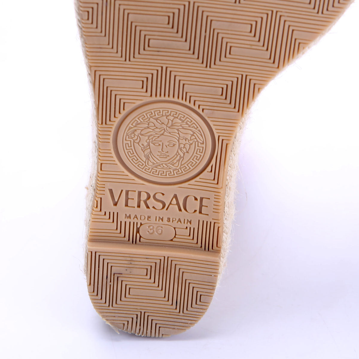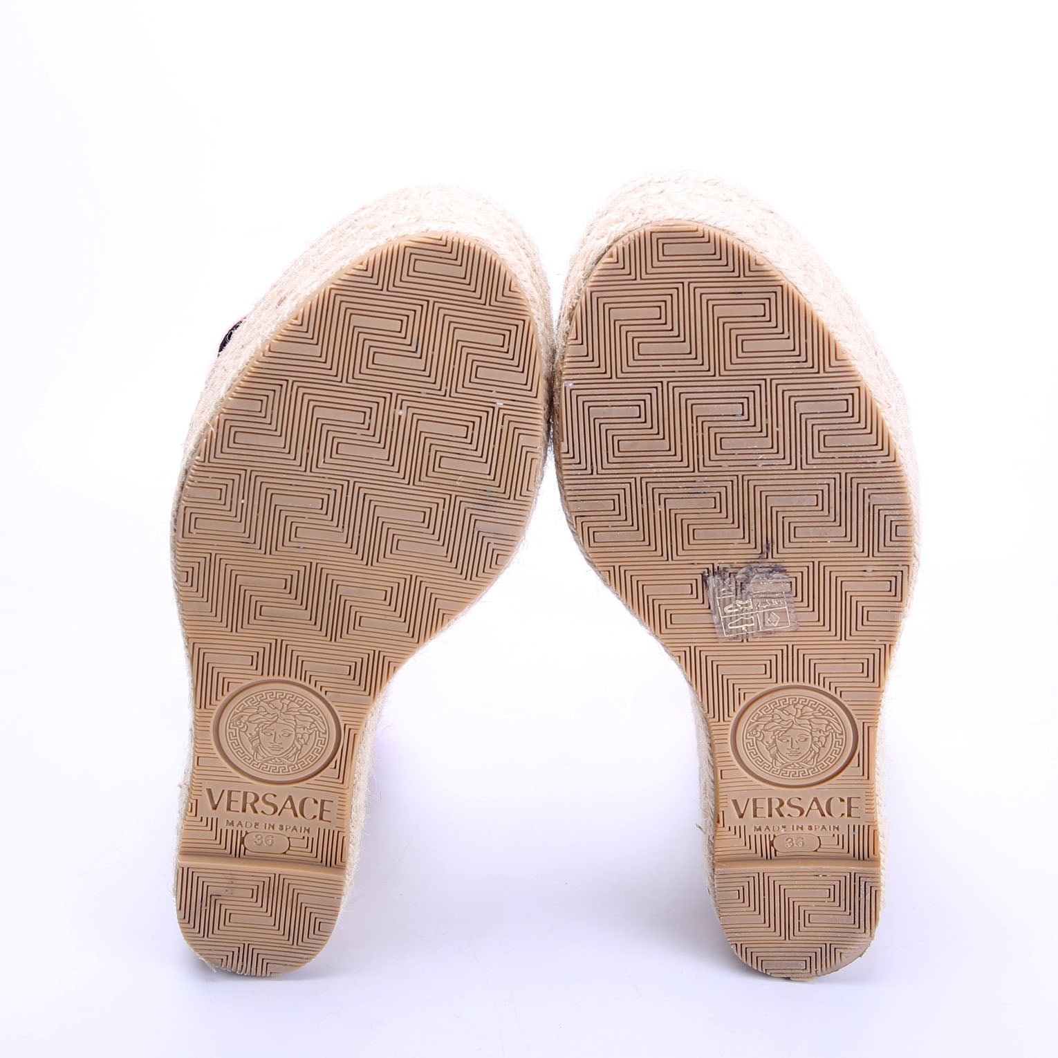 These pre-owned Versace Medusa '95 Satin Espadrille Wedges are guaranteed 100% authentic.