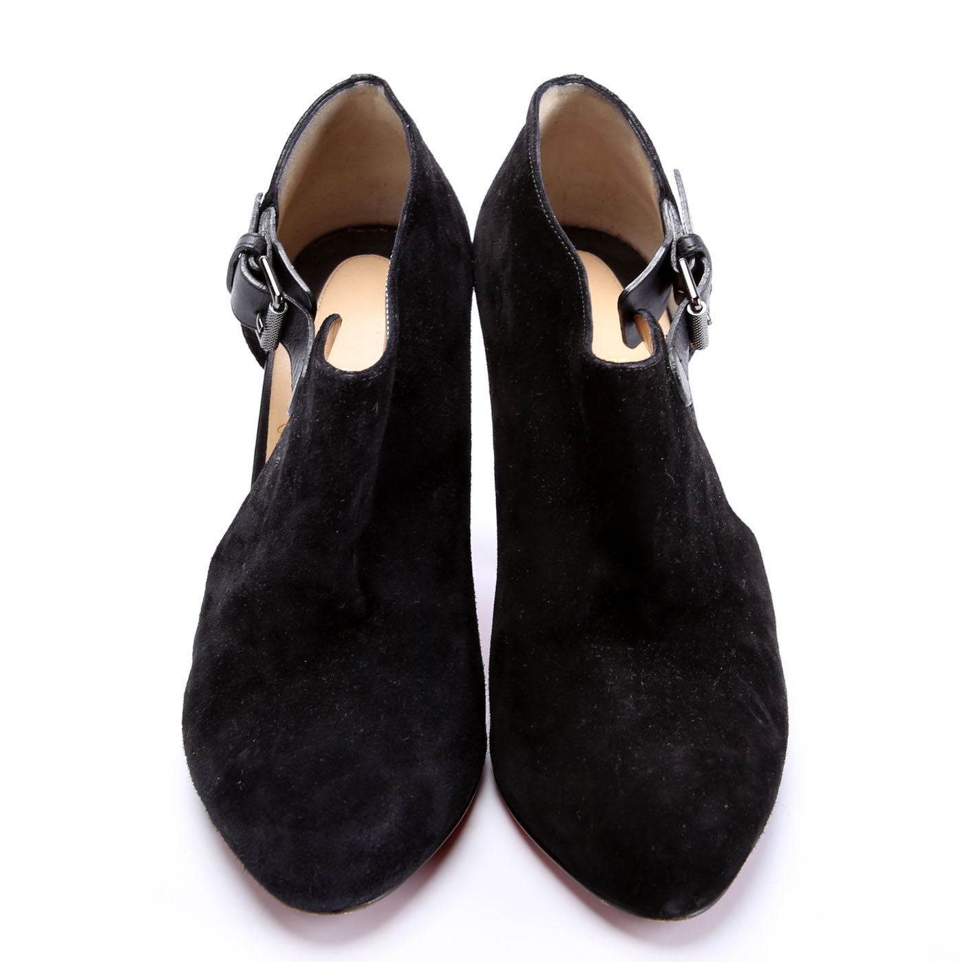 These pre-owned Christian Louboutin Seferme Cutout Suede Booties are guaranteed 100% authentic.