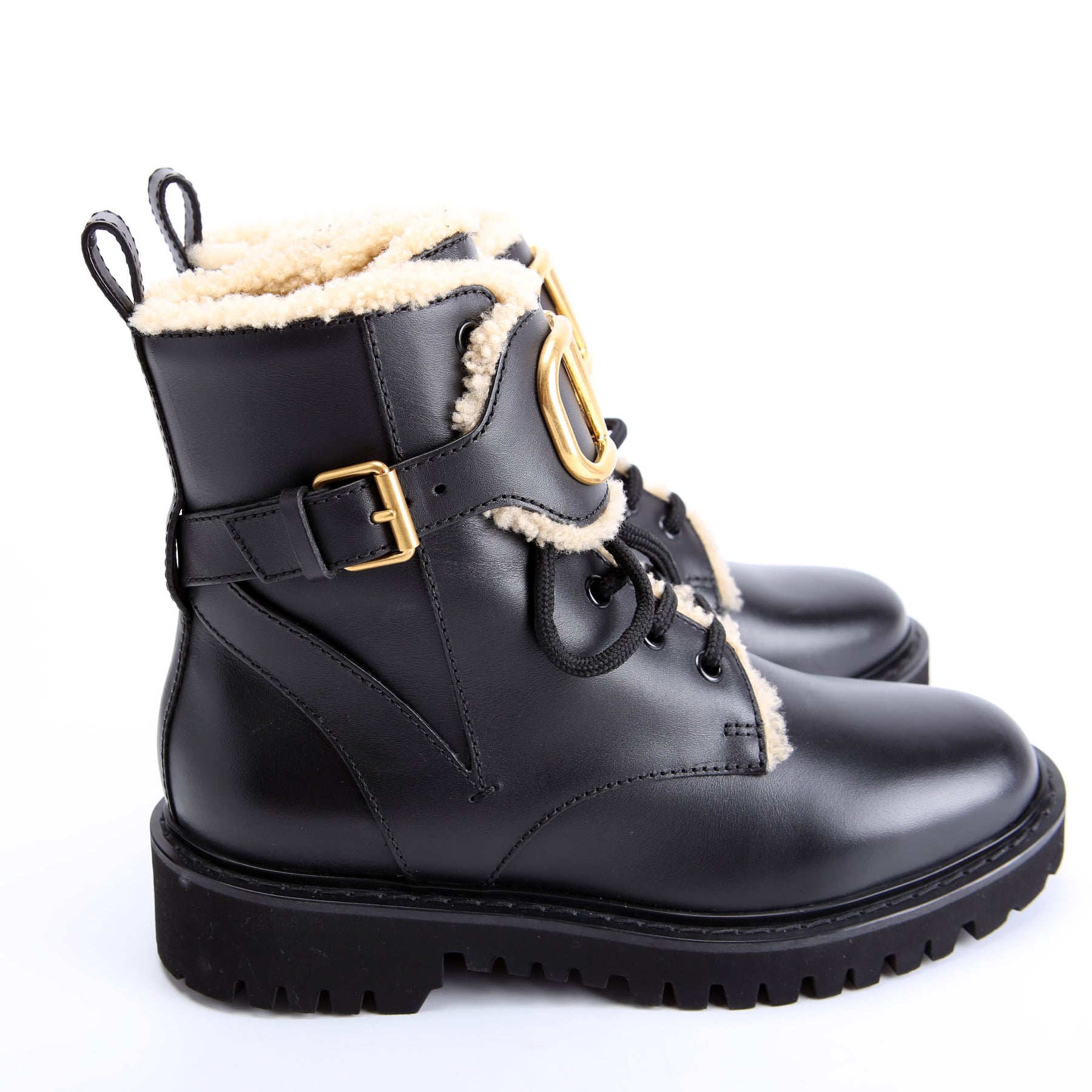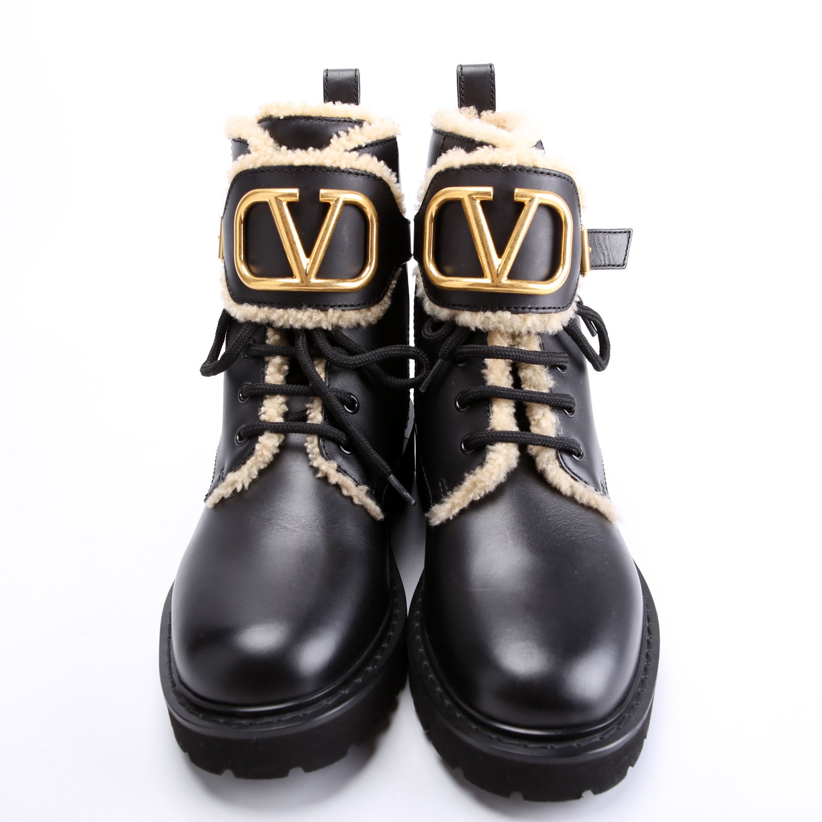 These pre-owned Valentino Vlogo Shearling Combat Boots are guaranteed 100% authentic.