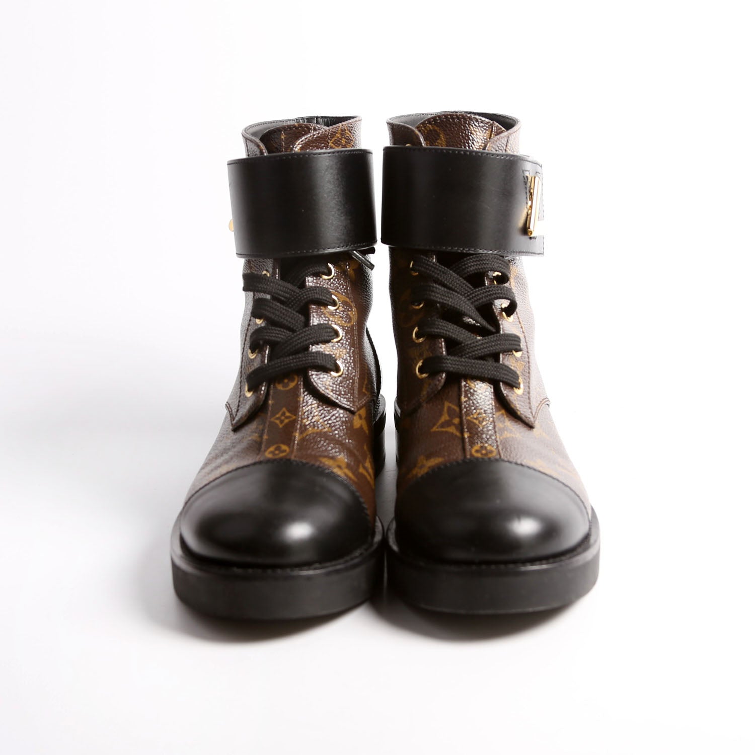 These pre-owned Louis Vuitton Wonderland Flat Ranger Boots are guaranteed 100% authentic.