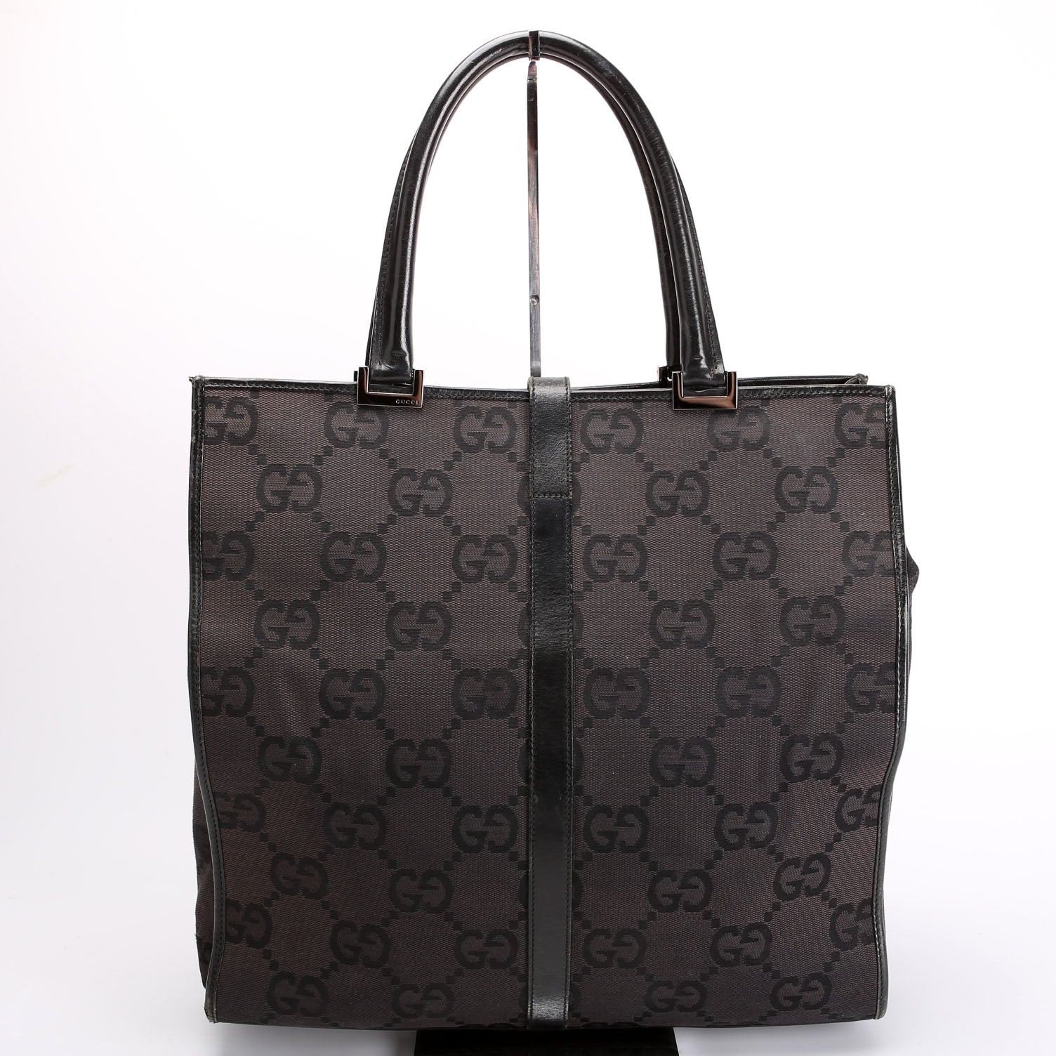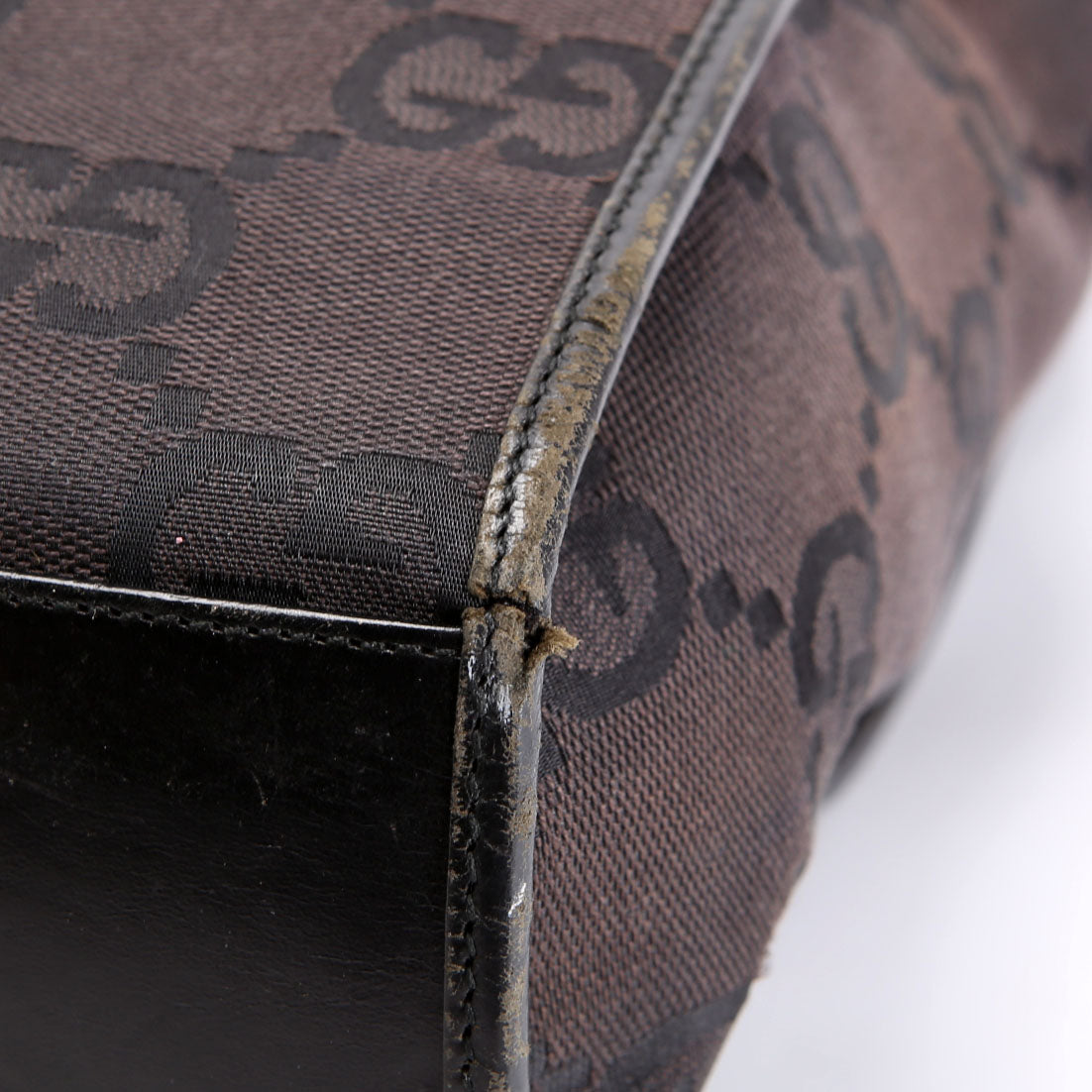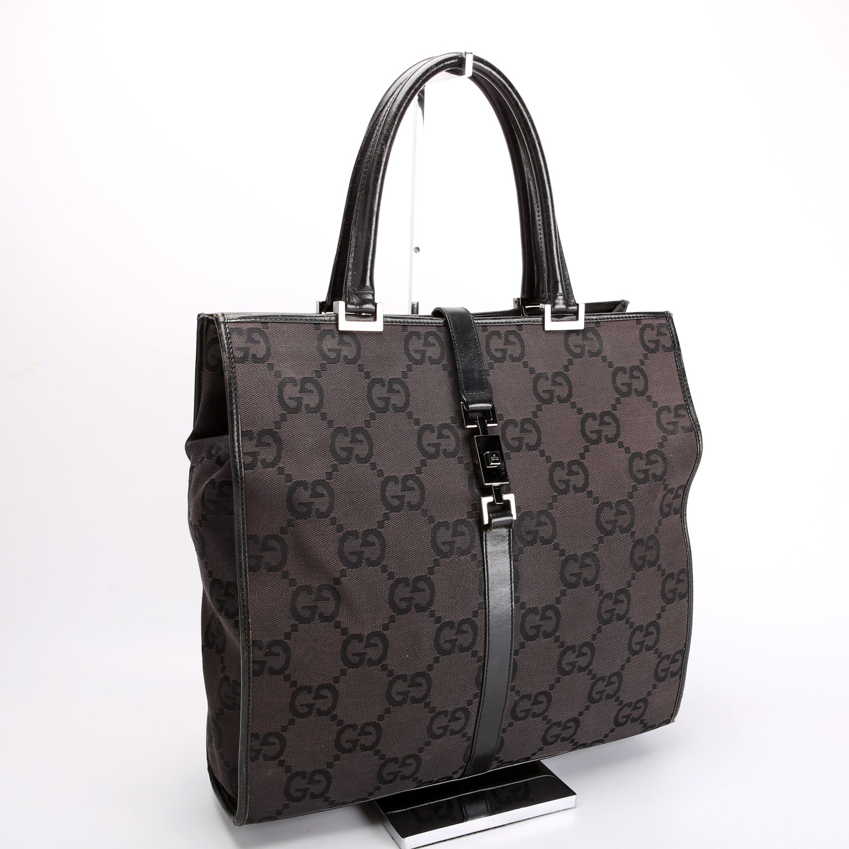 This pre-owned Gucci Canvas Jackie Tote is guaranteed 100% authentic. The exterior is in the classic Gucci canvas.