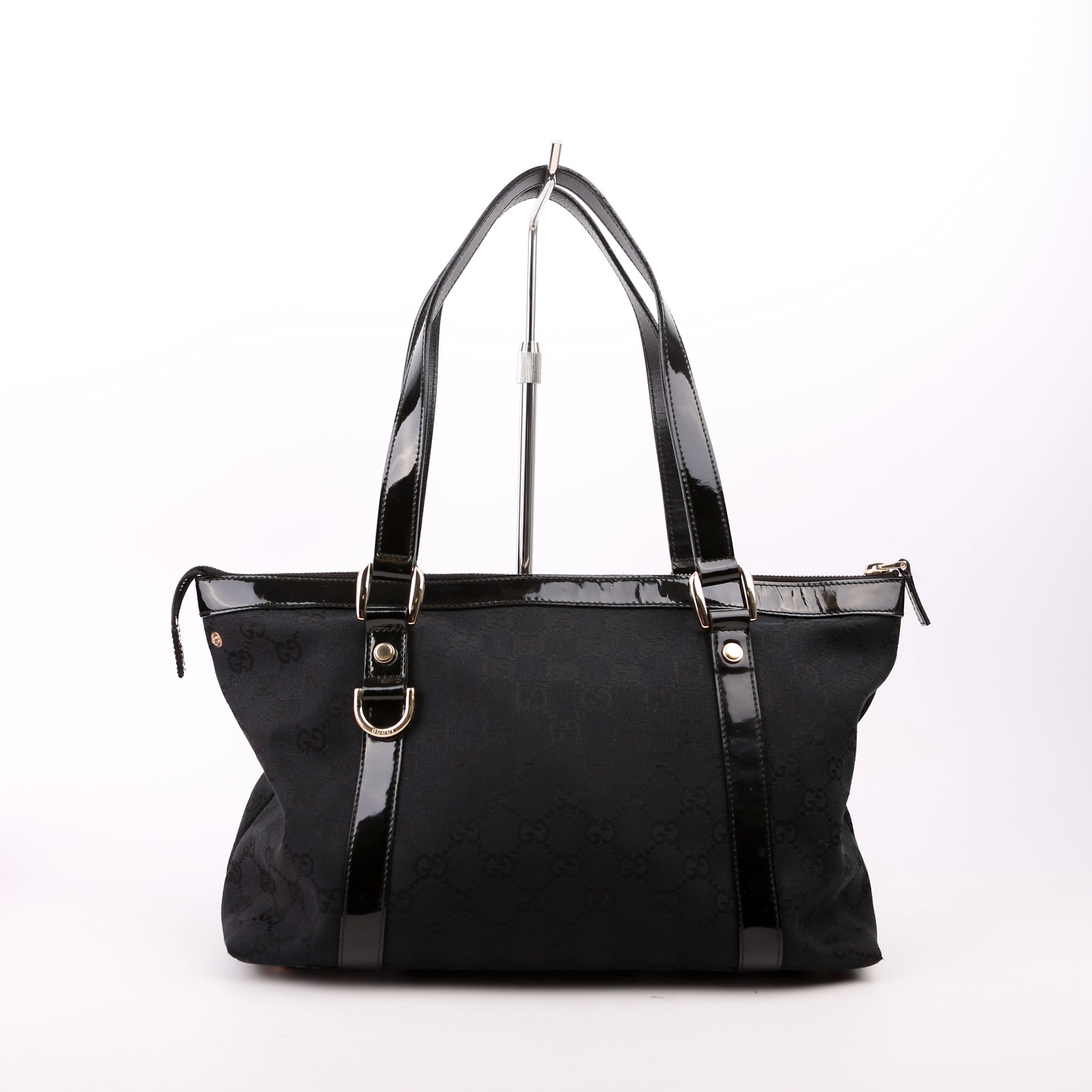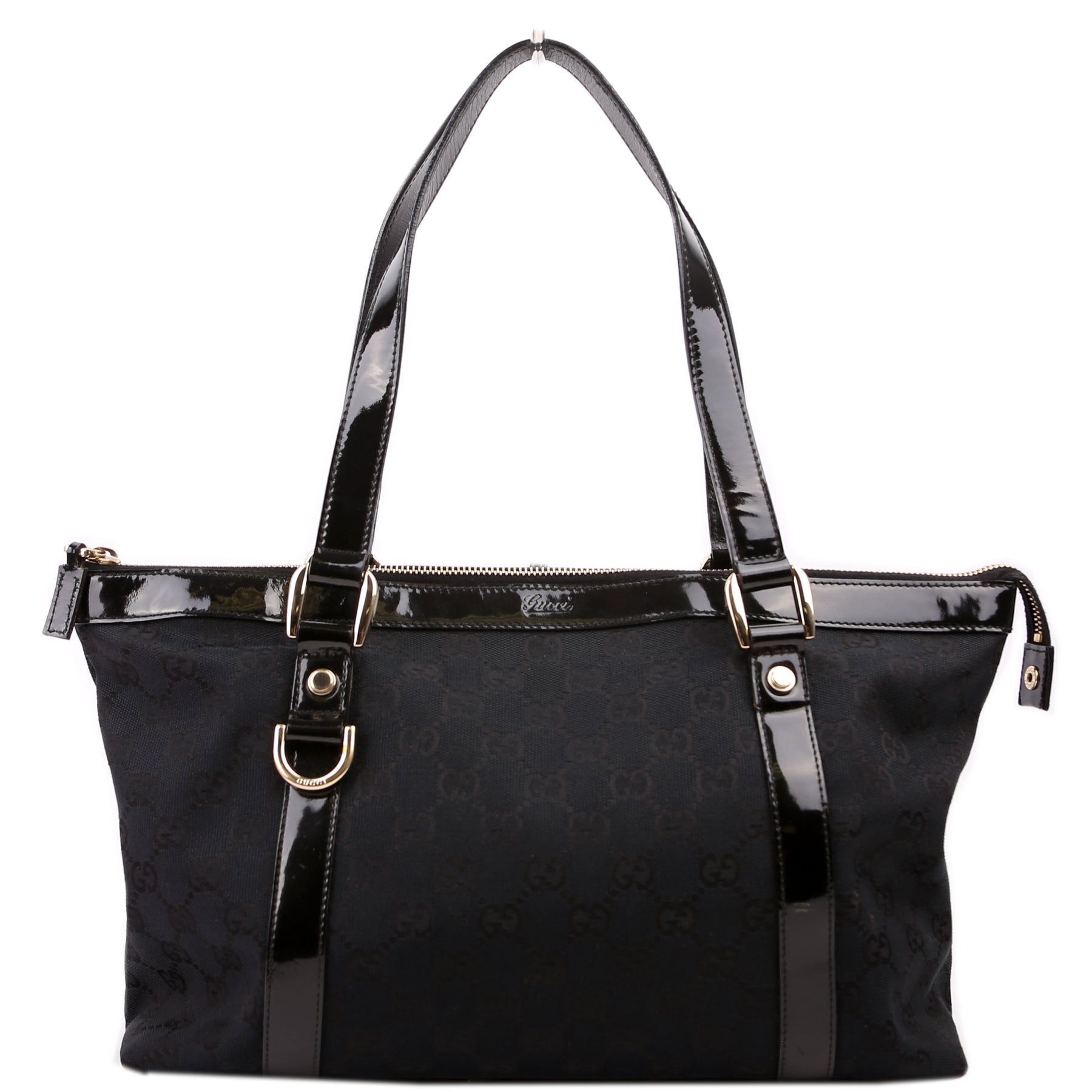 This pre-owned Gucci Canvas Abbey Tote is guaranteed 100% authentic. The exterior is in the classic Gucci canvas.