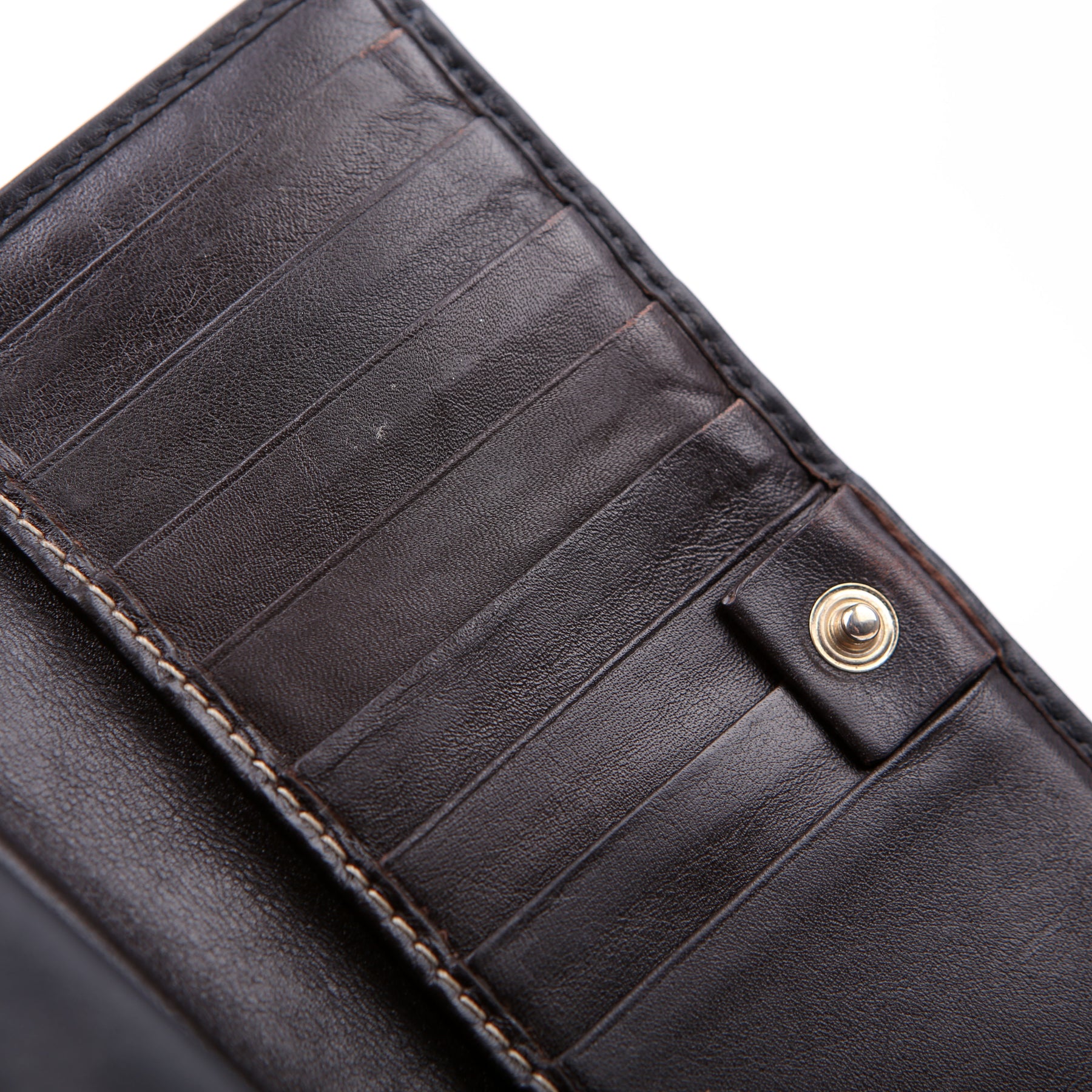 Interior: The interior leather has minor scuffs and features six bill slots, 15 card slots, and one zipper pocket.