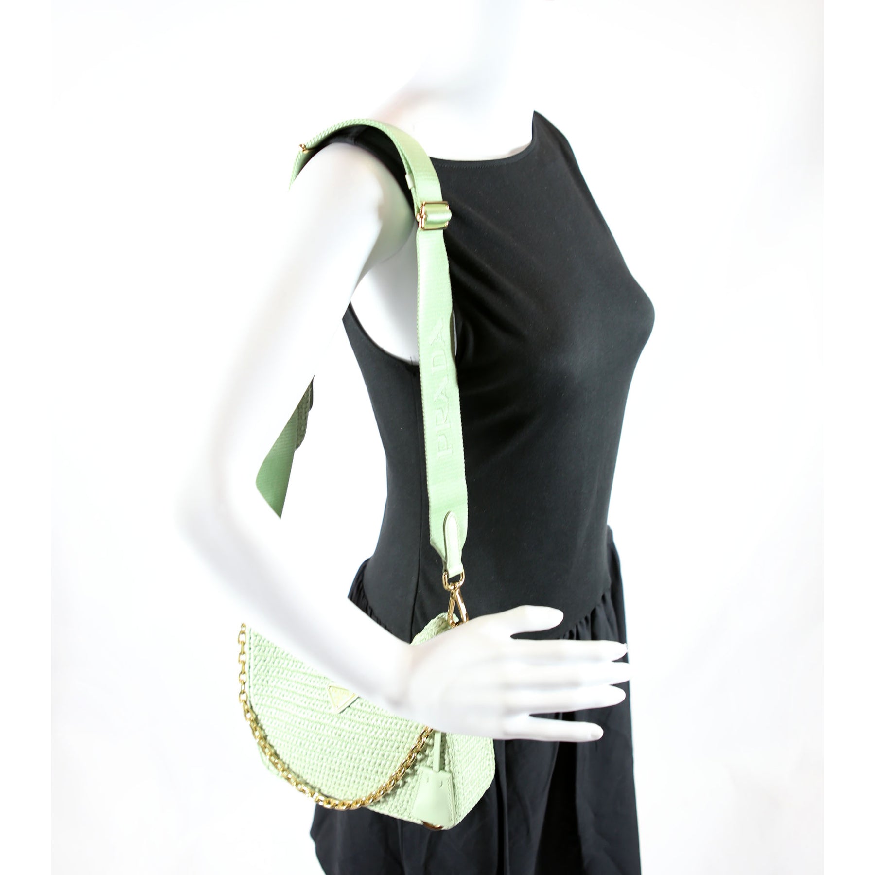 1BH204 Raffia Re-Edition 2005 Shoulder Bag Green